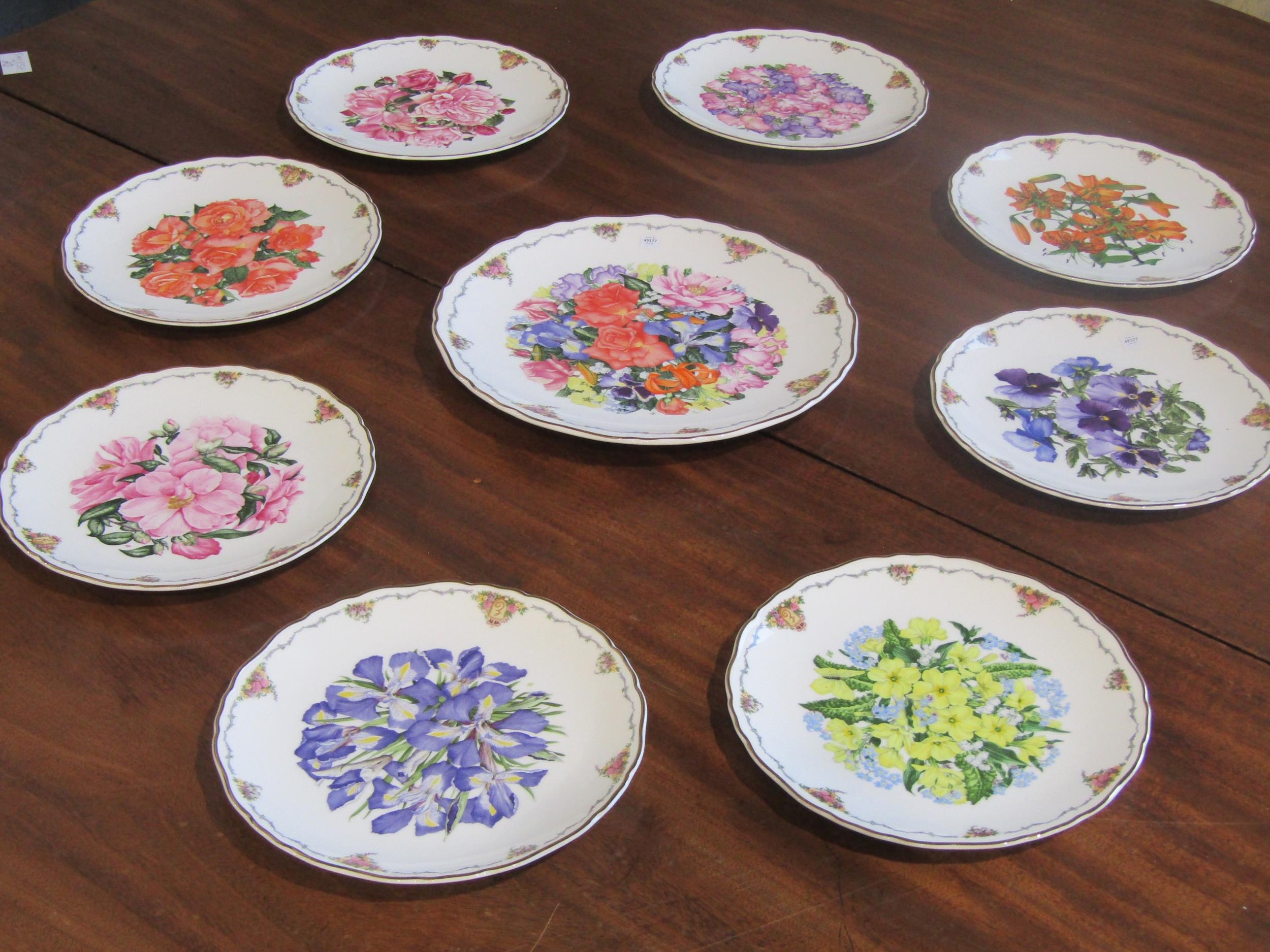A set of Royal Albert limited edition plates with transfer printed floral scenes, by Sara Anne Schofield (9)