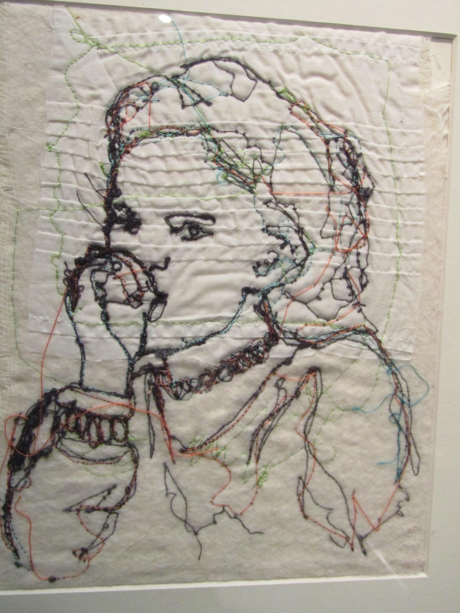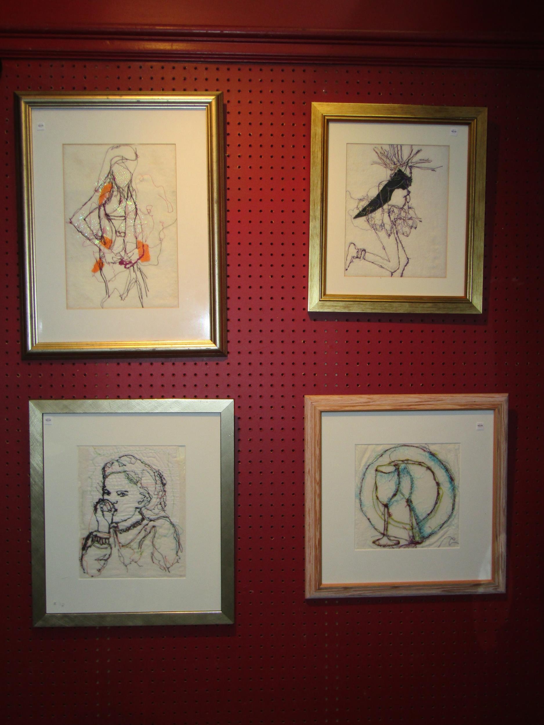 Four Iona Magnus thread on material images including "Girl with Pearl Necklace", all framed and glazed, various themes and sizes