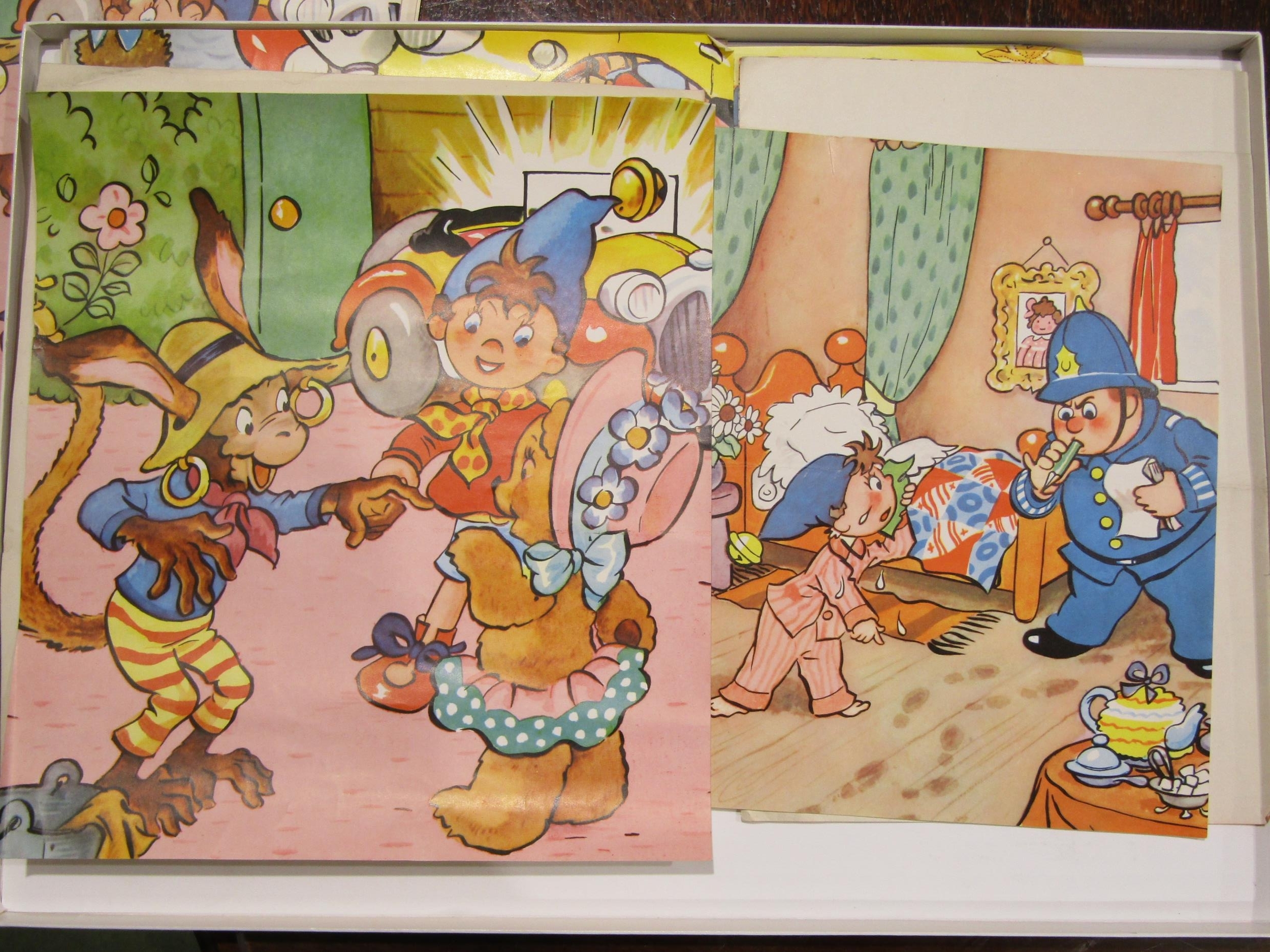A collection of vintage Noddy prints and jigsaw puzzle box l...