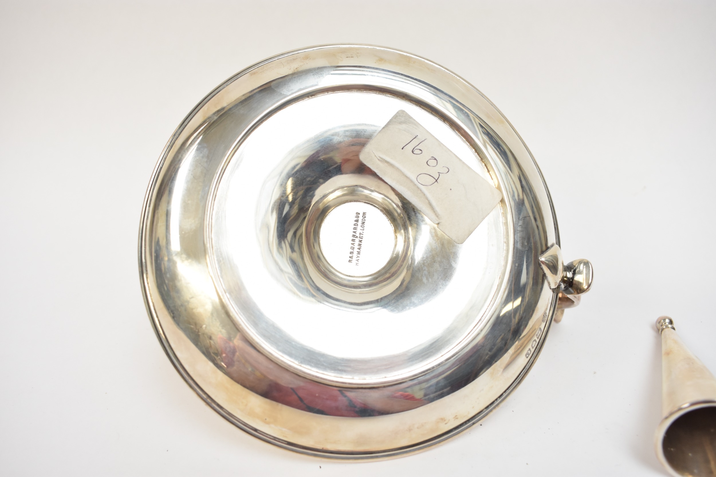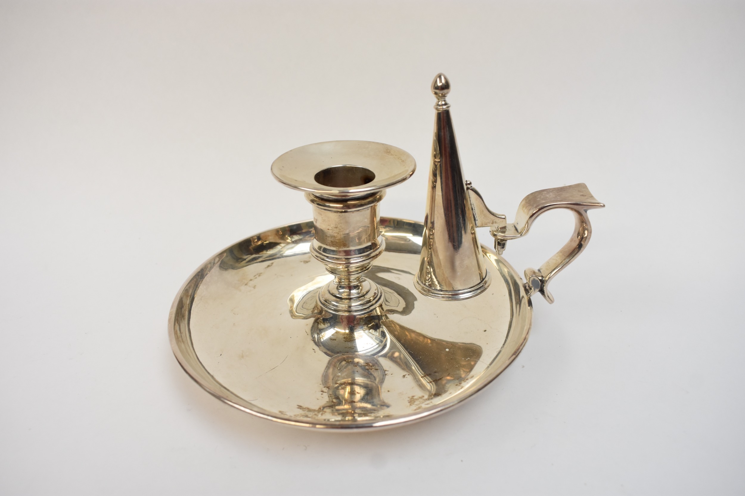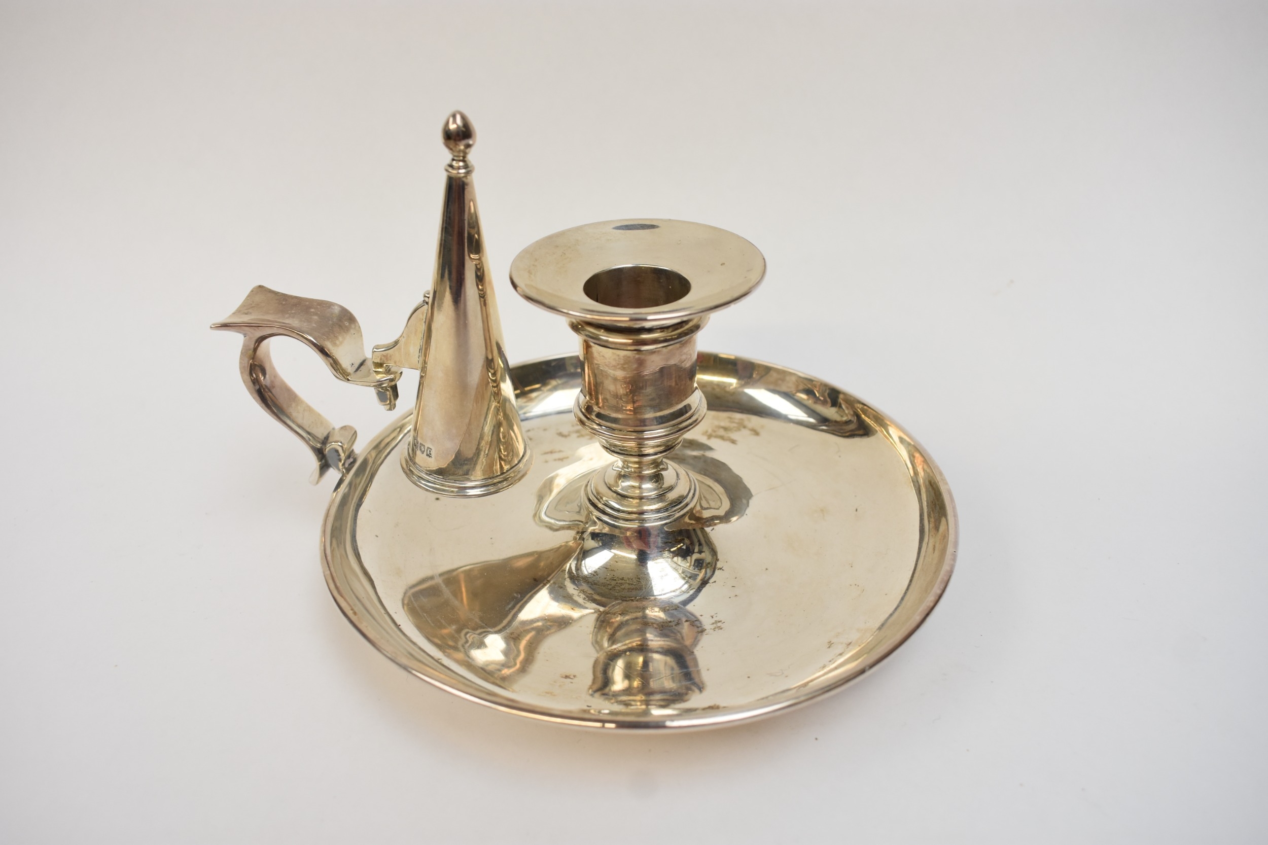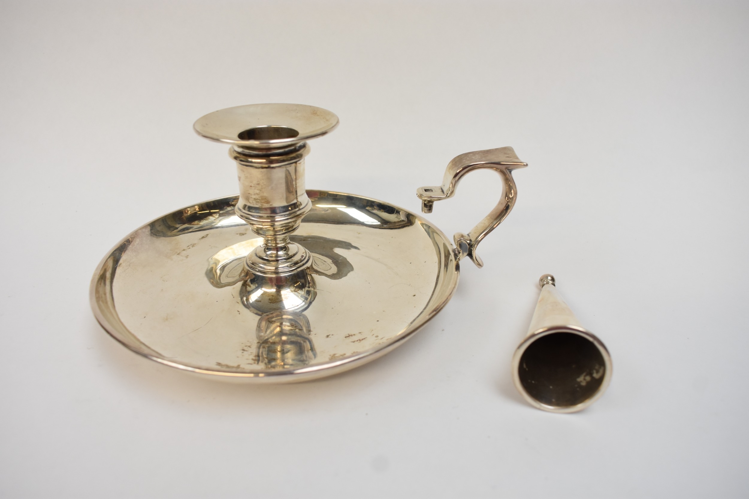 A late Victorian silver chamberstick, with conical extinguisher. London 1900. By R&S Garrard & Co, Haymarket, London. 470.96g