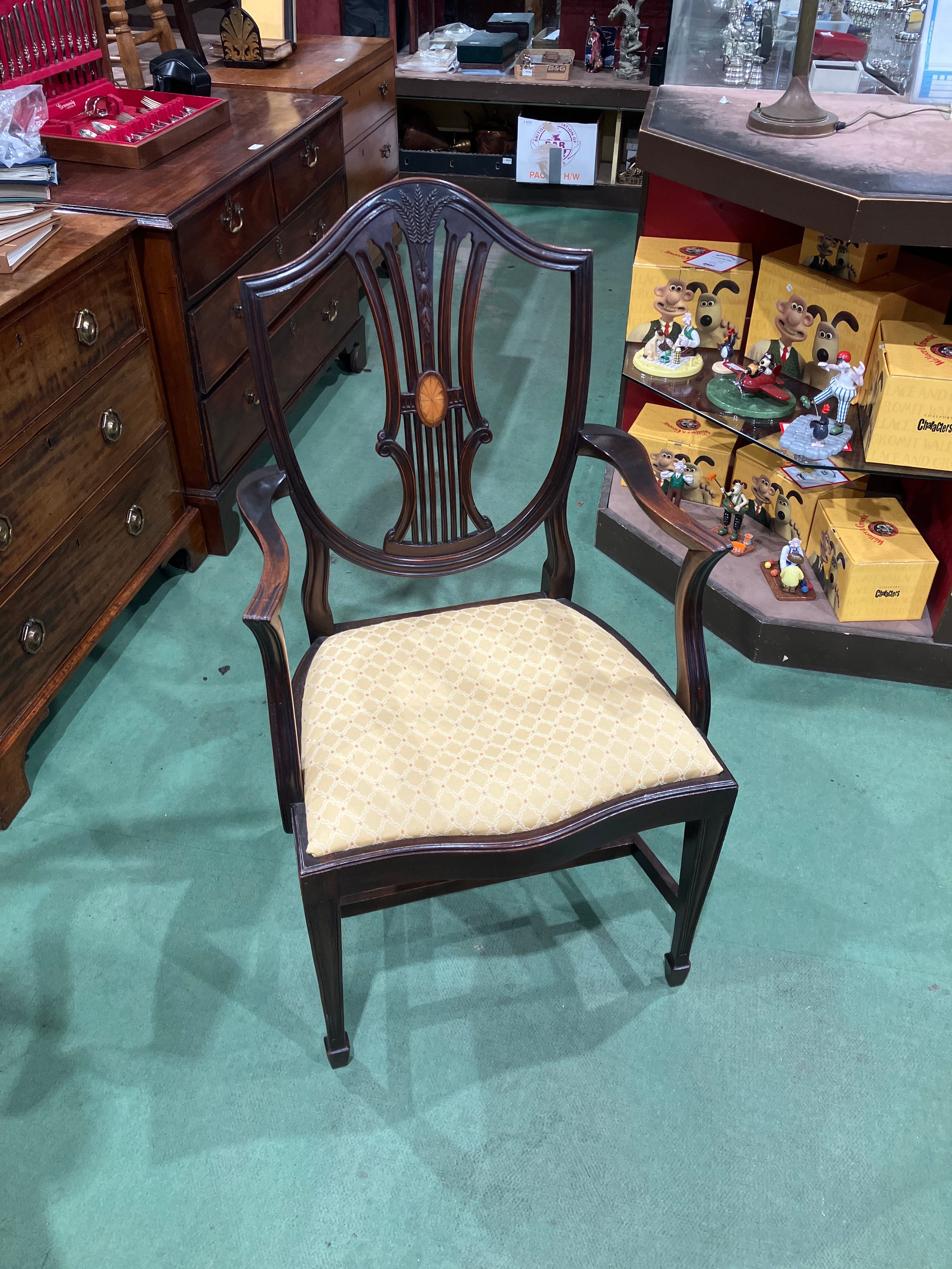 An Edwardian inlaid mahogany Georgian style open armchair