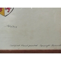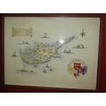 A hand painted map of Cyprus showing historic dates etc., framed and glazed, 36cm x 50cm image size