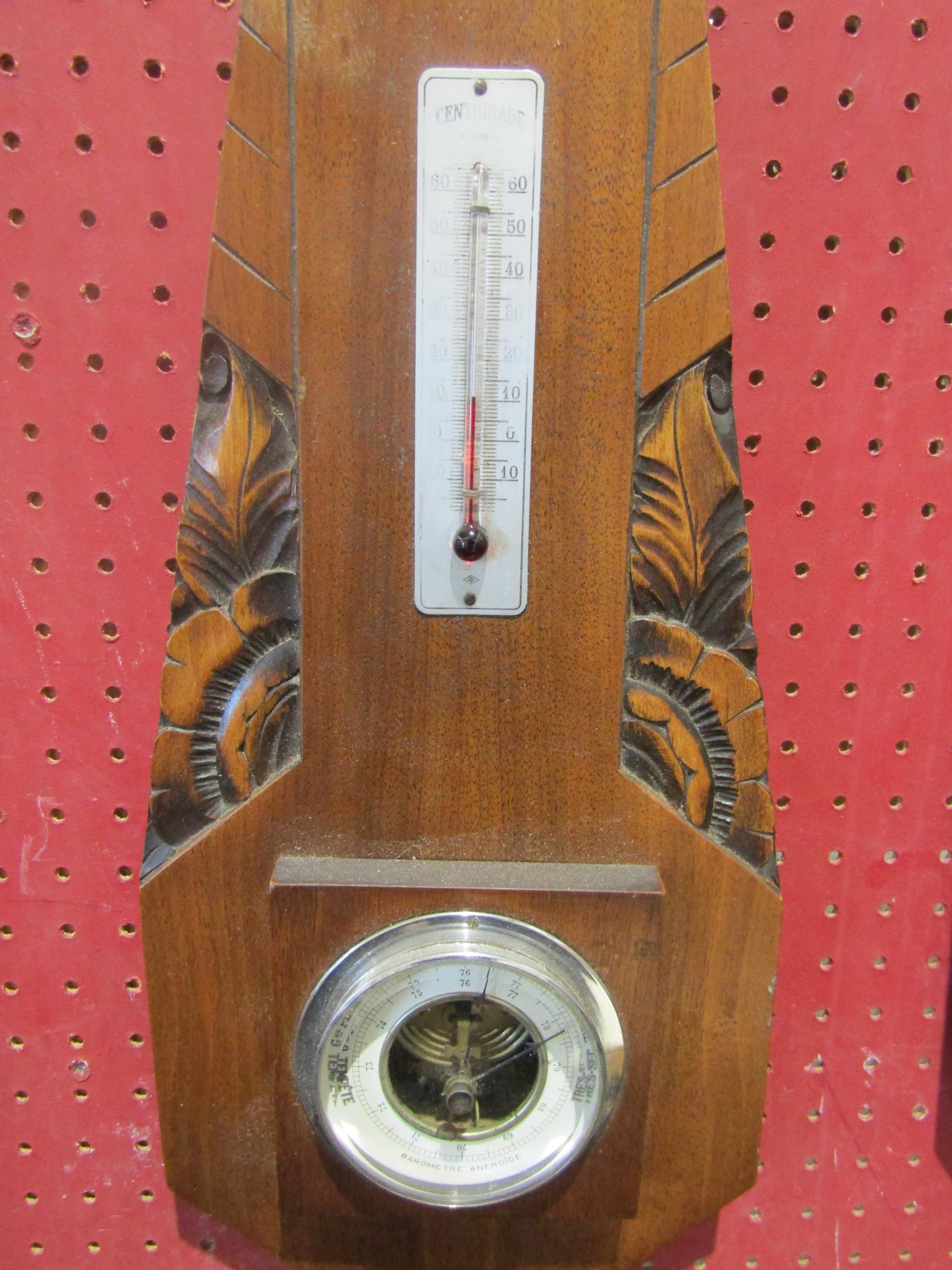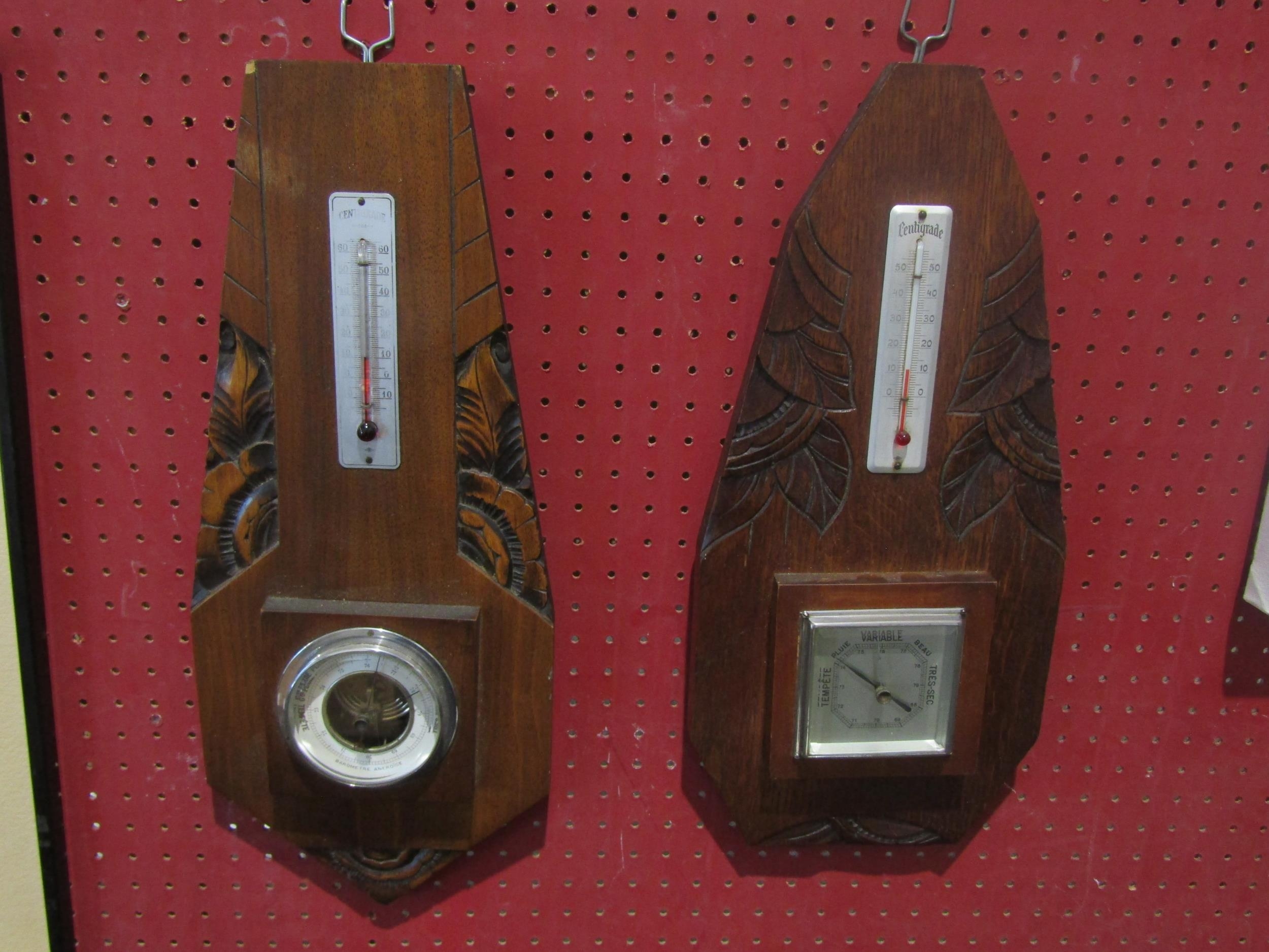 Two French barometers - wall hanging, wood carved