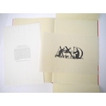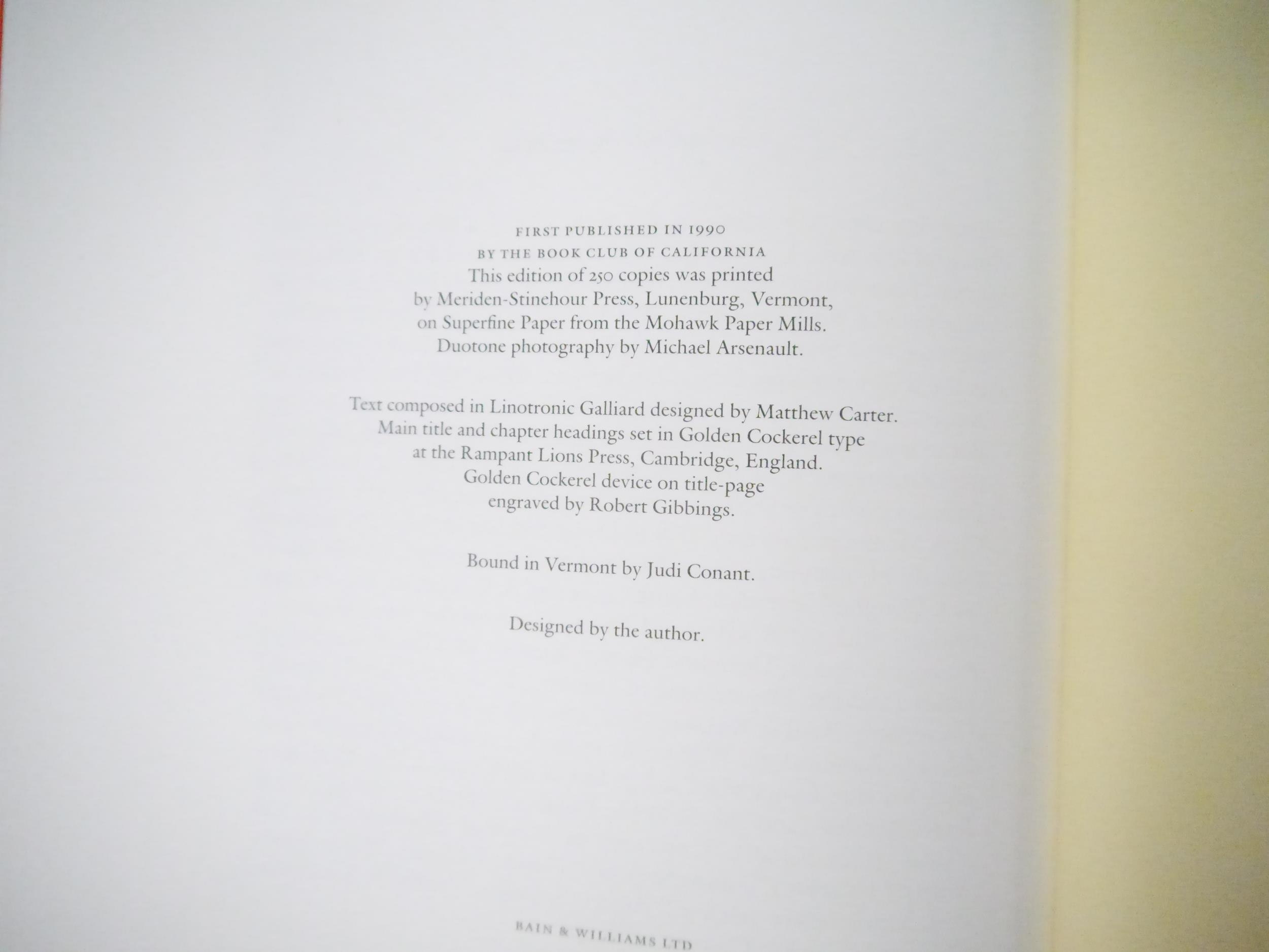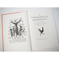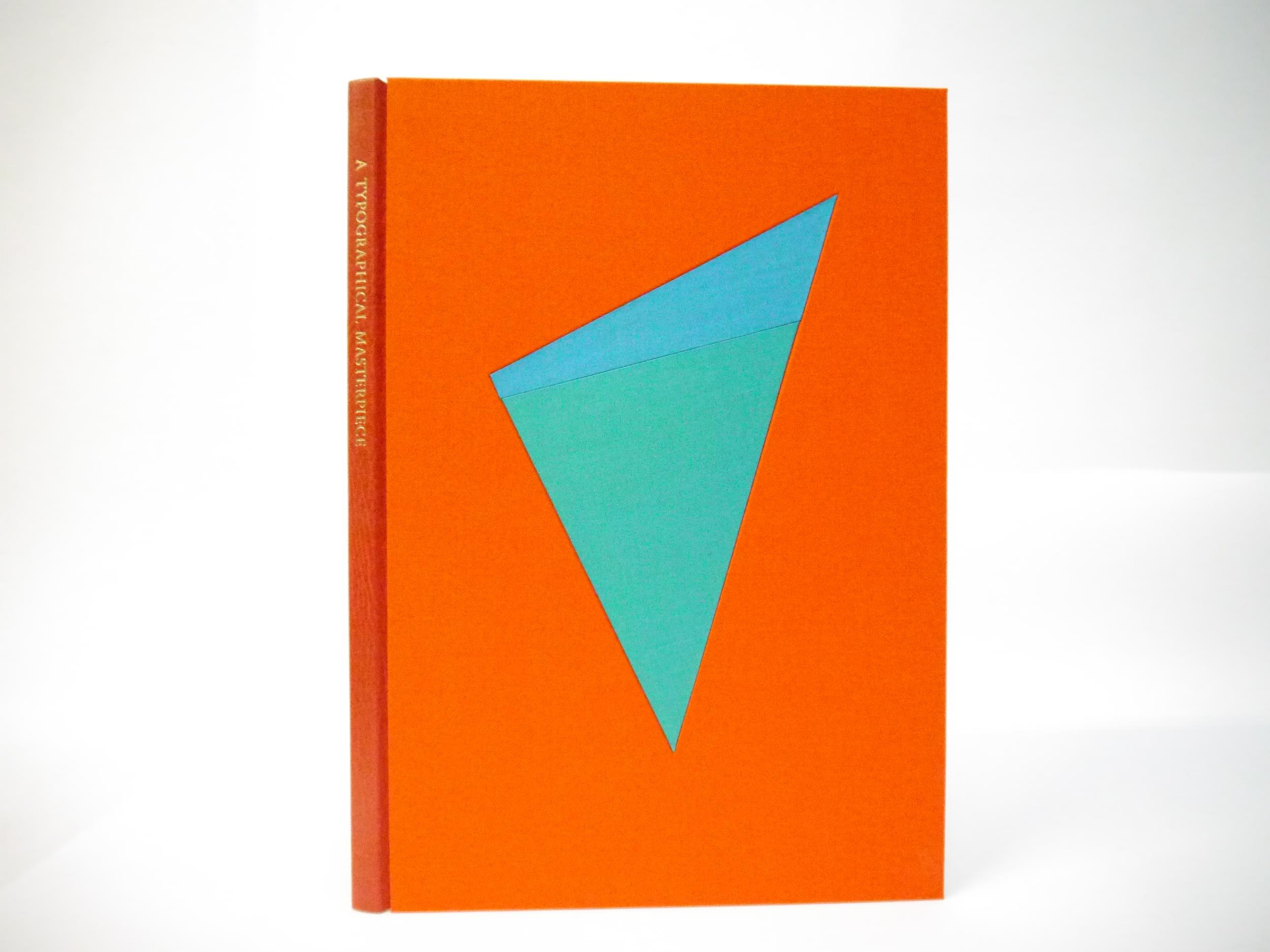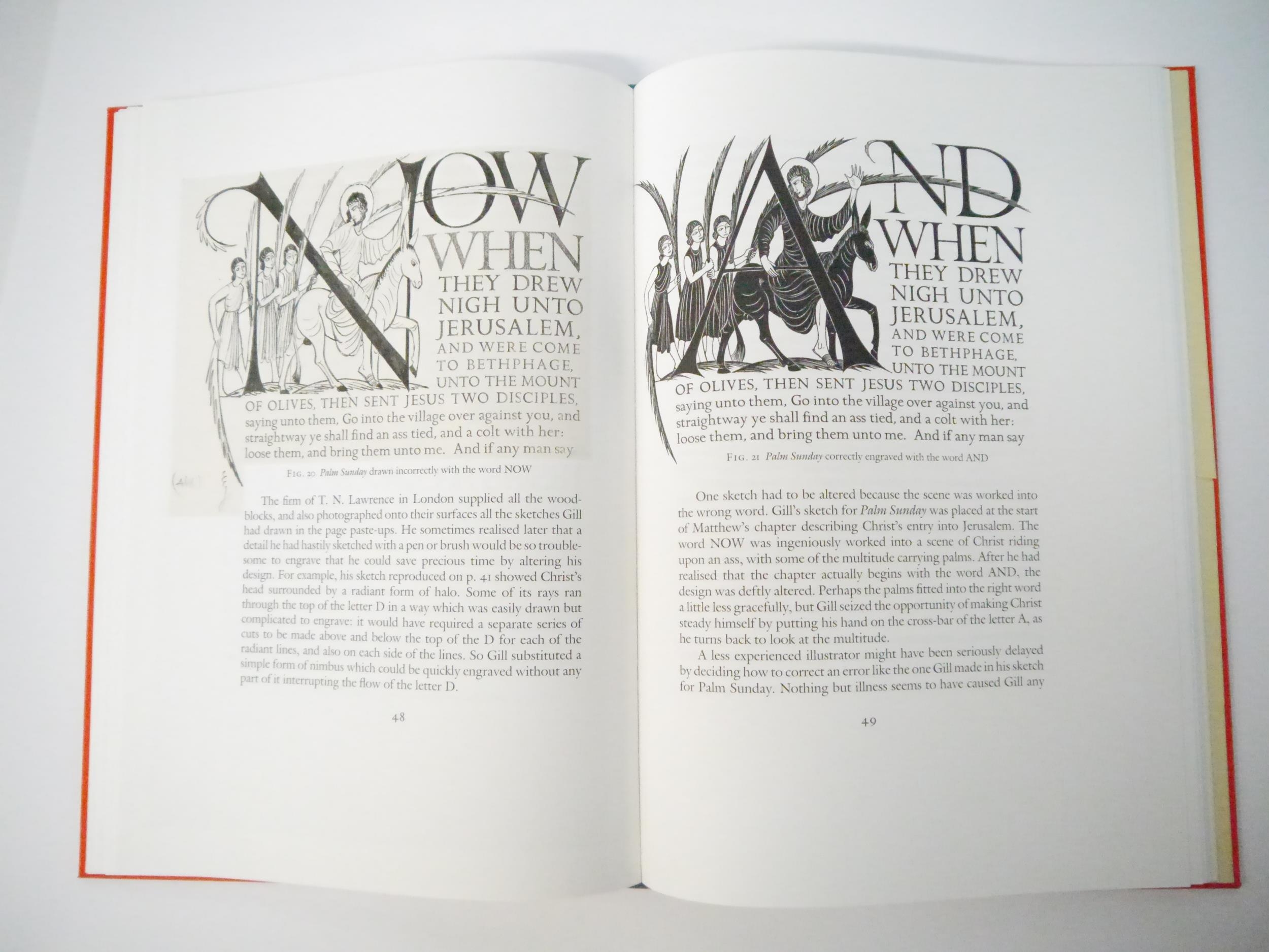 Eric Gill and others: 'A Typographical Masterpiece. An account by John Dreyfus of Eric Gill’s collaboration with Robert Gibbings in producing the Golden Cockerel Press edition of 'The Four Gospels' in 1931', London, Bain & Williams, 1991, limited edition, this being one of only 40 special copies, bound by Clare Skelton with red leather spine, titling gilt, striking geometric designs in coloured cloth to front and rear boards, slipcase, xii + 105pp, illustrated throughout, large 4to (34.5 x 24.5cm). This special copy comes with a fine Gill engraving printed from the block in a pocket at rear. Fine.