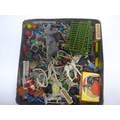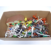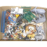 A tin of plastic and lead animal figures, 20th Century glass...