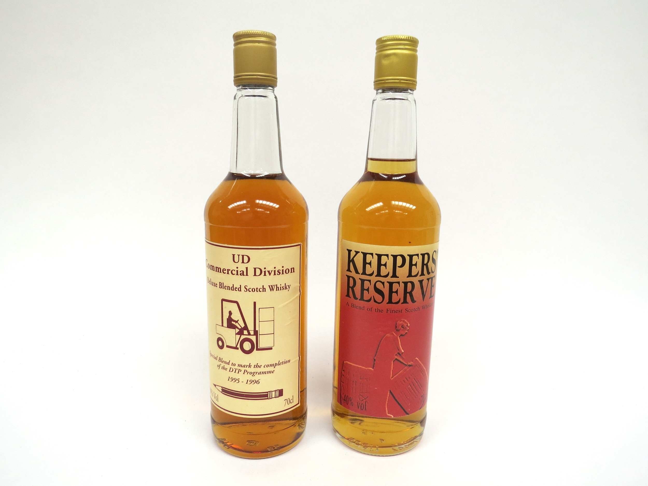 Keeper's Reserve Blend of The Finest Scotch Whiskies, 70cl. UD Commercial Division Deluxe Blended Scotch Whisky to mark completion of the DTP programme 1995-1996, 70cl (2)