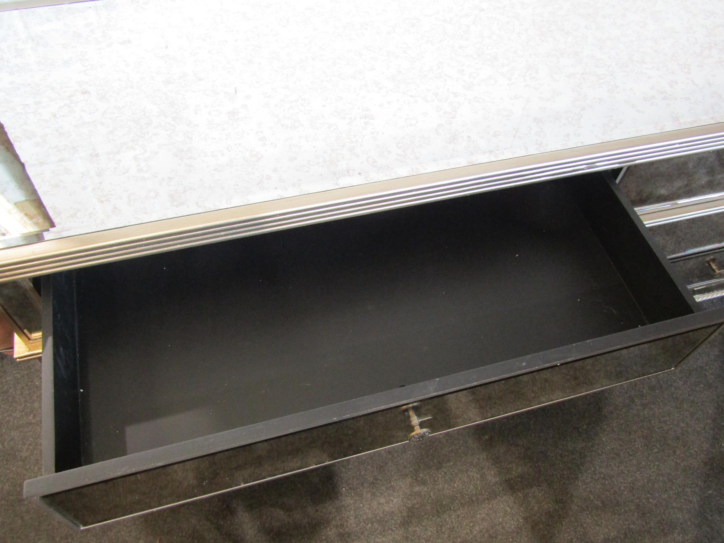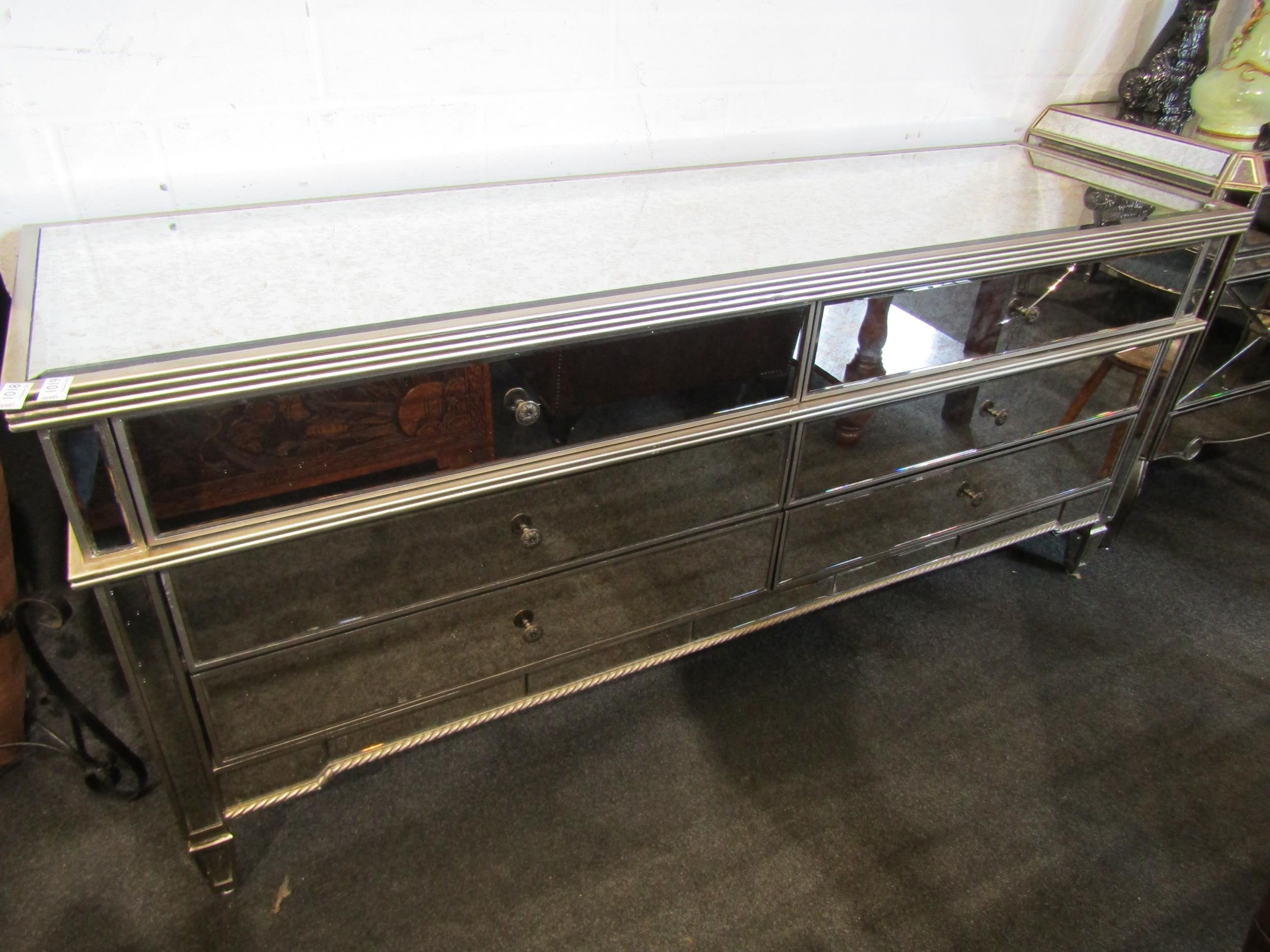 A mirrored and silvered sideboard with rope twist detail, six drawers, two a/f, 80cm tall x 180cm wide x 52cm deep