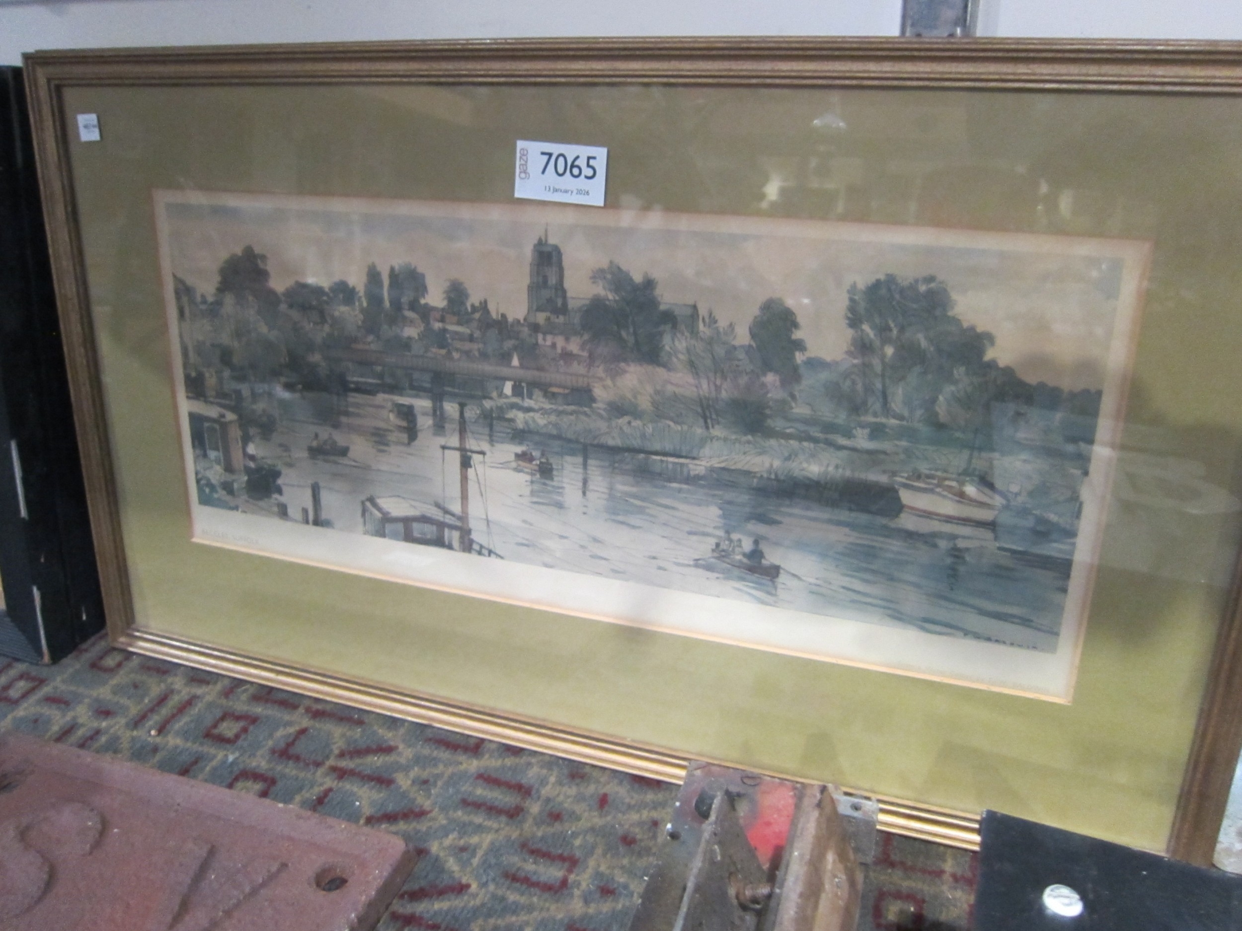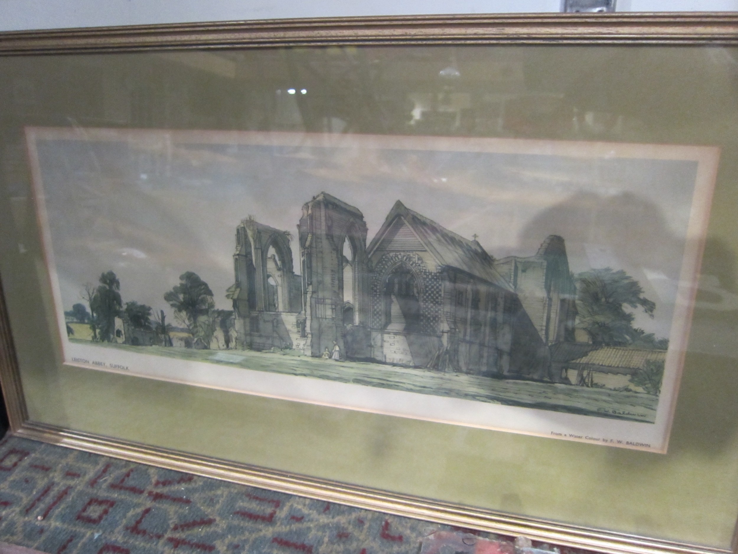 Two framed and glazed carriage prints depicting Beccles and Leiston Abbey, Suffolk. From watercolours by F.W Baldwin