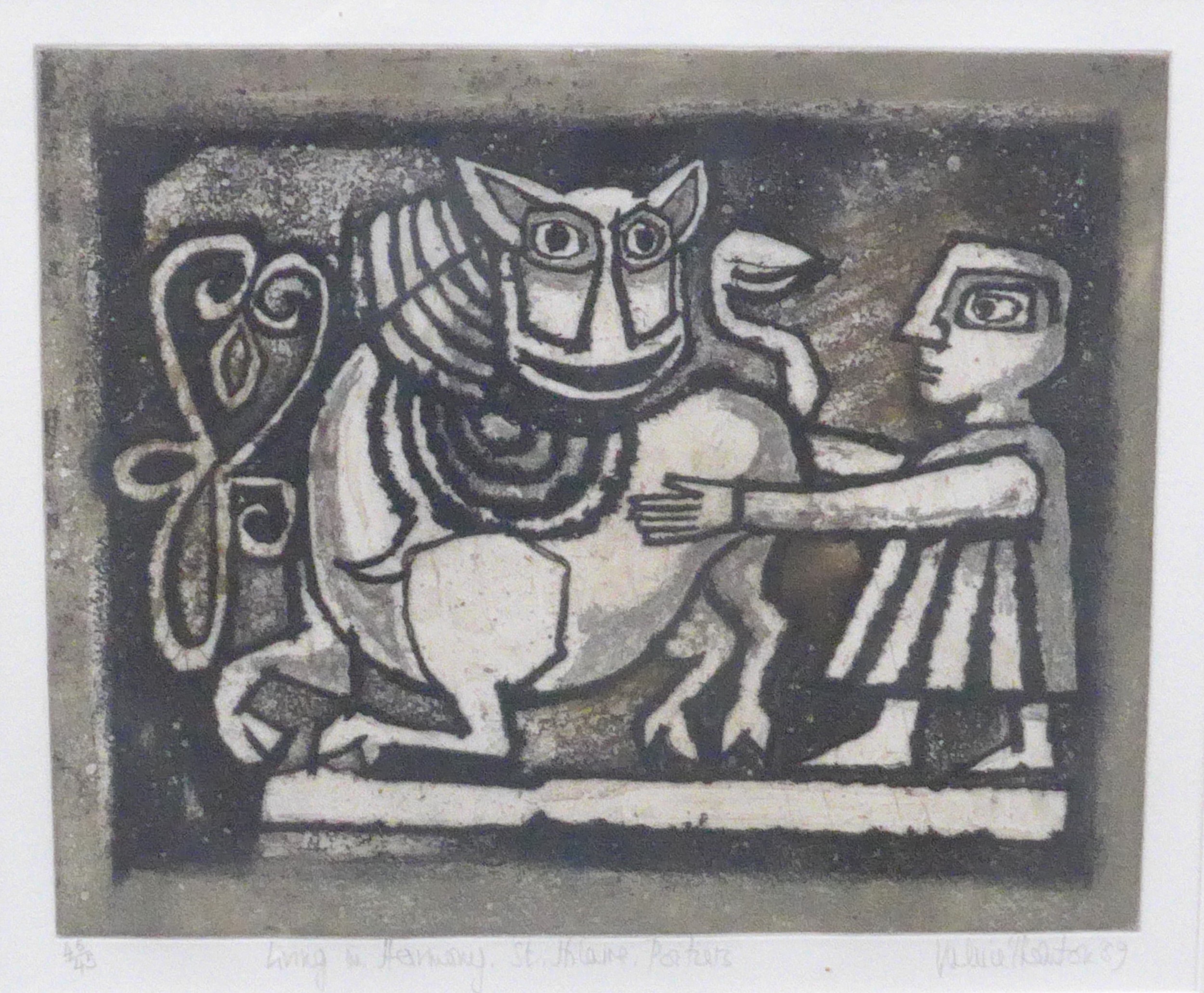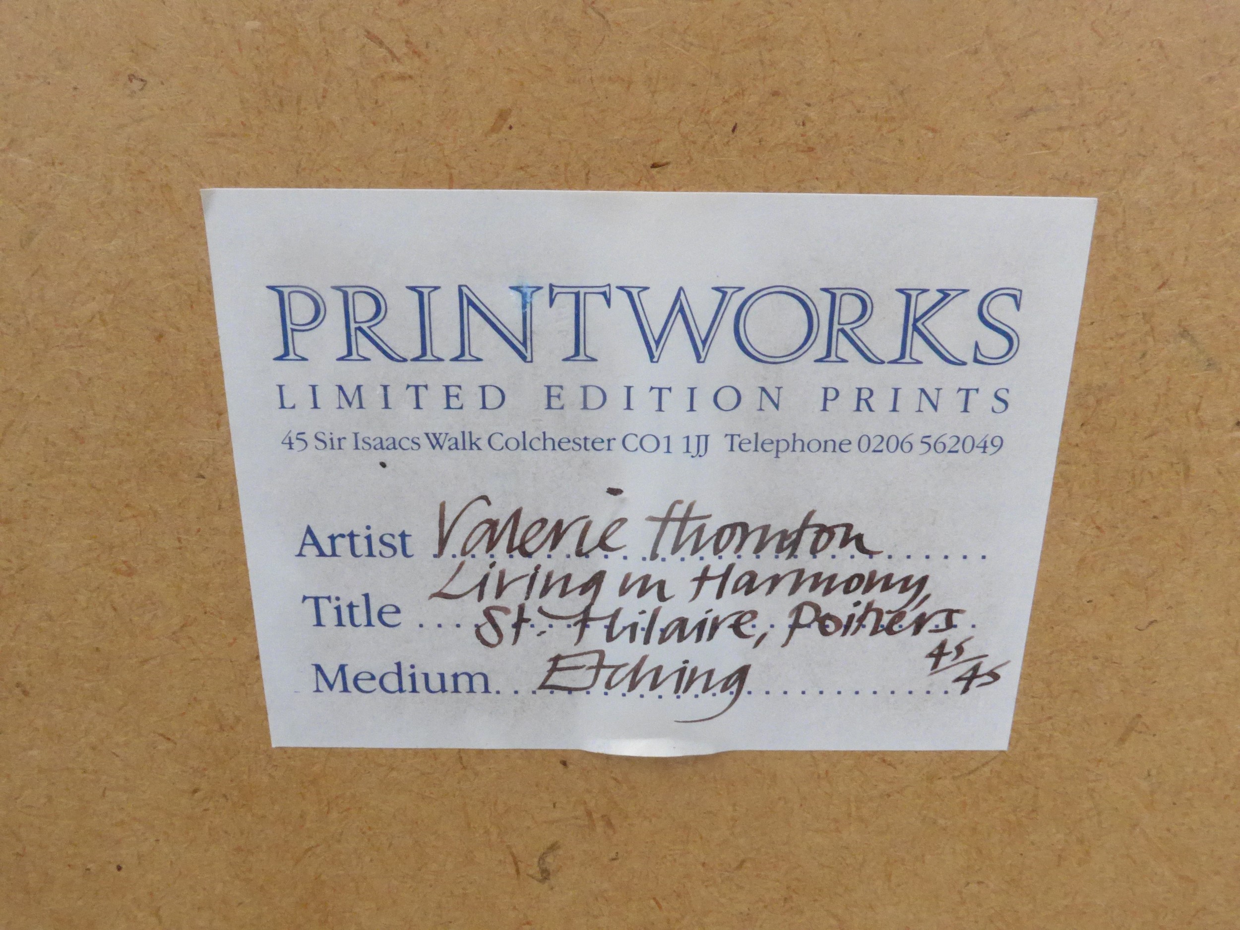 VALERIE THORNTON (1931-1991): An artist’s proof screen print entitled "Living in Harmony, St. Hilaire, Poitiers", 45/45 dated 89, 39cm x 47.5cm, framed and glazed