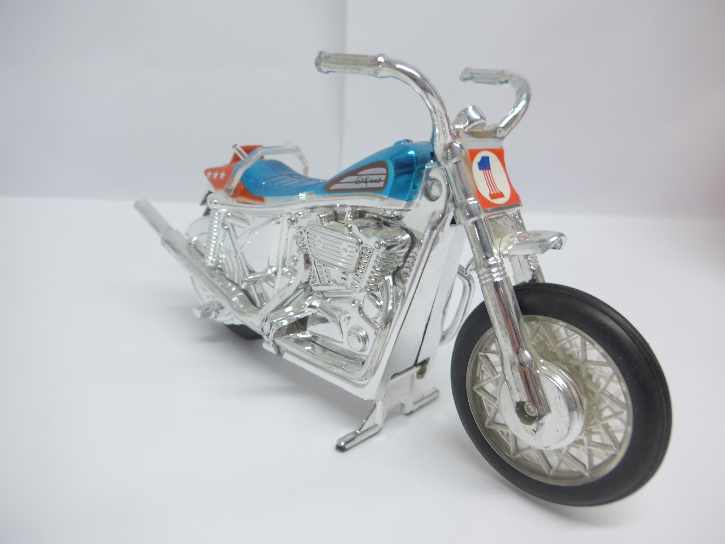 A 1970s Ideal Toys Evel Knieval action figure with stunt cyc...