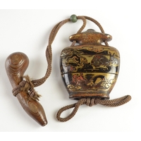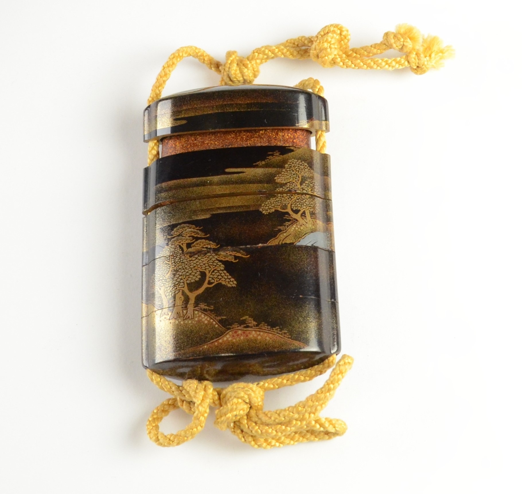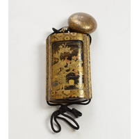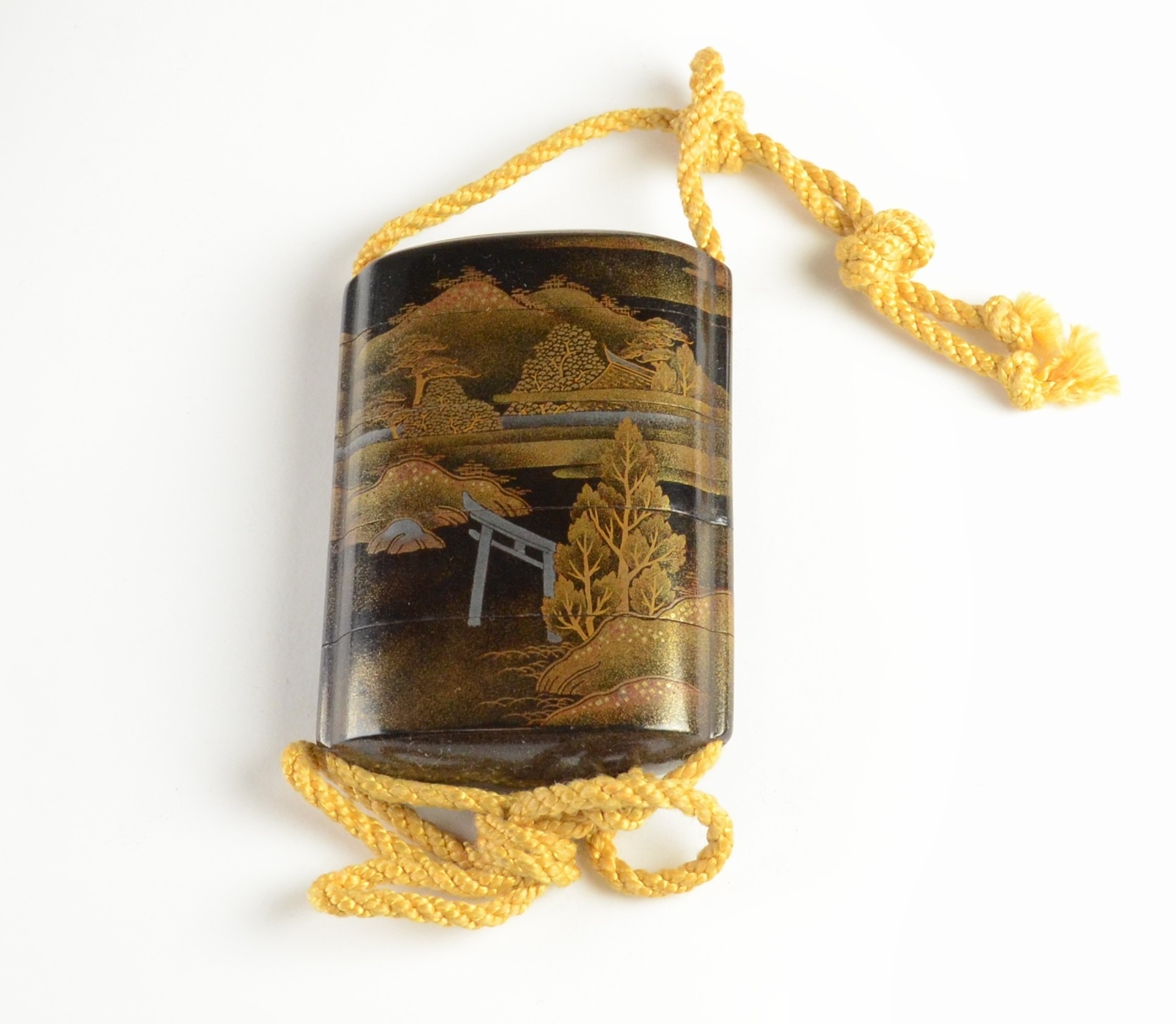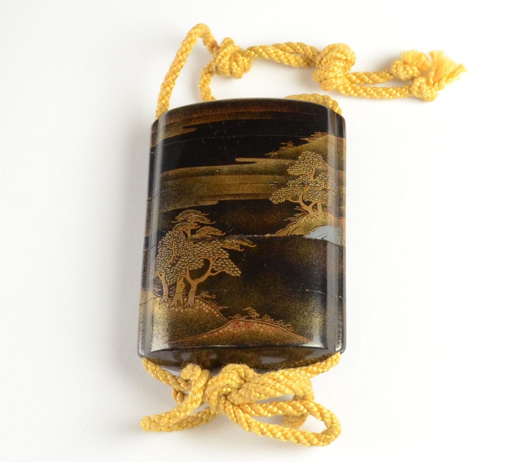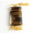 A four case lacquer inro depicting landscape scenes, unsigned7.5cm high, 5.3 cm wideProvenance- Henry Potter Stevens Collection no 387Sothebys 27/7/48 part of lot 41
