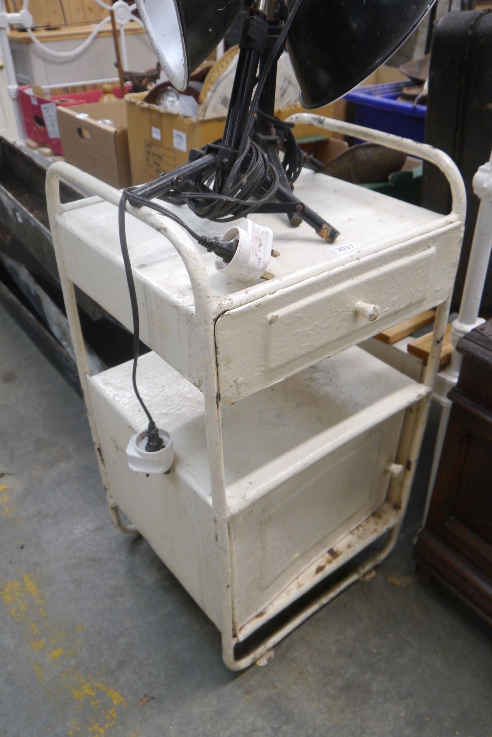 A painted metal medical cabinet