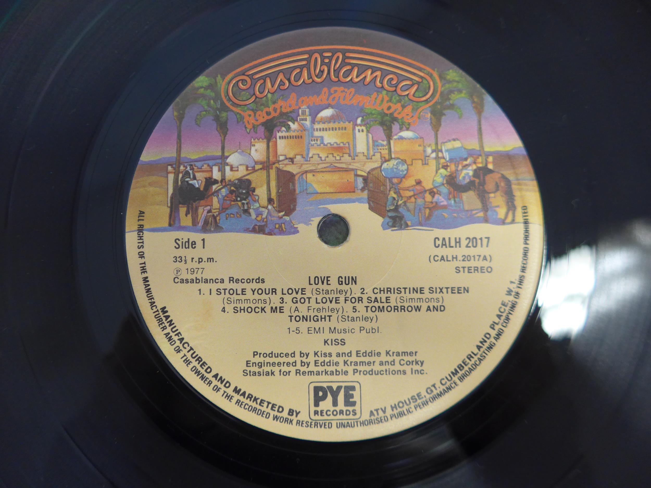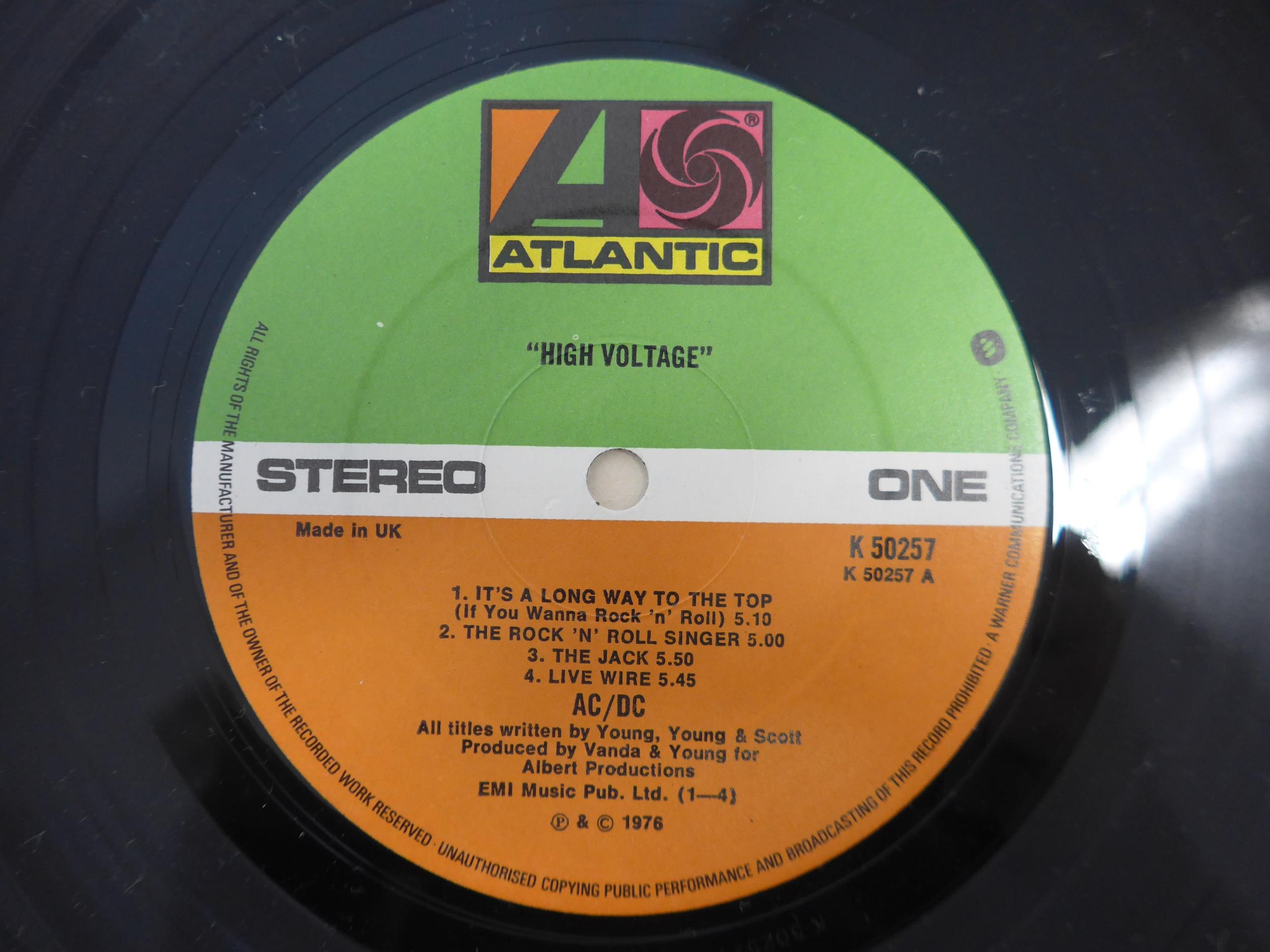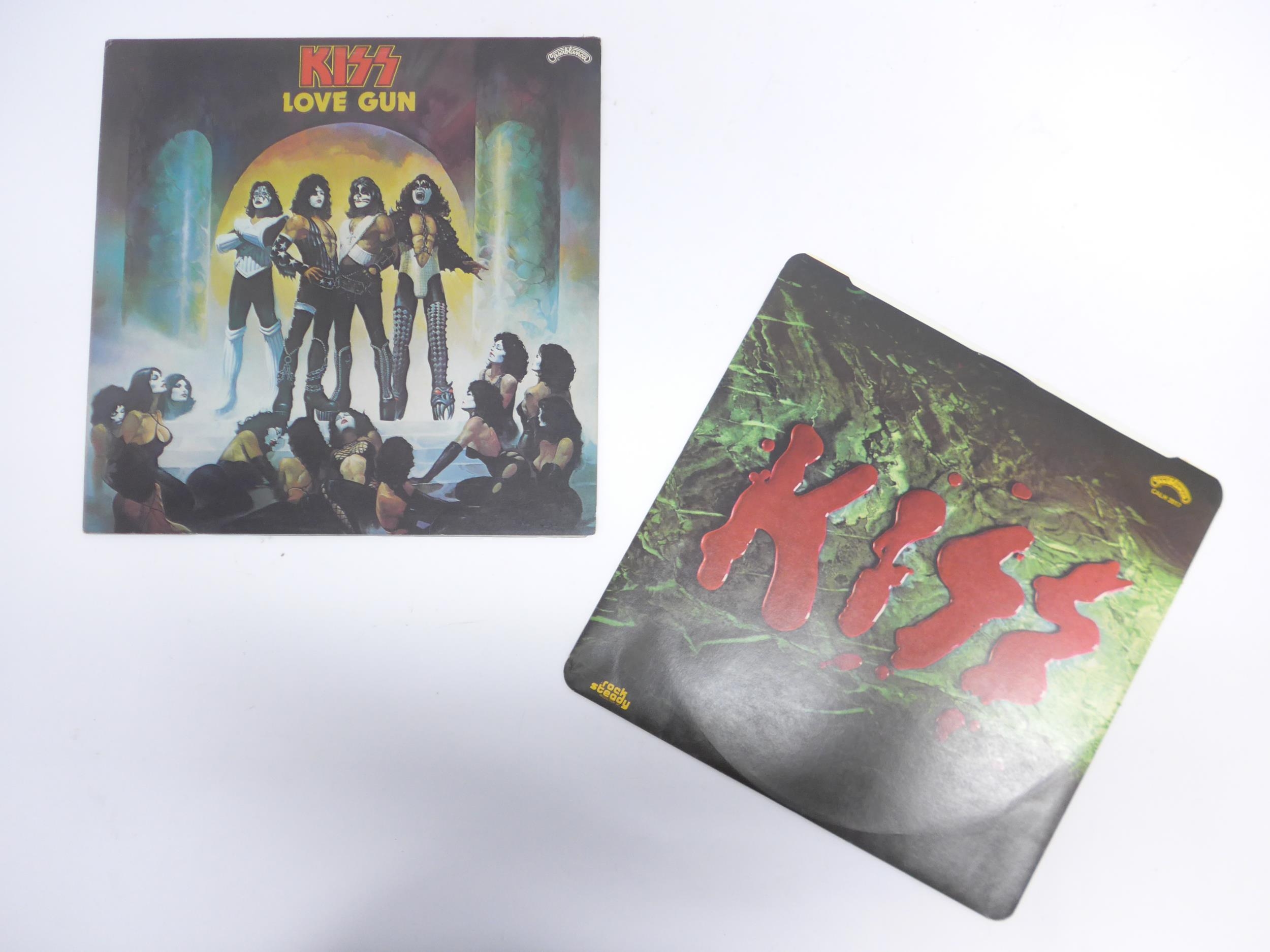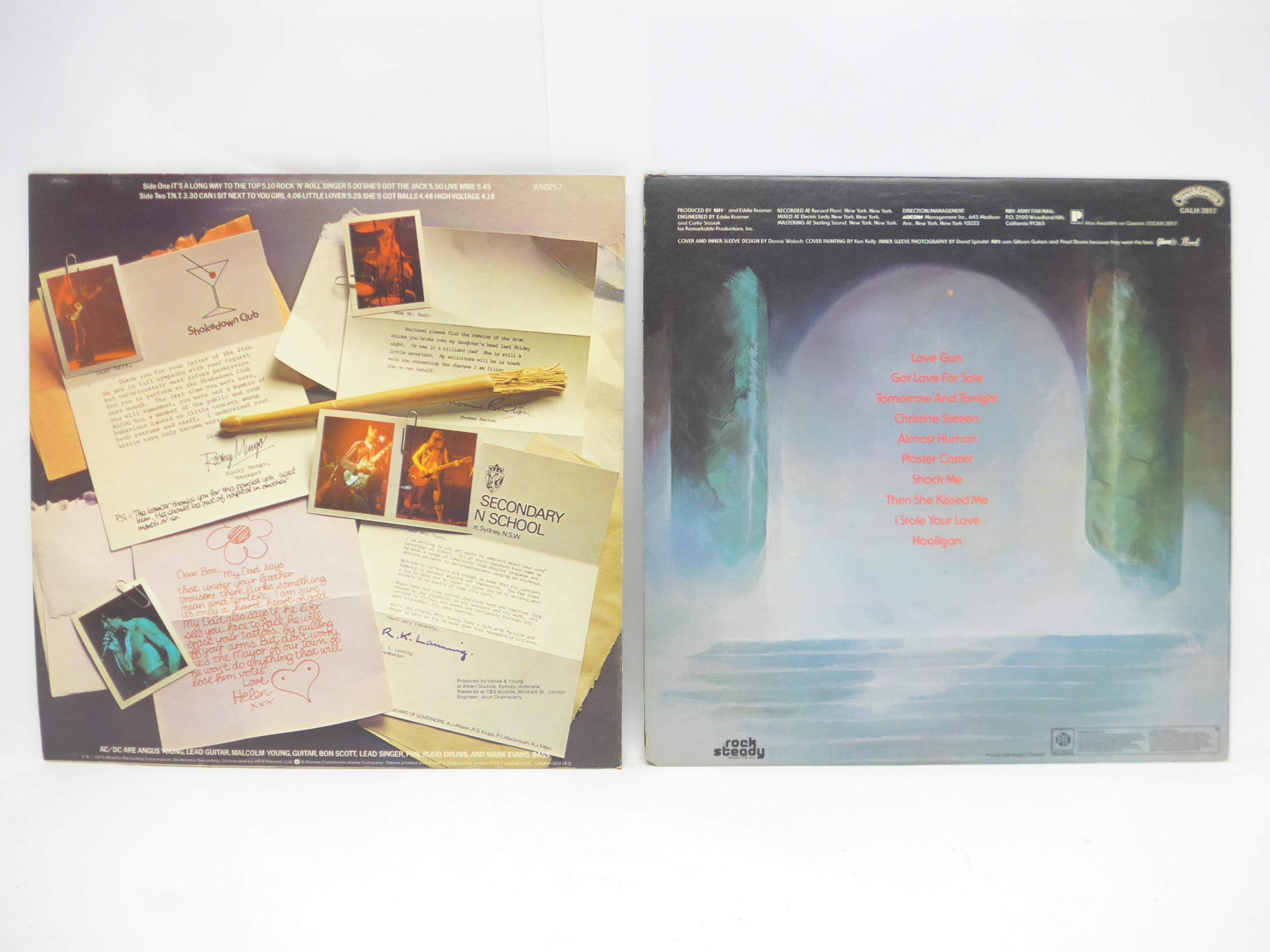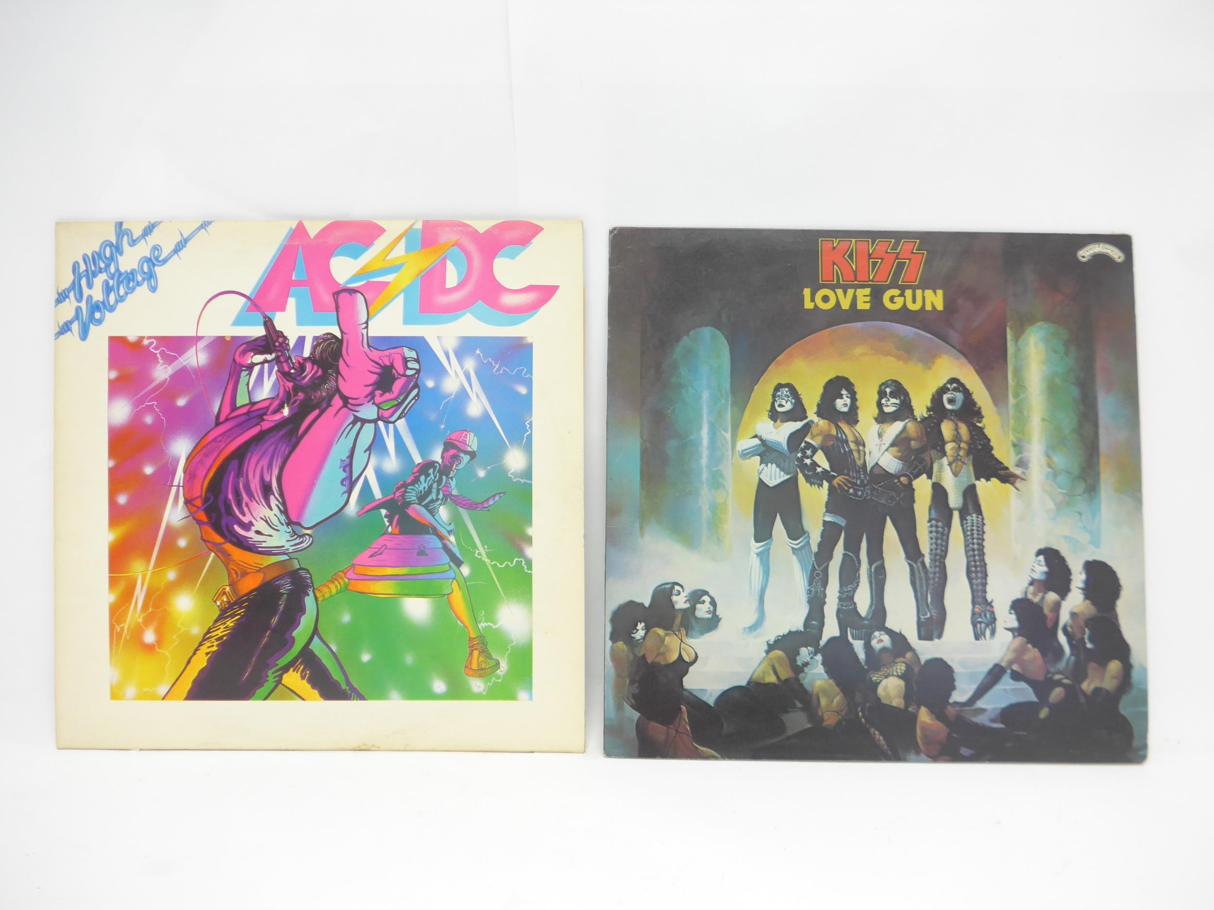 Hard Rock - Two LPs to include AC/DC: 'High Voltage' original 1976 UK pressing (Atlantic K 50257, vinyl and sleeve VG+), and KISS: 'Love Gun' original 1977 UK pressing on translucent purple vinyl with printed inner with rounded corners (Casablanca CALH 2017, vinyl VG, sleeve VG+)