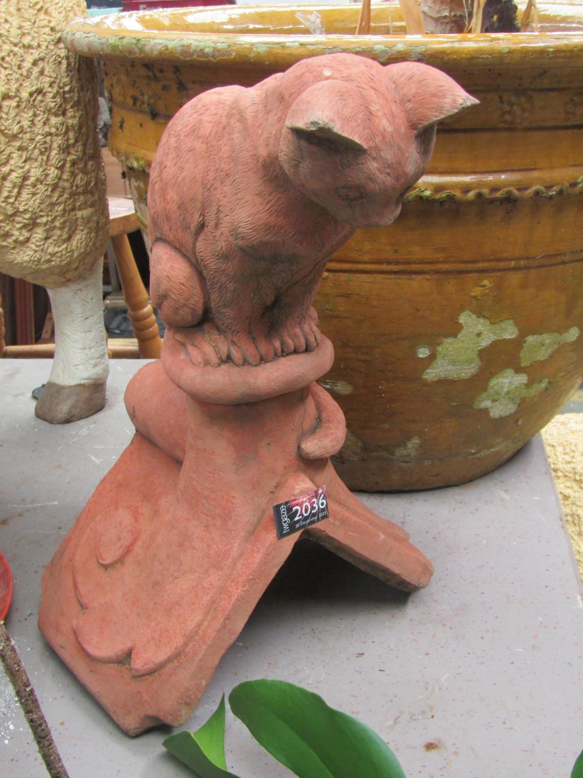 A terracotta cat roof finial