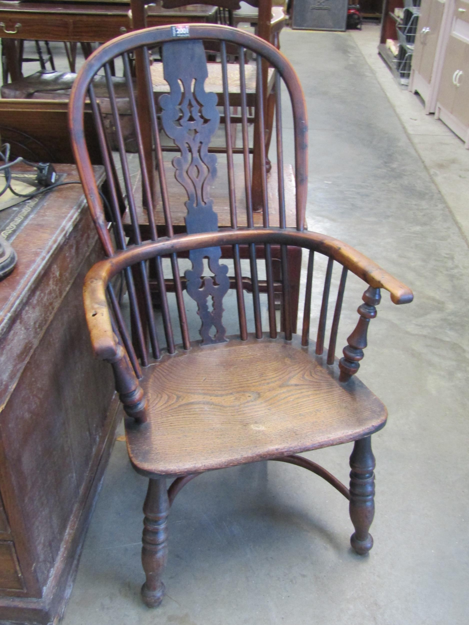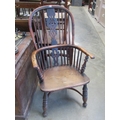 A Georgian yew and elm seated Windsor chair with crinoline stretcher