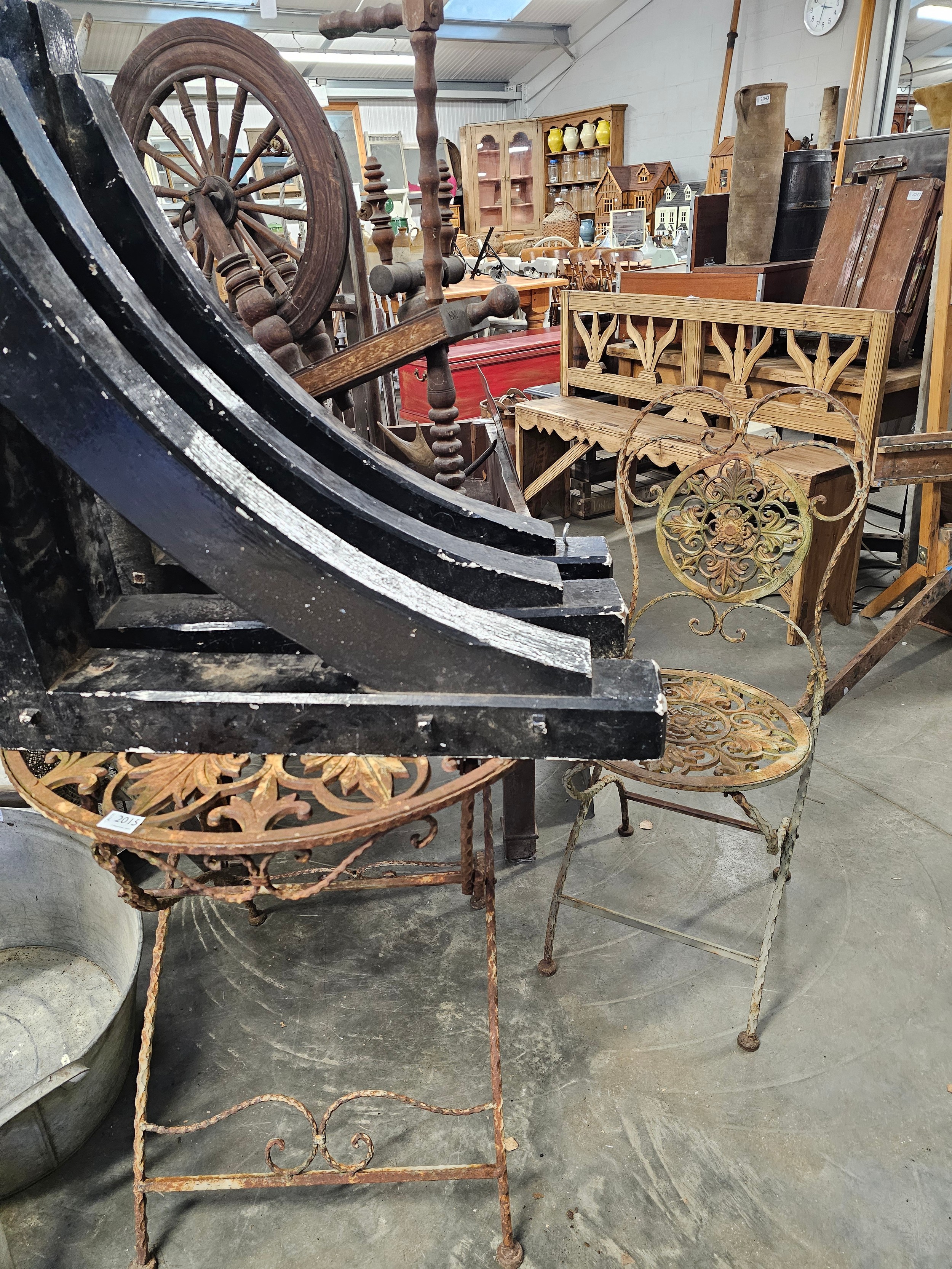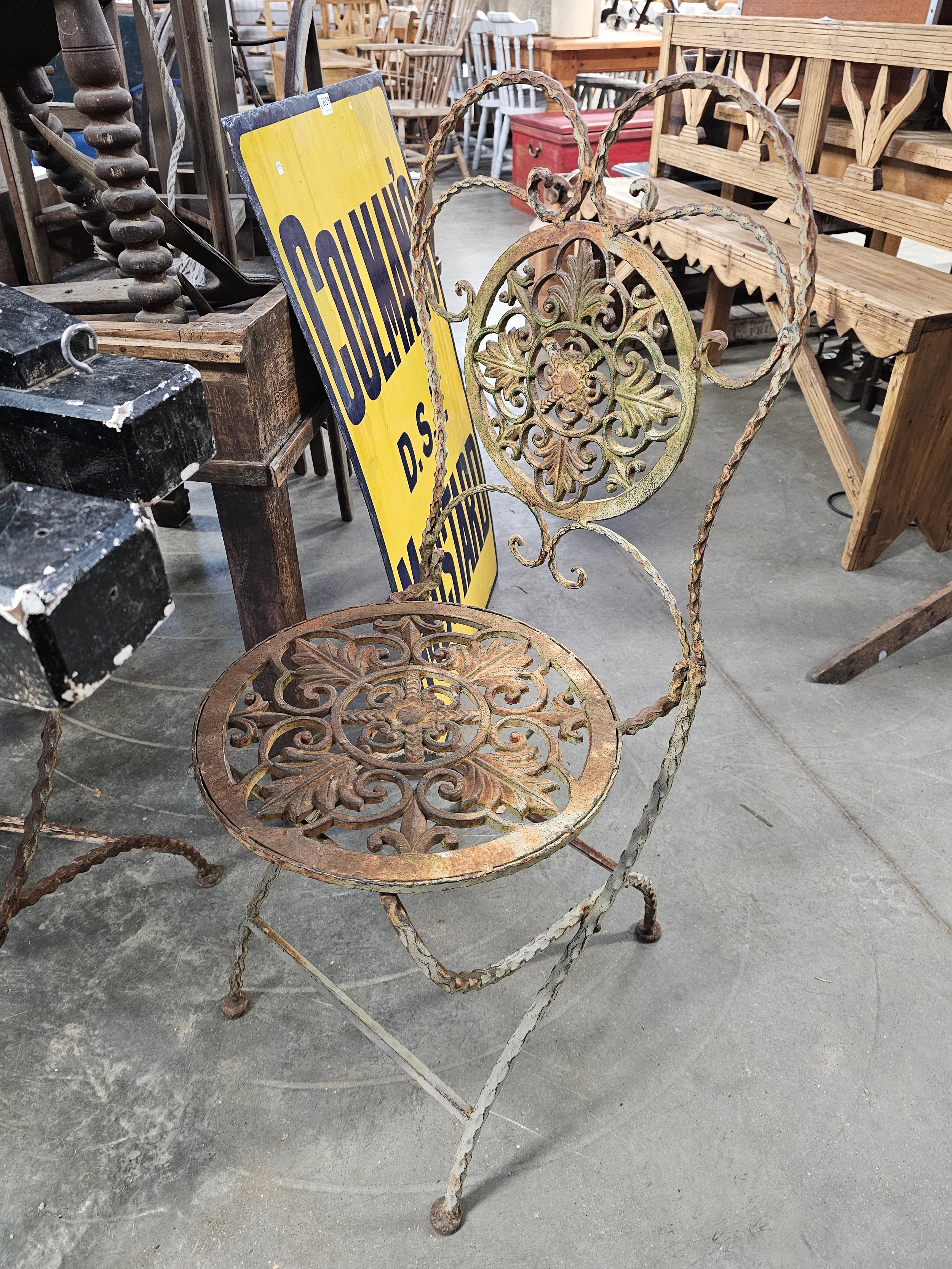 A cast iron garden table and chairs