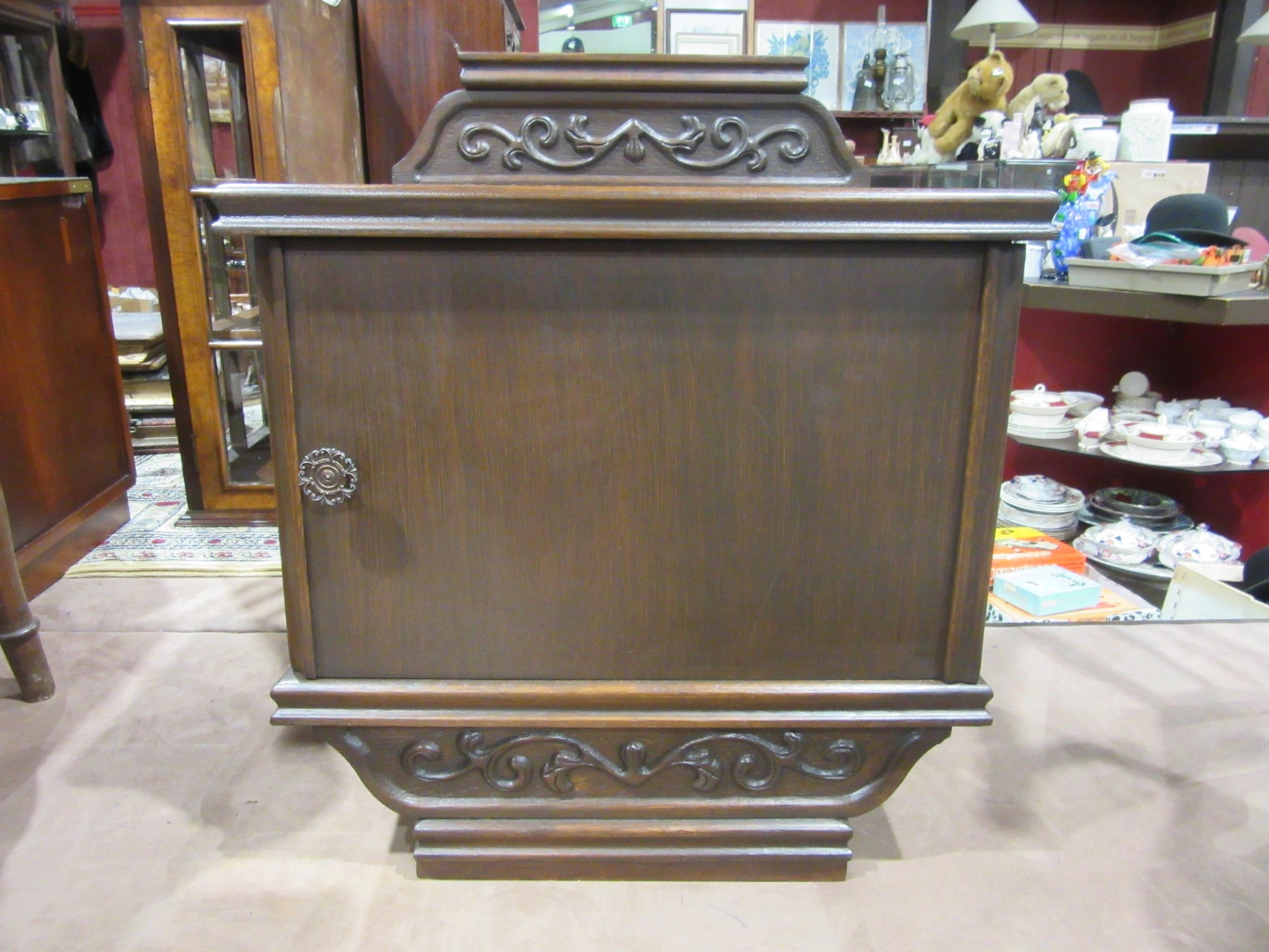 A small single door cupboard with carved upstand, 56cm total...