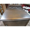 A small single door cupboard with carved upstand, 56cm total hight with gallery back
