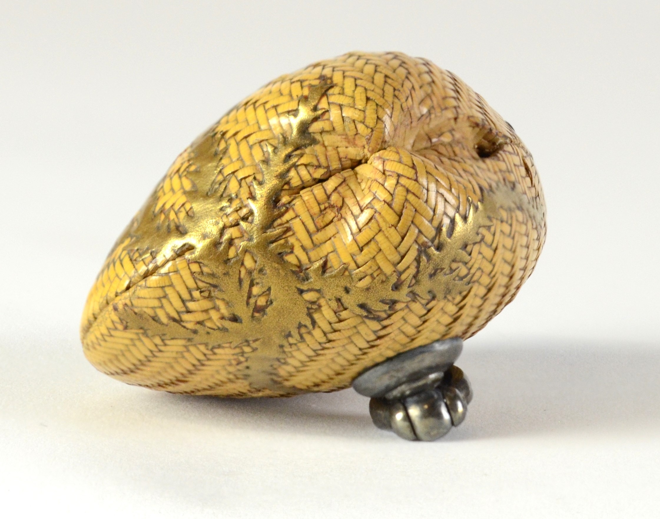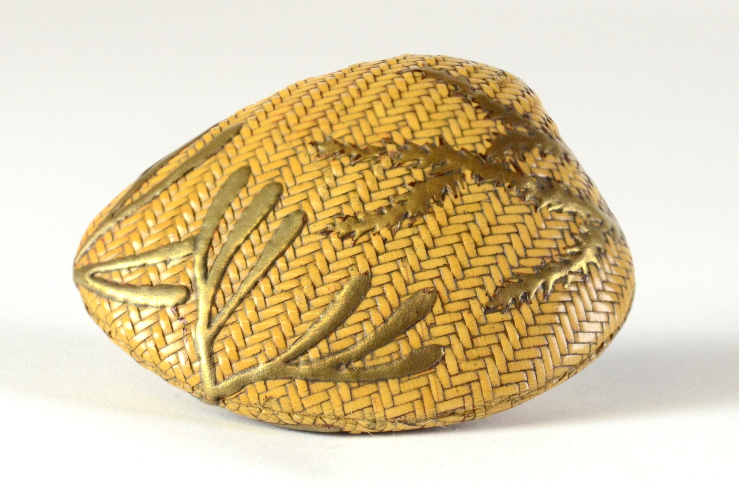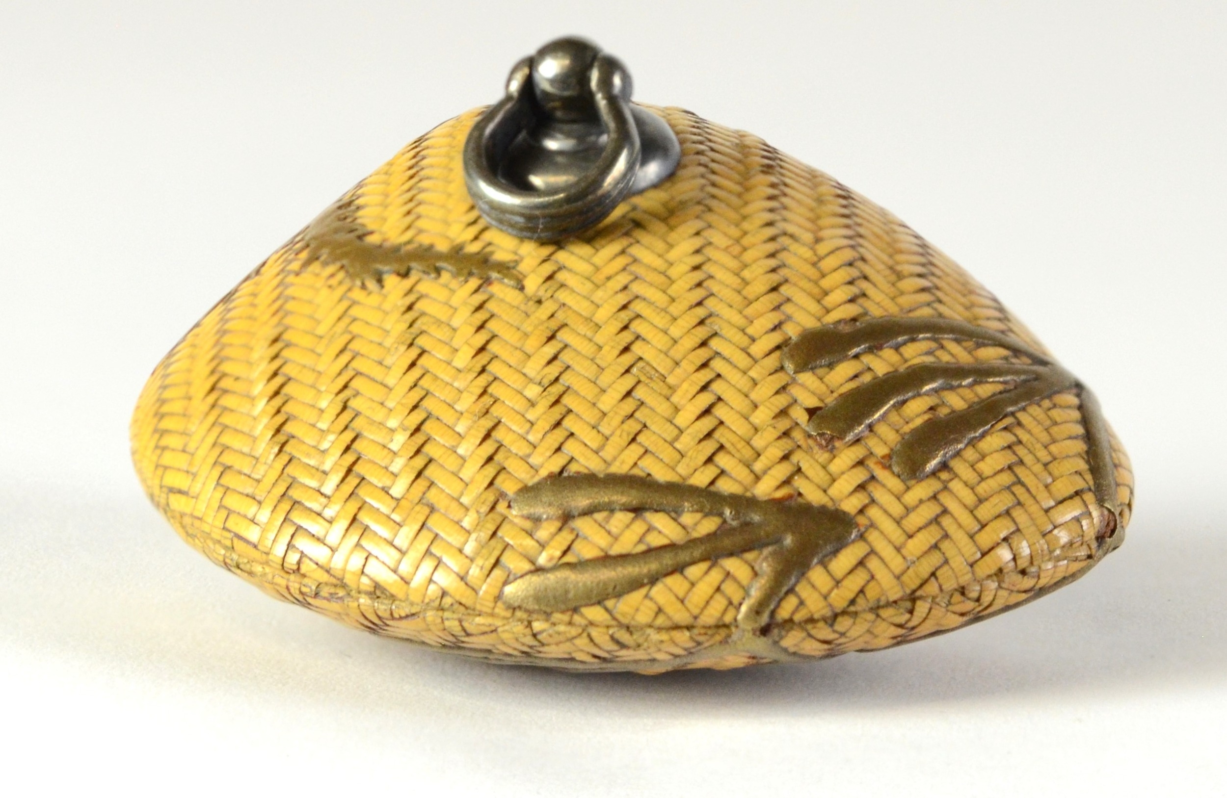 A plaited cane model of a clam shell lacquered with gold seaweed 4.5cm deep Provenance Dorothy Ann Stevens Collection no. 128 Behrens 1782 Glendinings lot 18 23/10/52