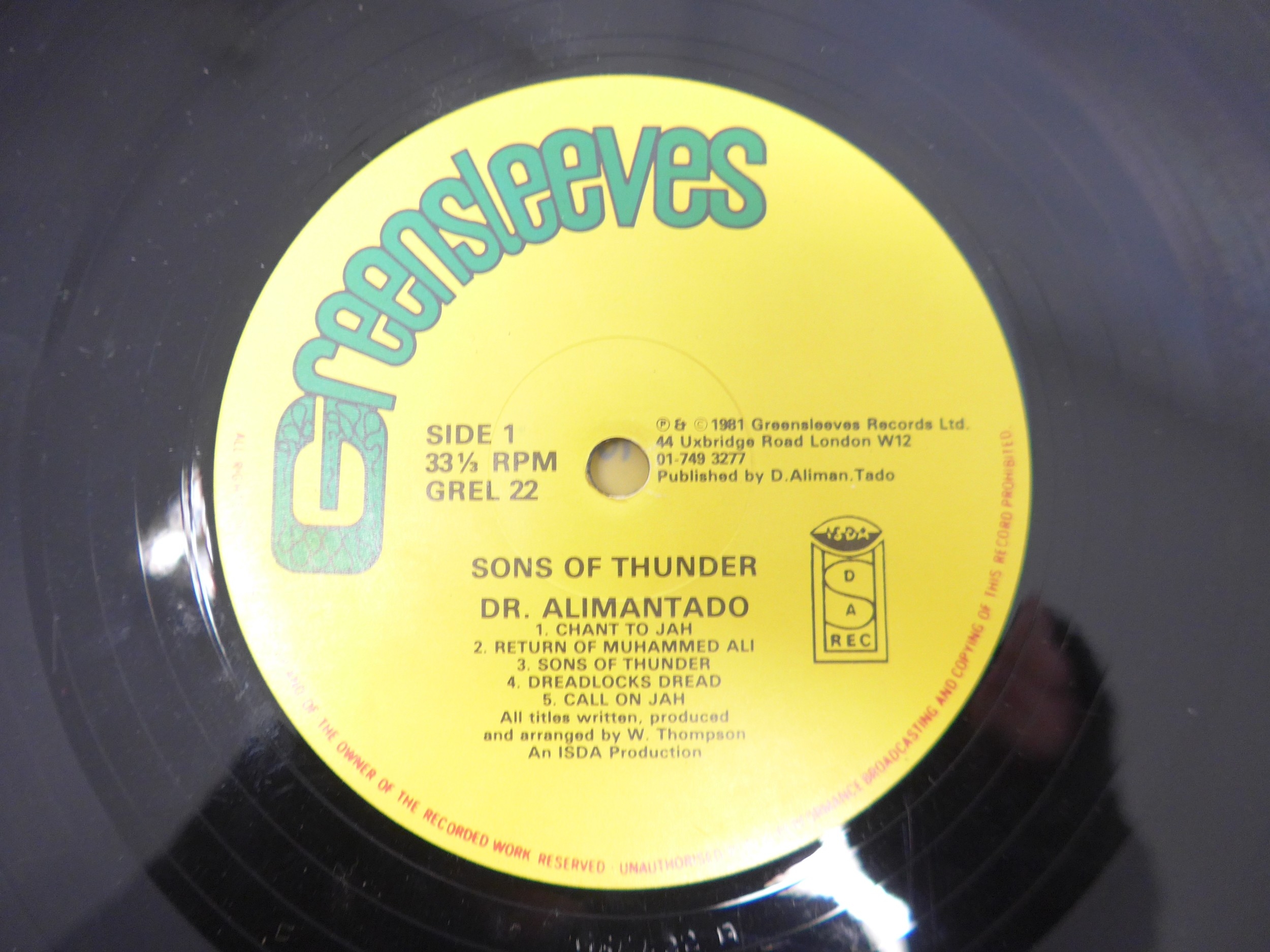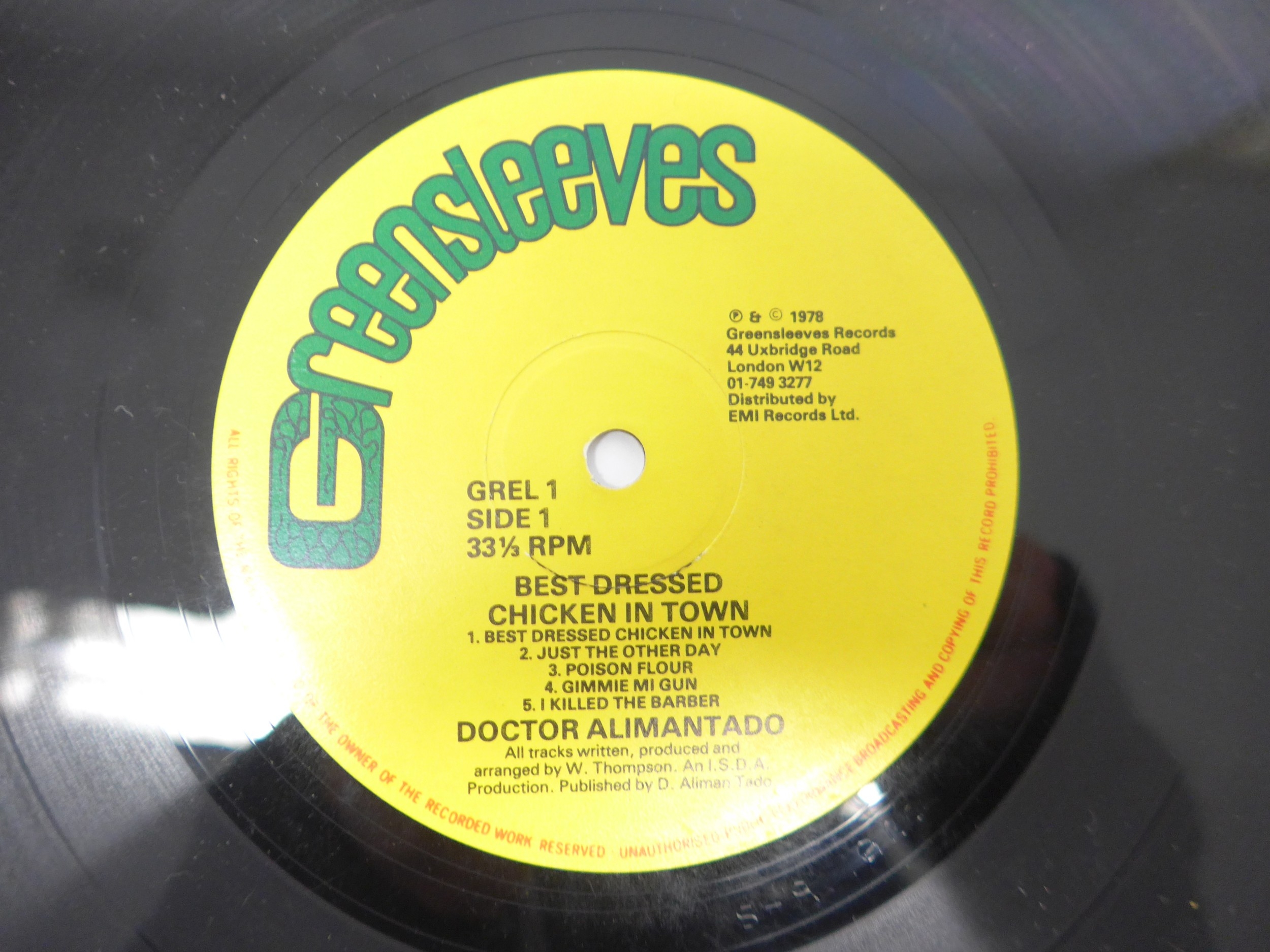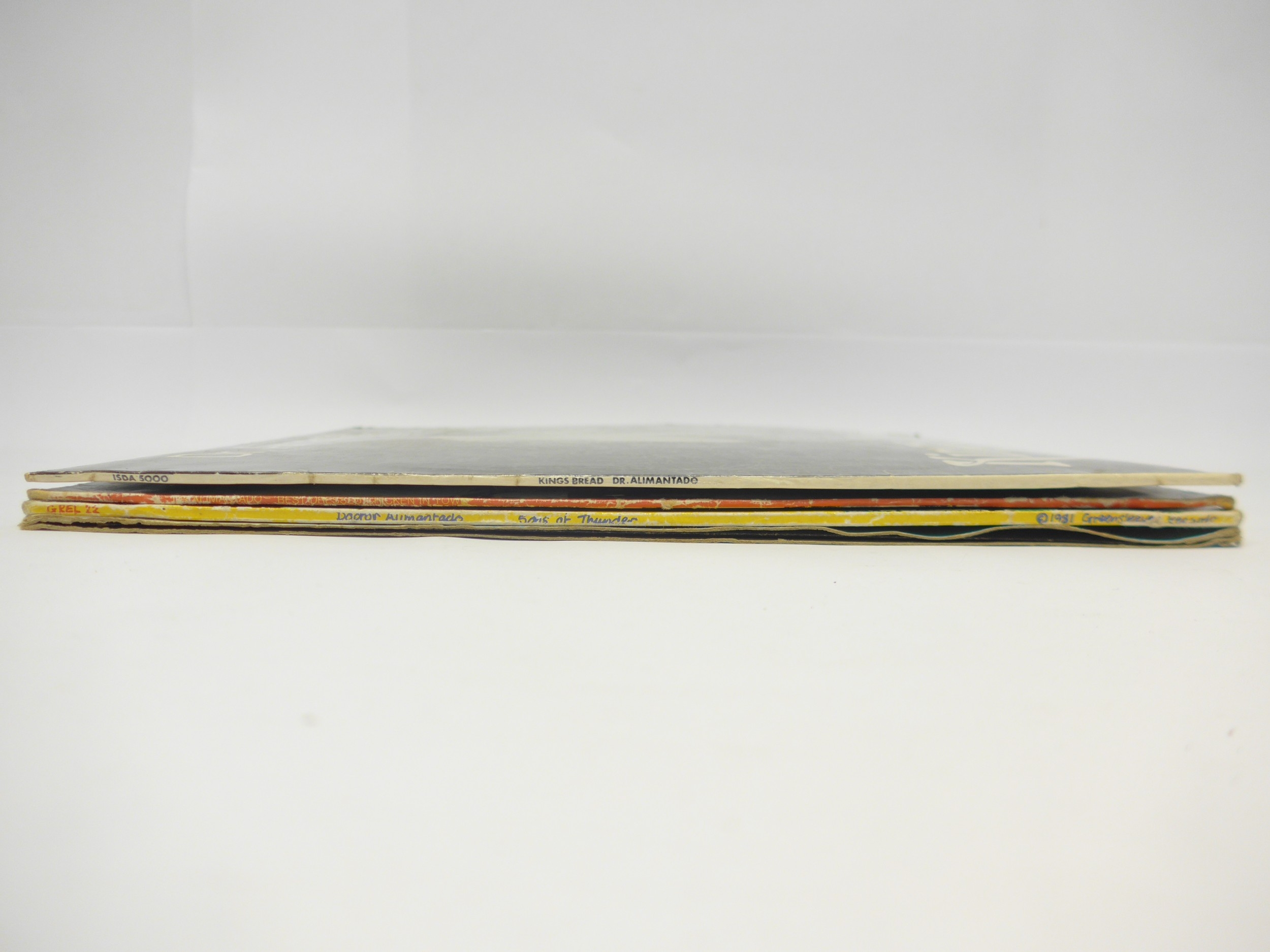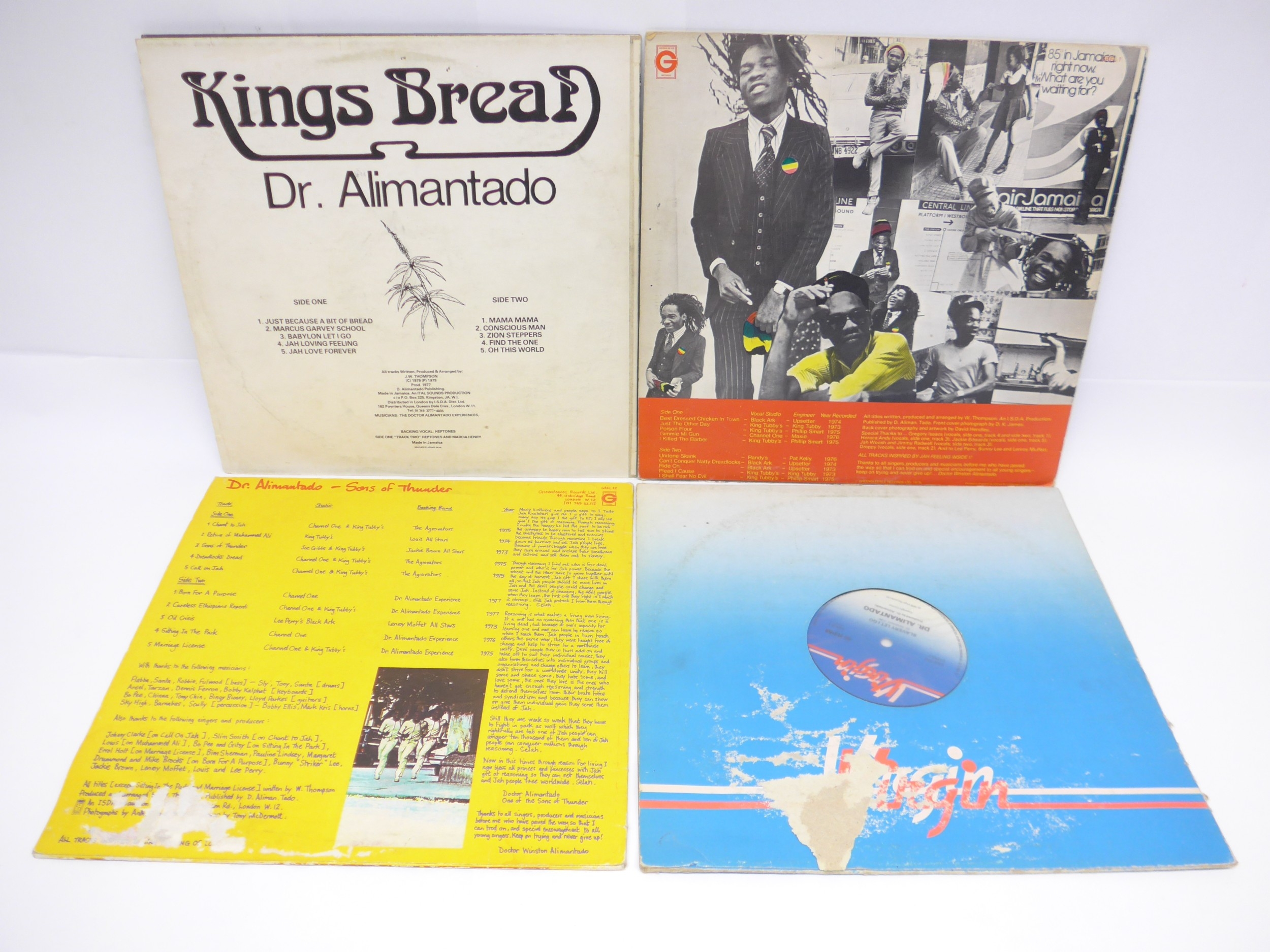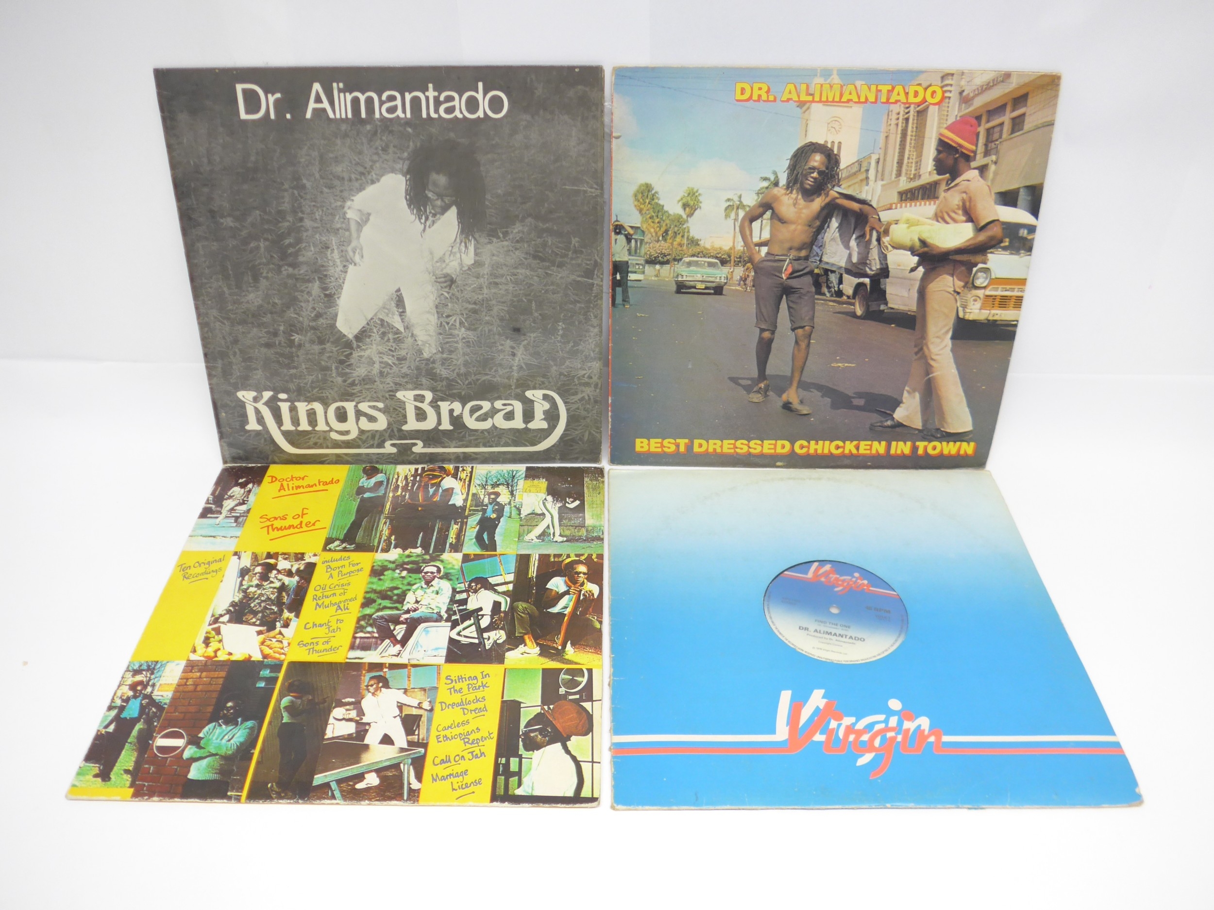 Reggae - DR. ALIMANTADO: Three LPs and one 12" single to include 'Kings Bread (Jah Love Forever)' original 1979 Jamaican pressing on Ital Sounds (vinyl EX, sleeve a strong VG nearing VG+), 'Best Dressed Chicken In Town' 1978 UK pressing on Greensleeves Records (GREL 1, vinyl and sleeve VG), 'Sons Of Thunder' 1981 UK pressing on Greensleeves Records (GREL 22, vinyl VG+, sleeve G+) and 'Slavery Let I Go / Find The One' (Virgin VOLE 1, vinyl EX, company sleeve F) (4)