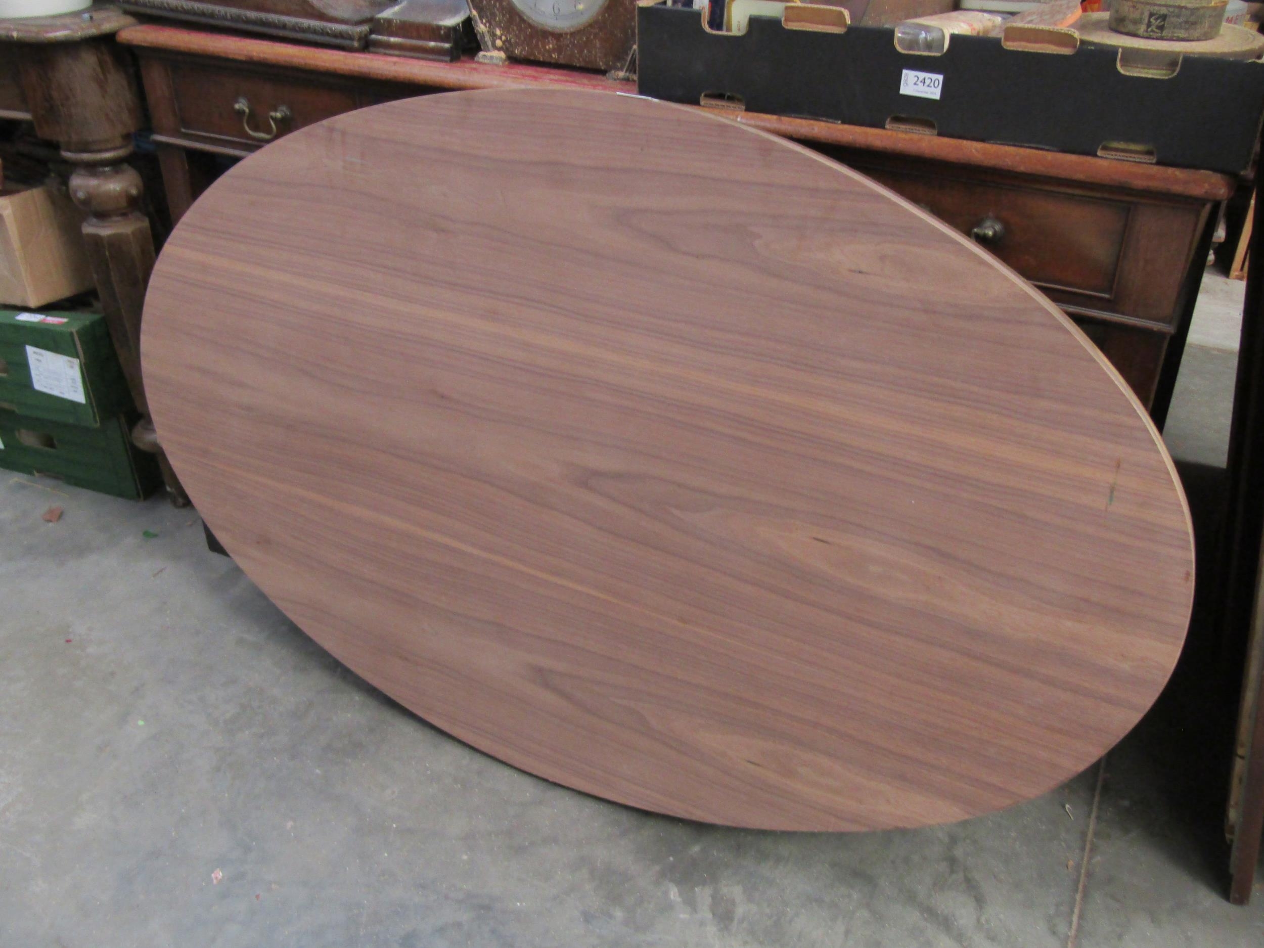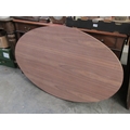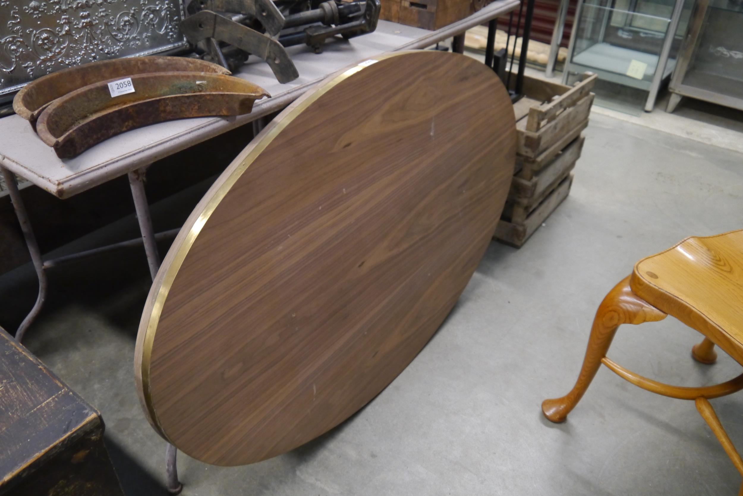 An oval table top with brass rim
