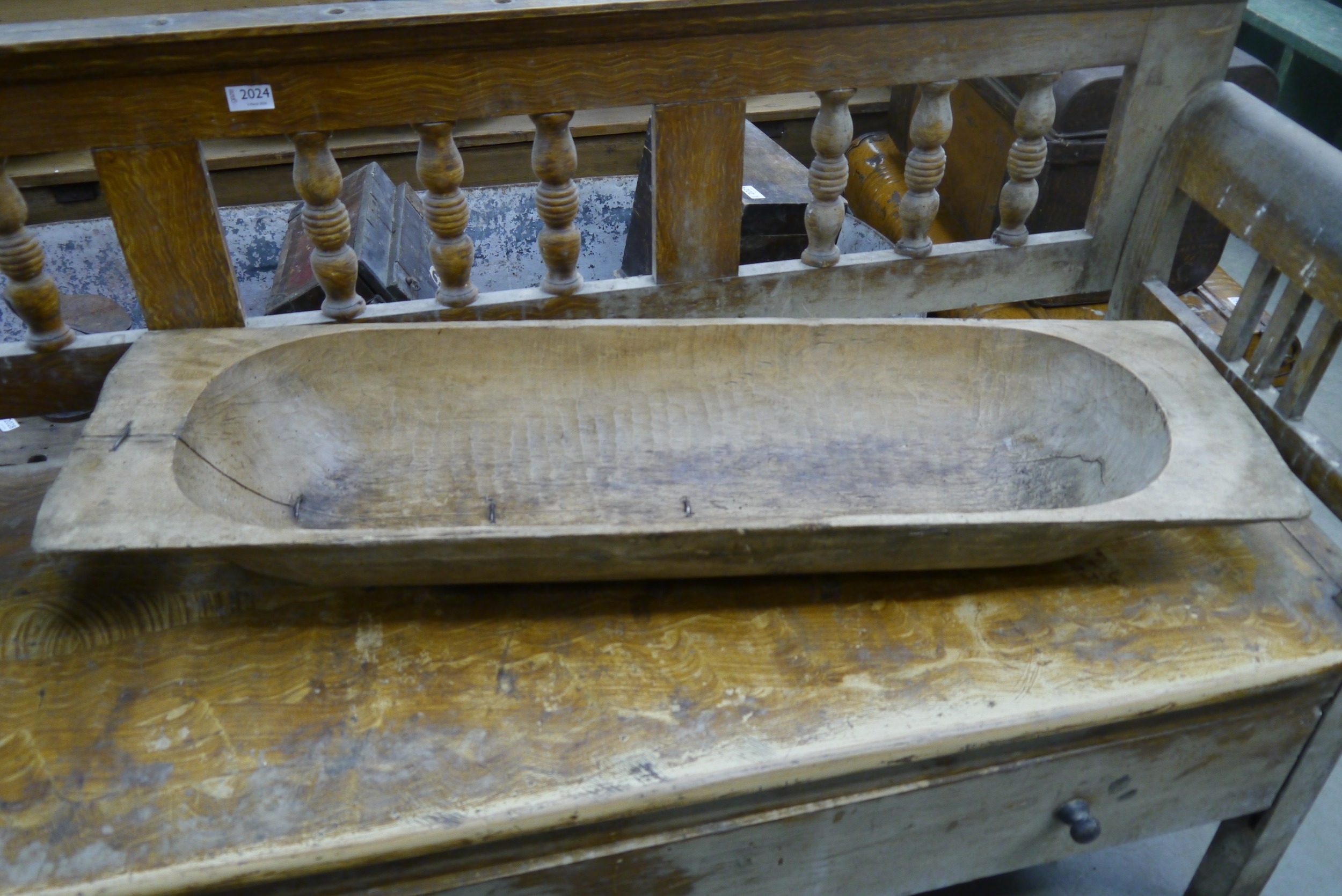 A Dough trough with staple repairs
