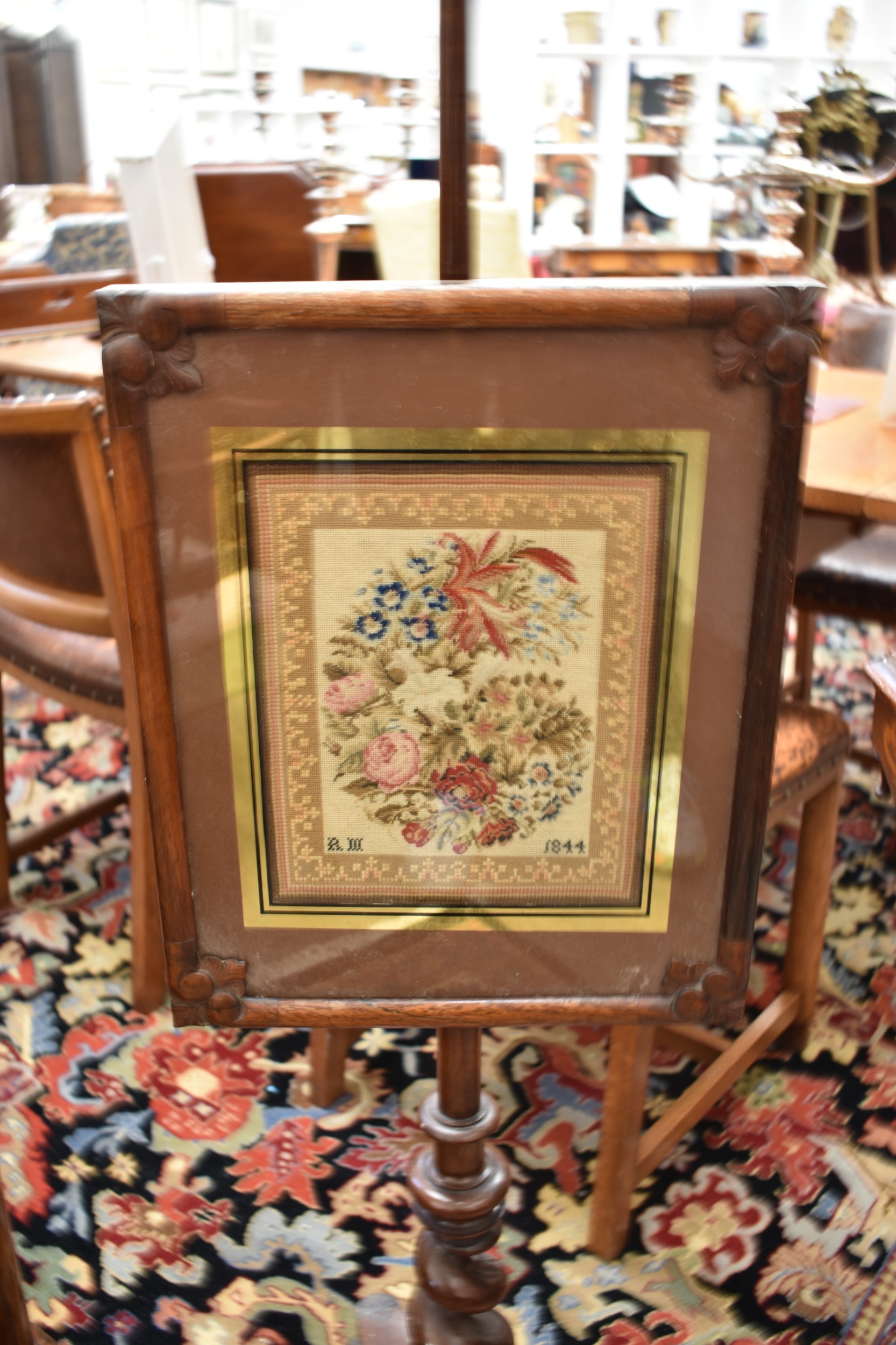 A 19th Century rosewood pole screen, 142cm tall