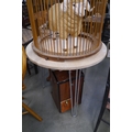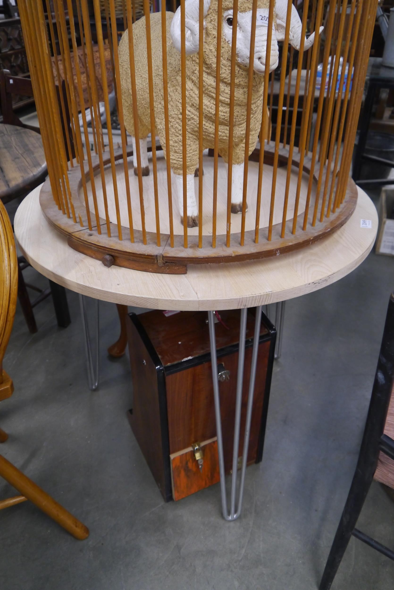 An ash circular table on hairpin legs