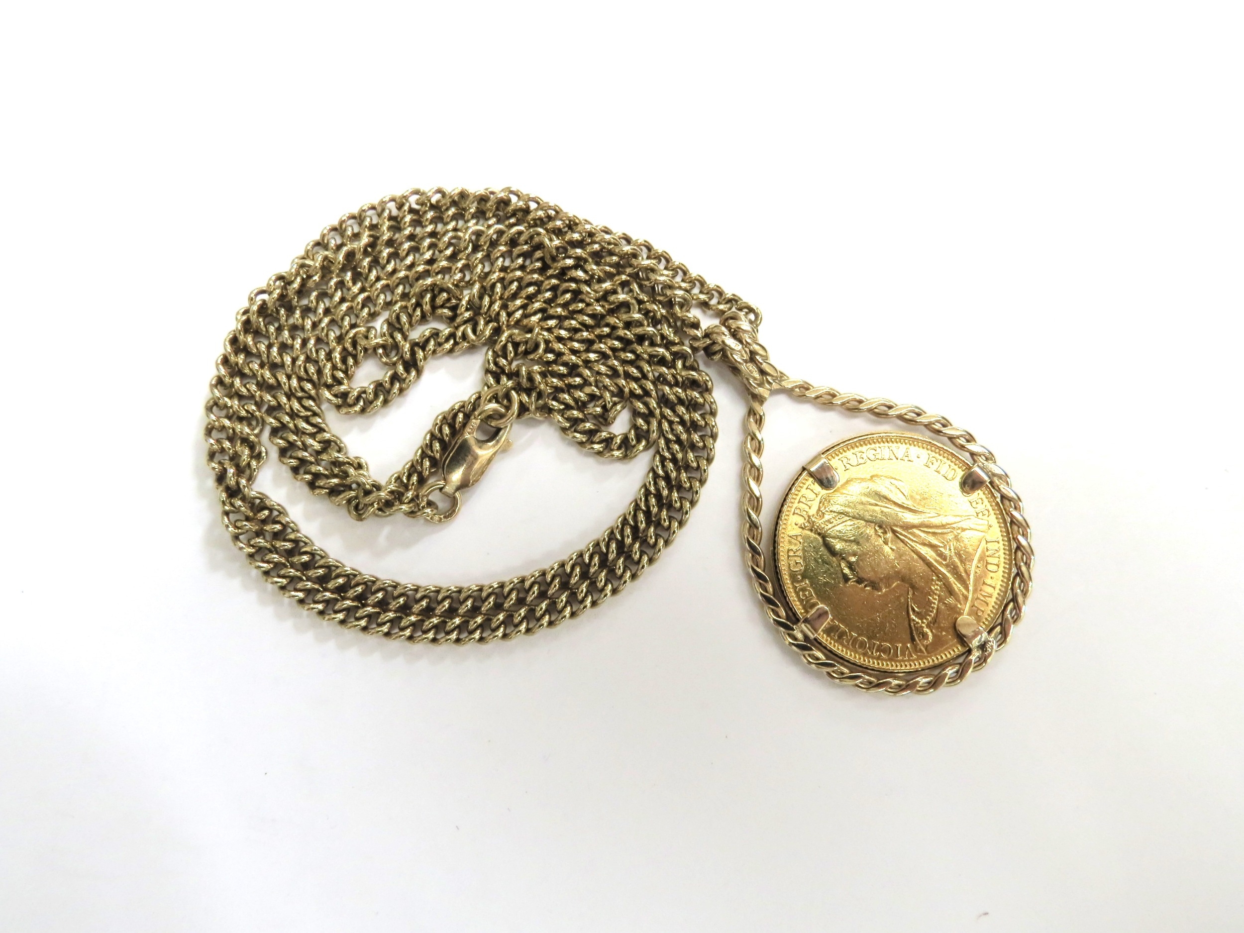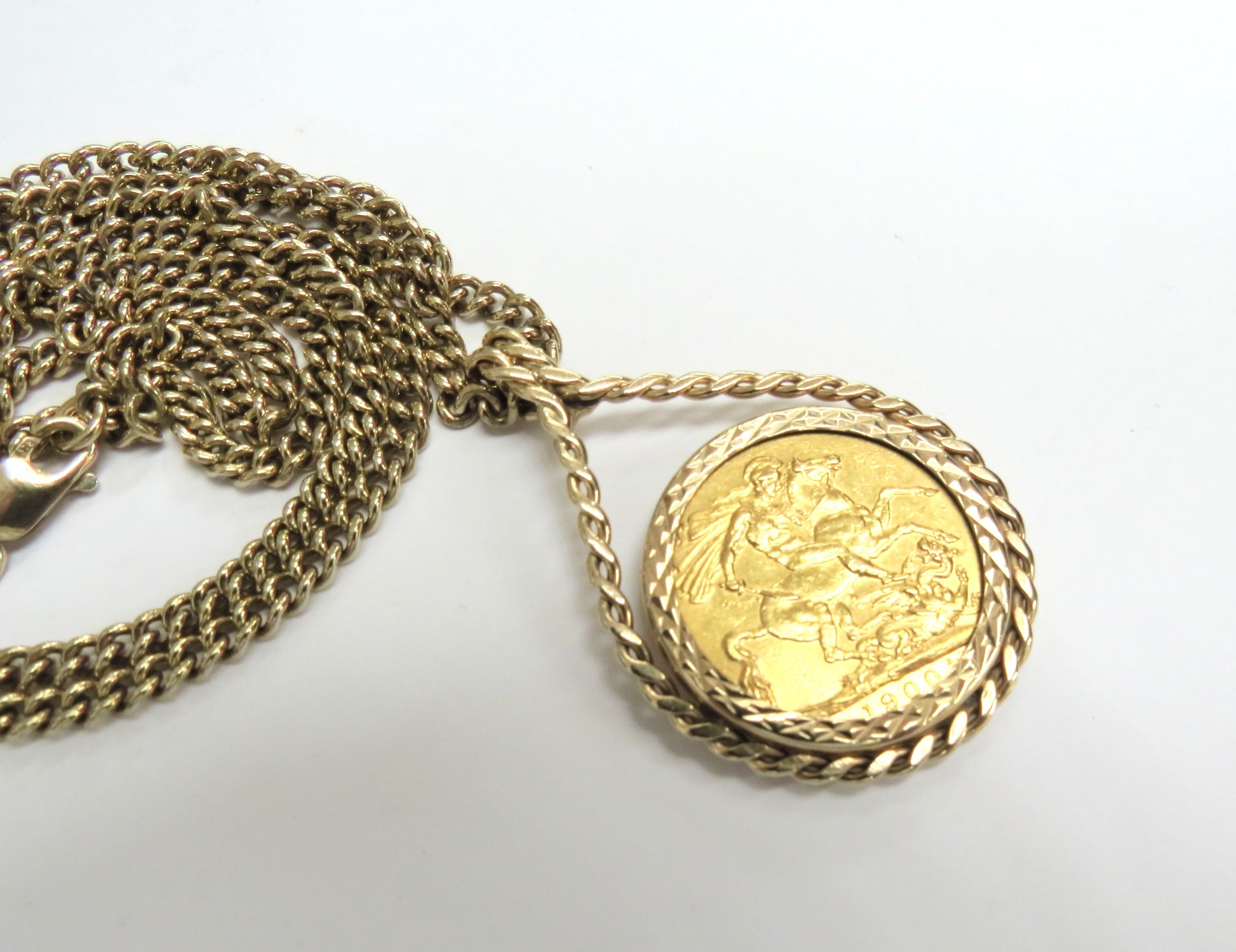 A 1900 gold sovereign on a 9ct gold chain, 60cm long, 24.2g ...