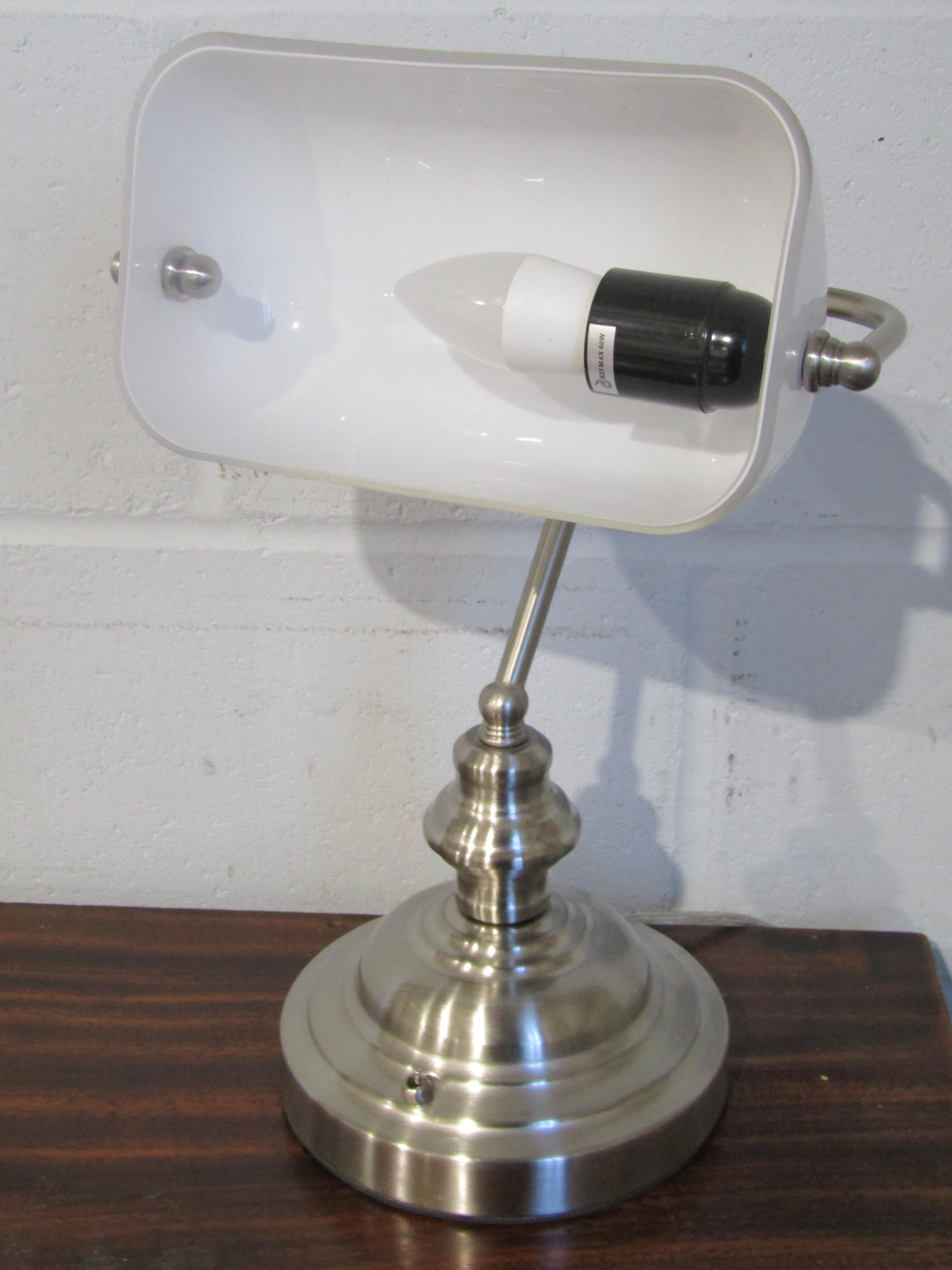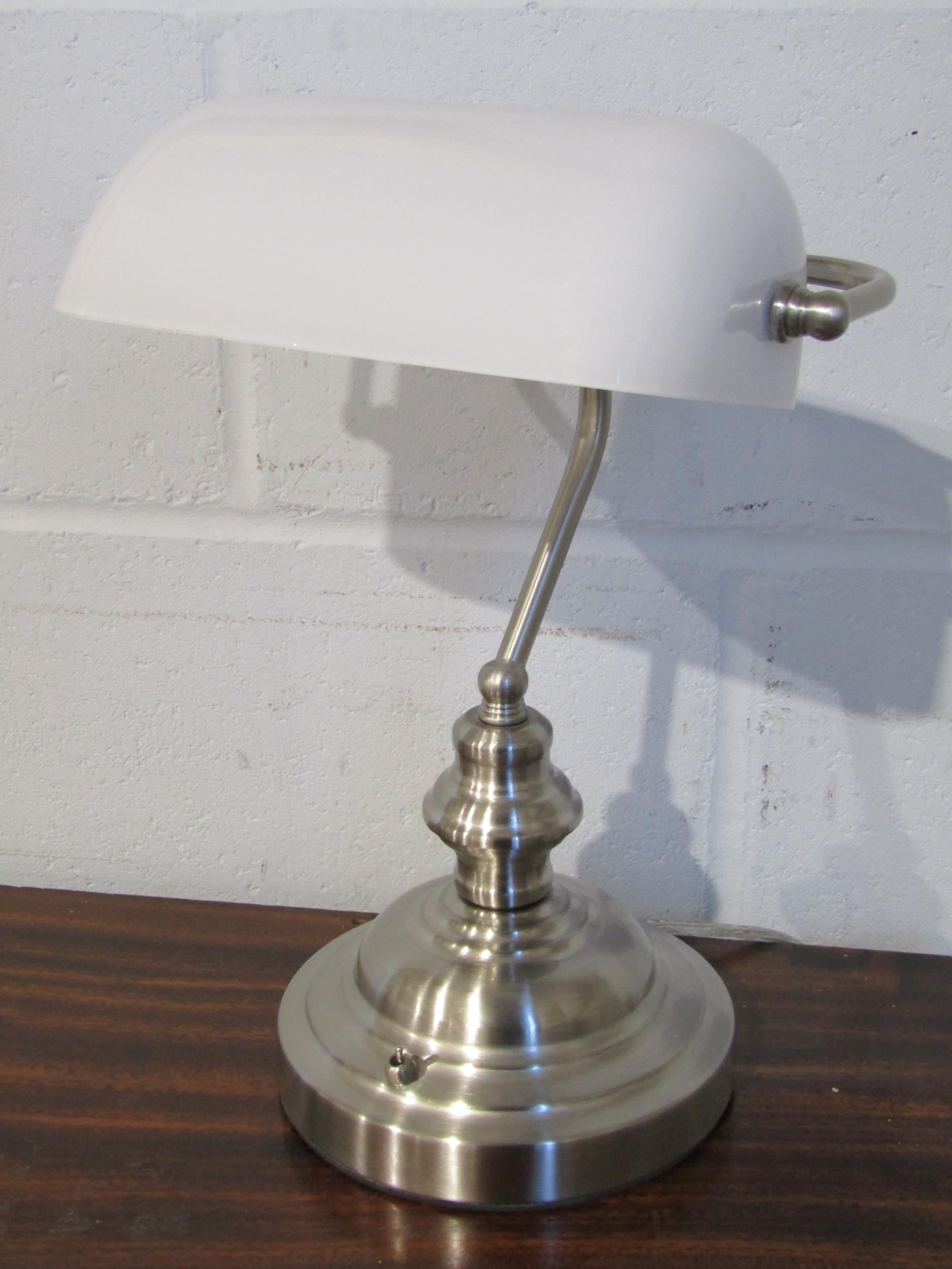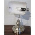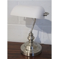 A modern banker's lamp with glass shade
