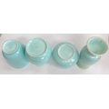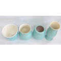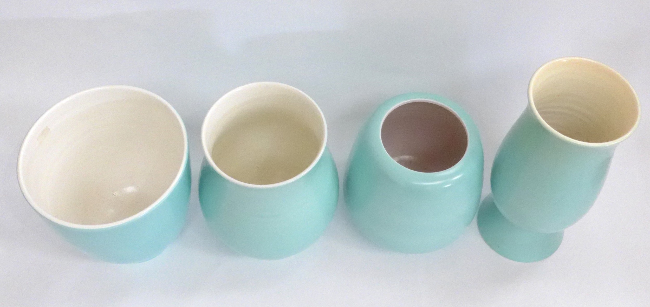 Four Poole Freeform vases designed by Alfred Read & Guy Sydenham, various shapes including 687,704,718, Sky Blue glazes. Various backstamp marks. Tallest 27cm high