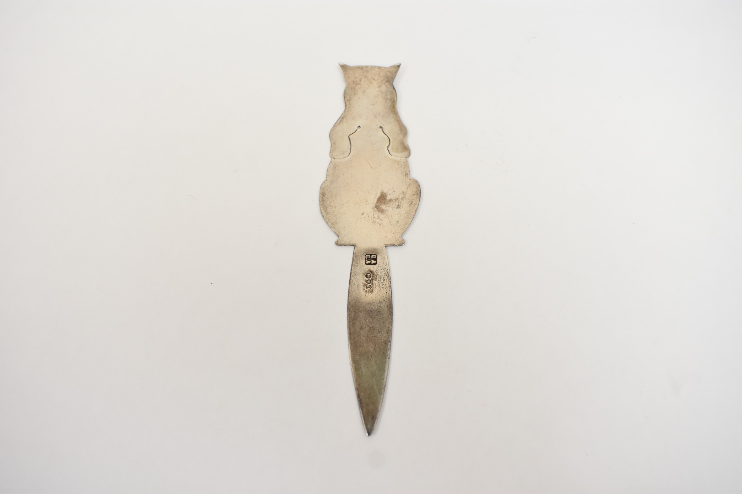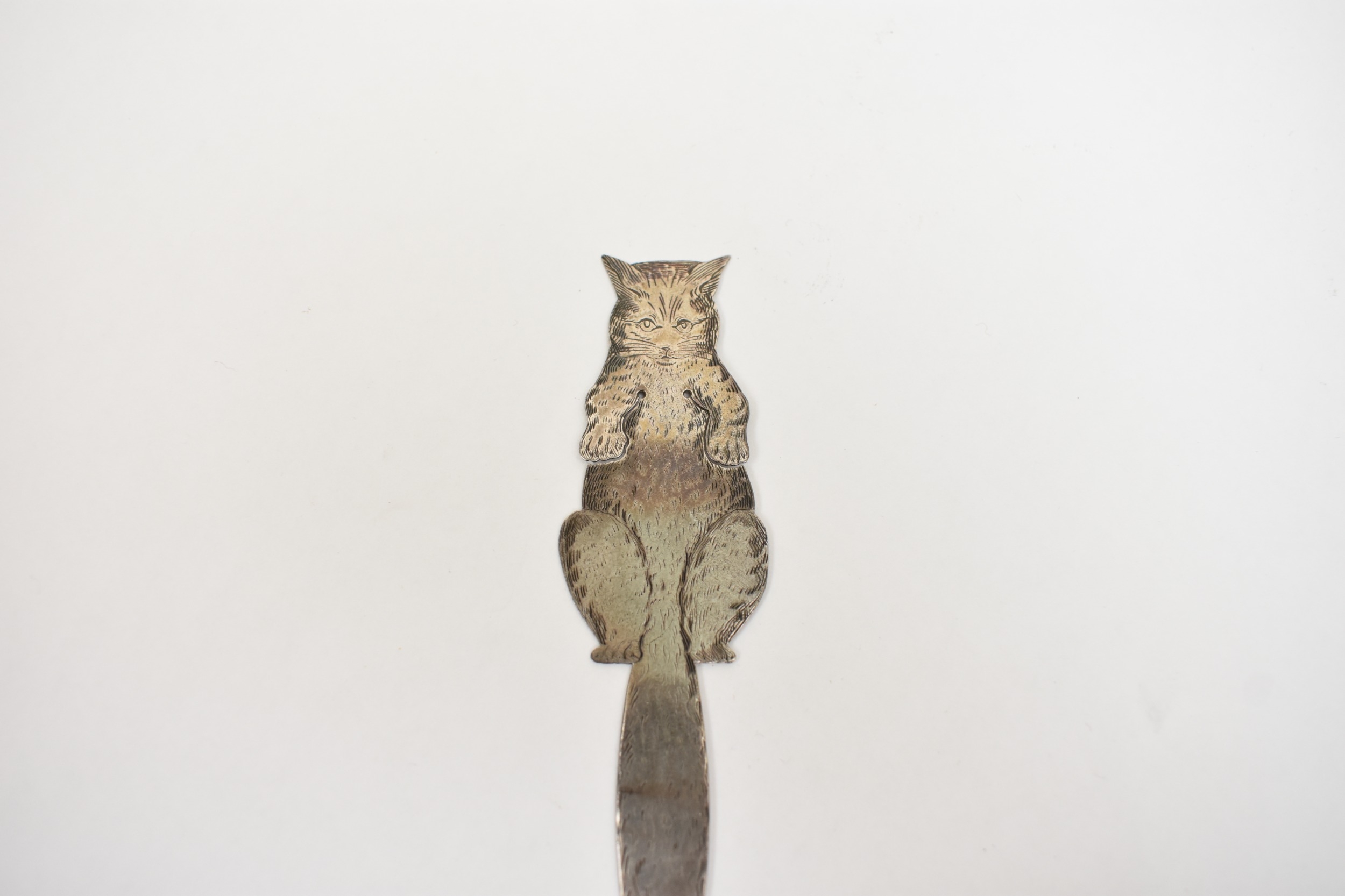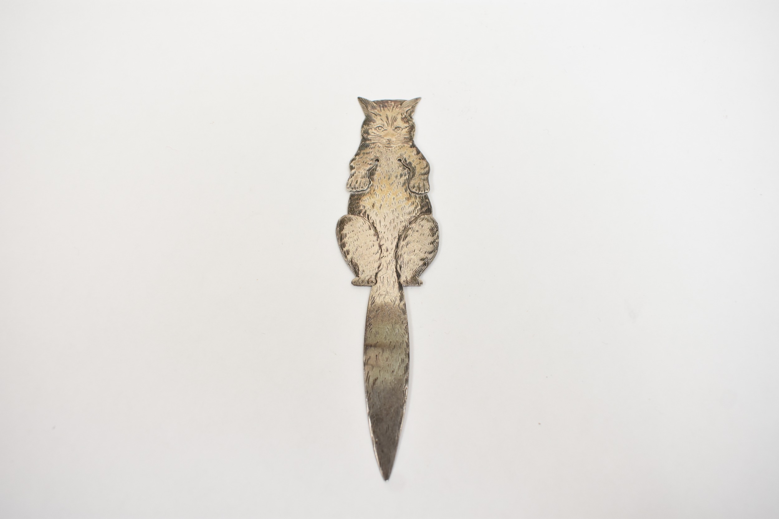 A Charles Asprey & Charles Asprey Junior silver bookmark in the form of a cat, London 1889, 11cm long, 7.5g