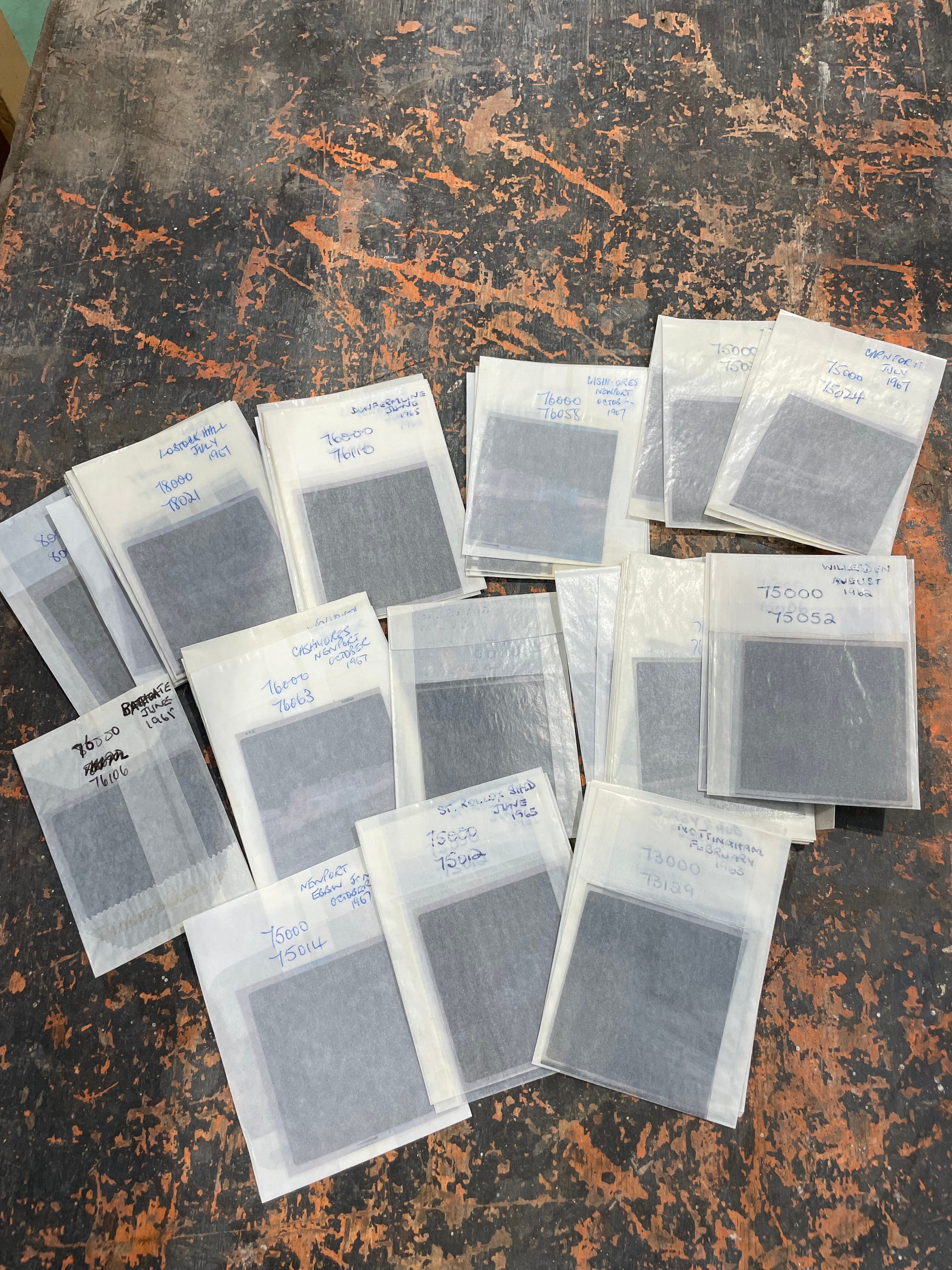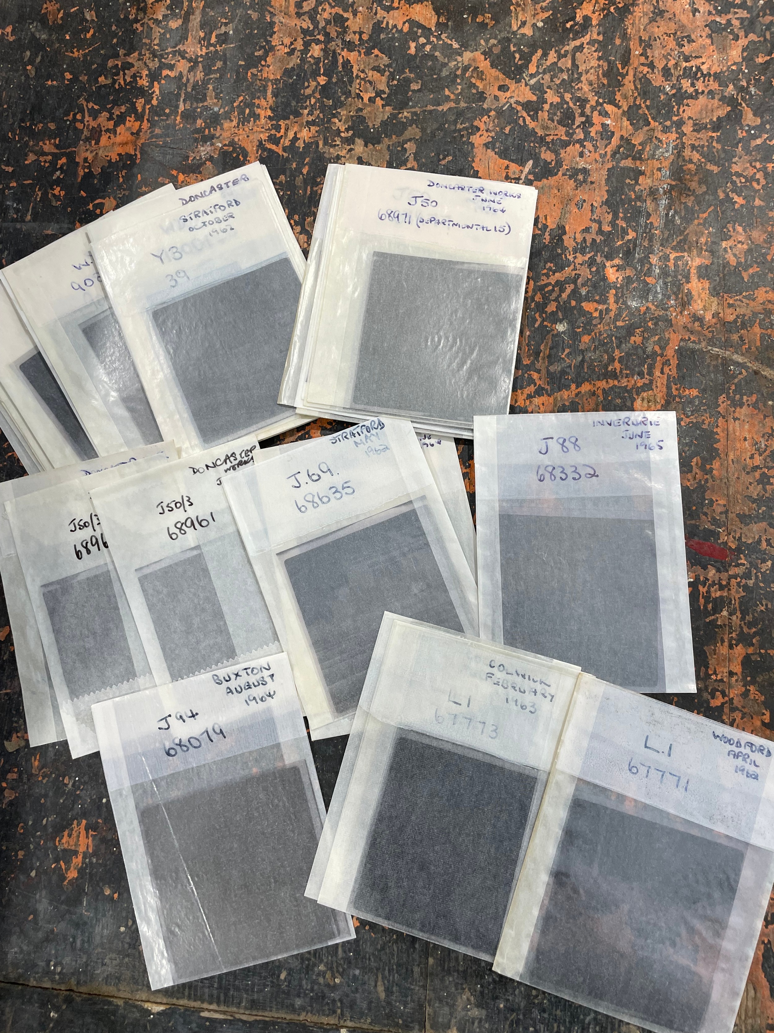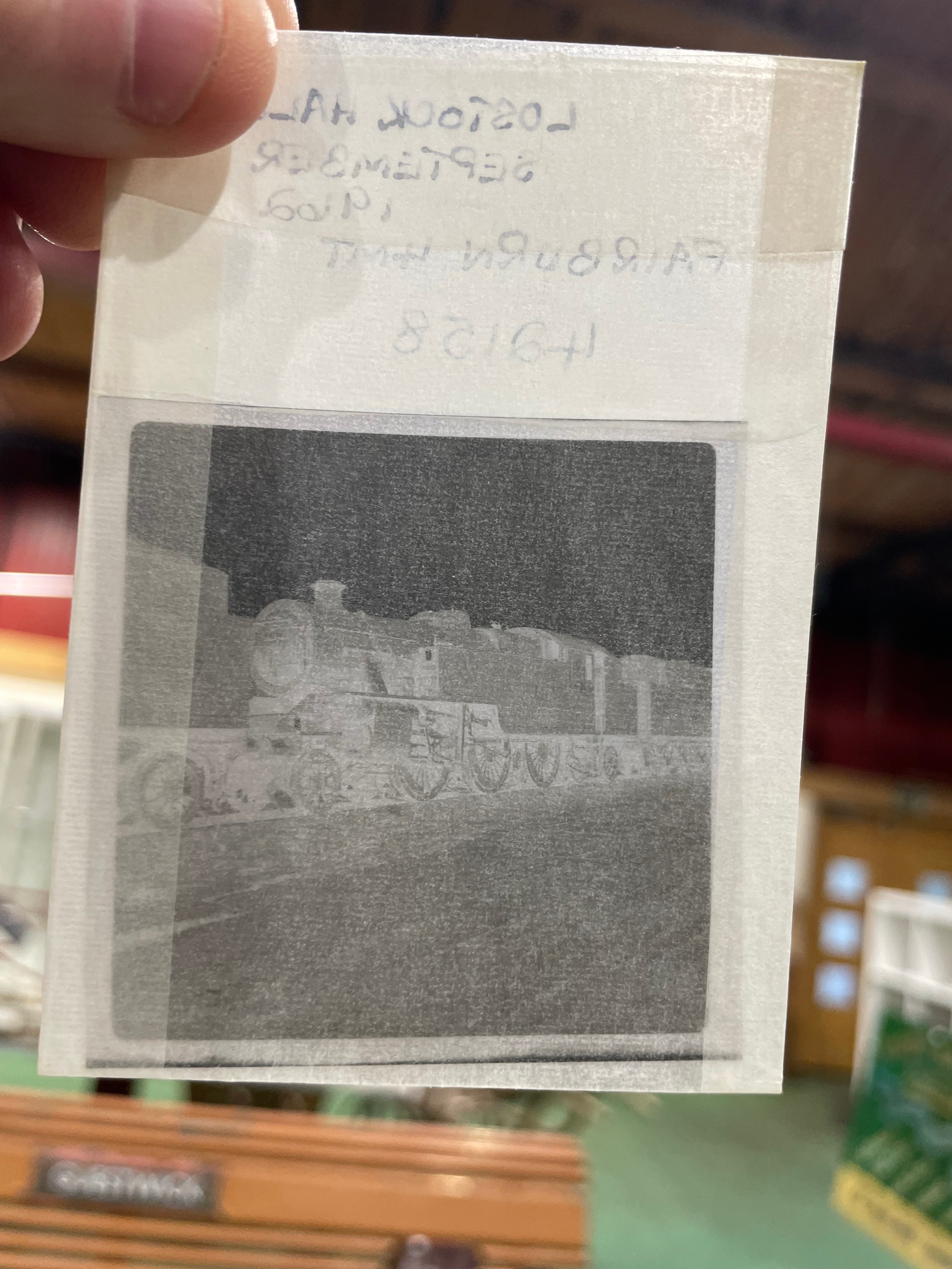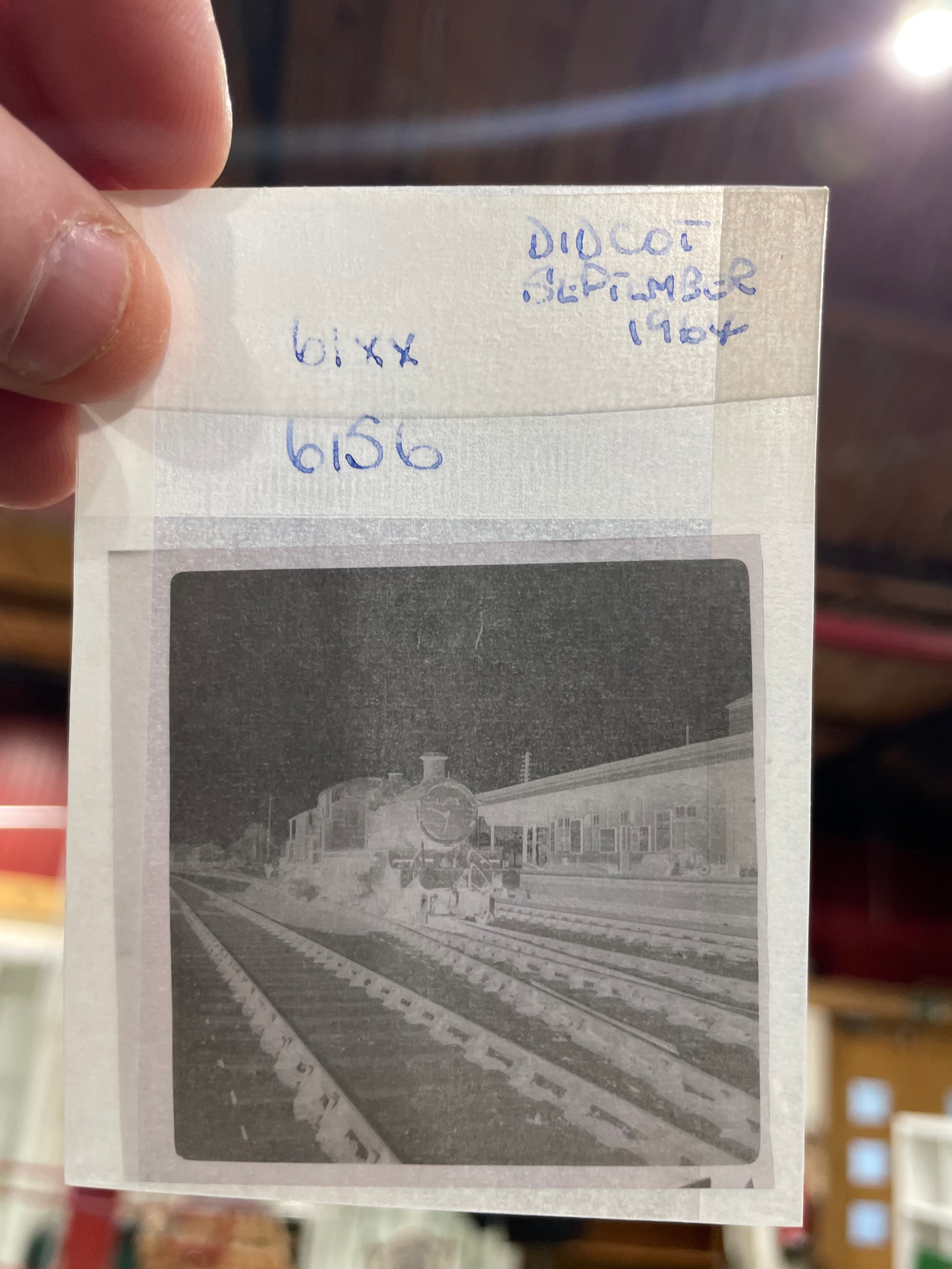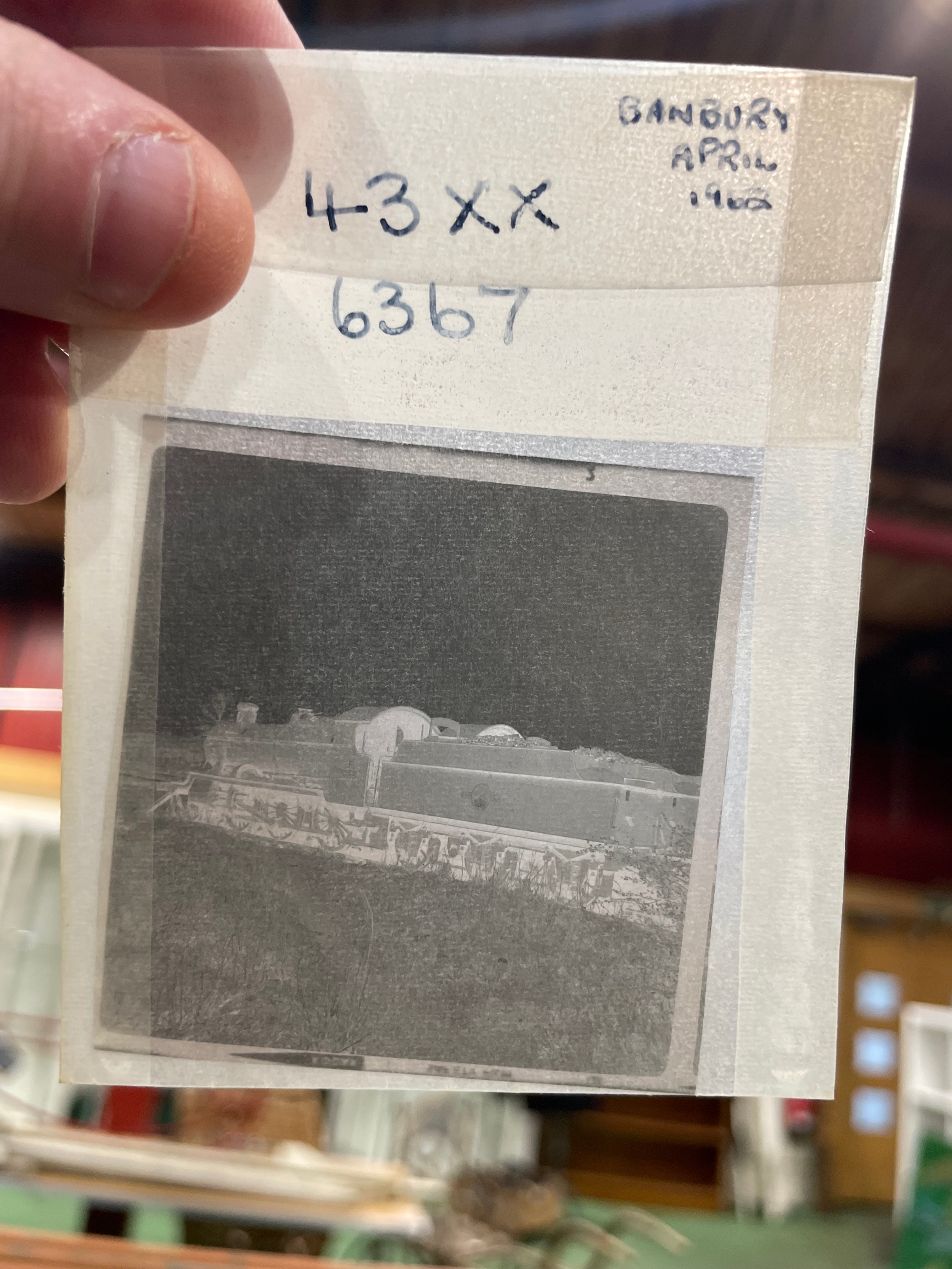 A box containing several hundred 60 x 60mm black and white negatives relating to the railways including loco sheds, steam locomotives, UK based, mainly 1960s, mostly named and locations