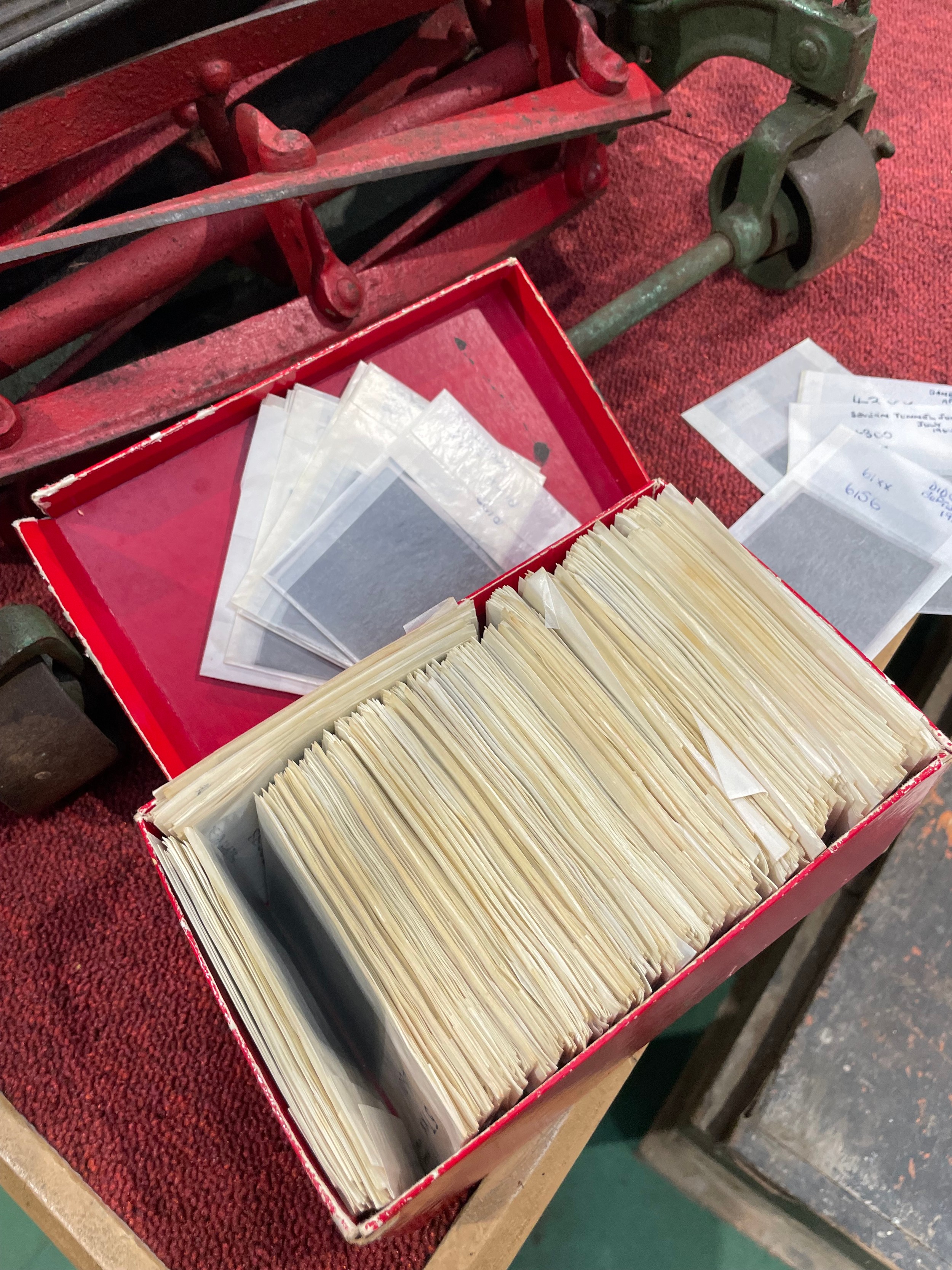 A box containing several hundred 60 x 60mm black and white n...