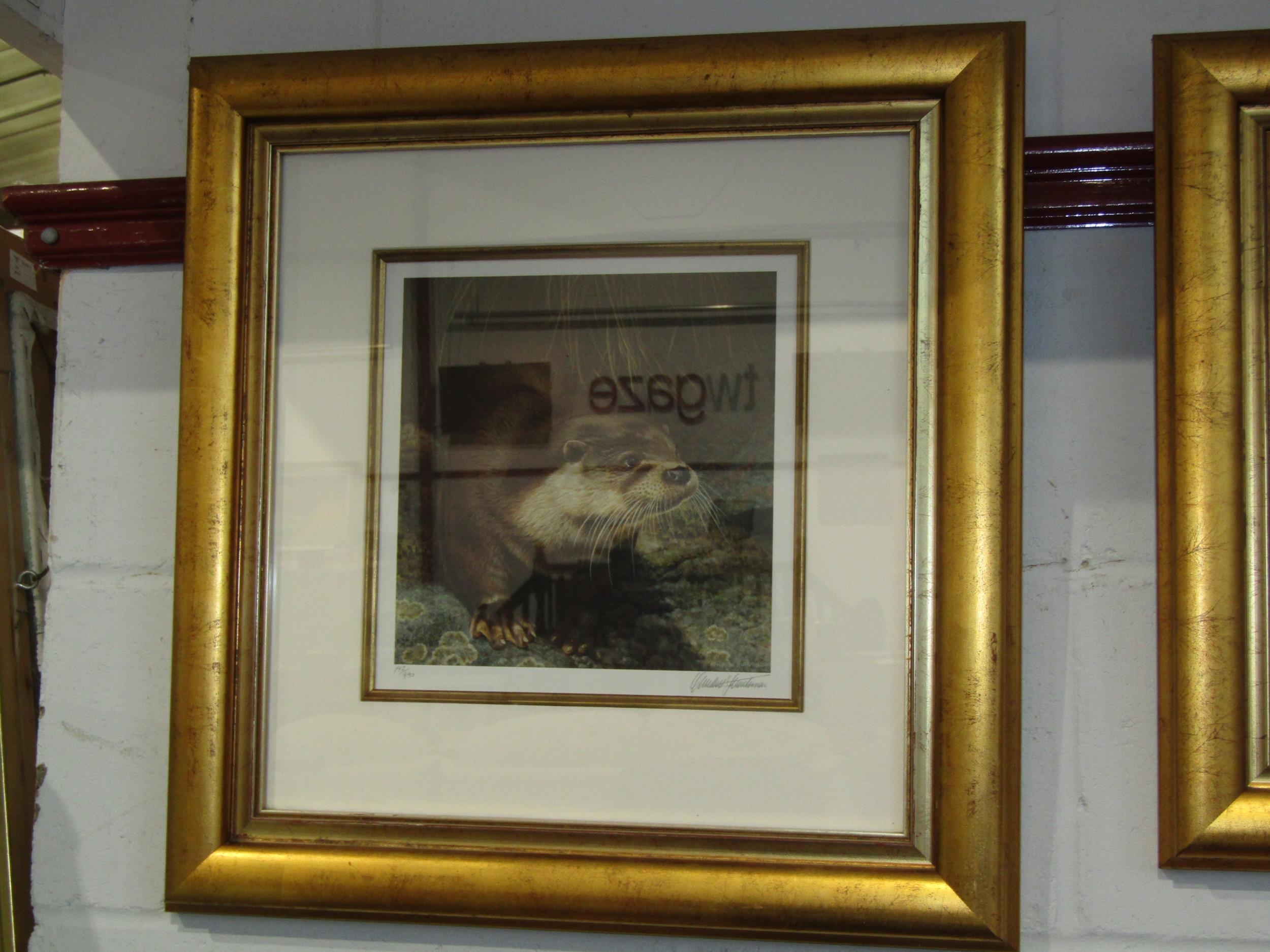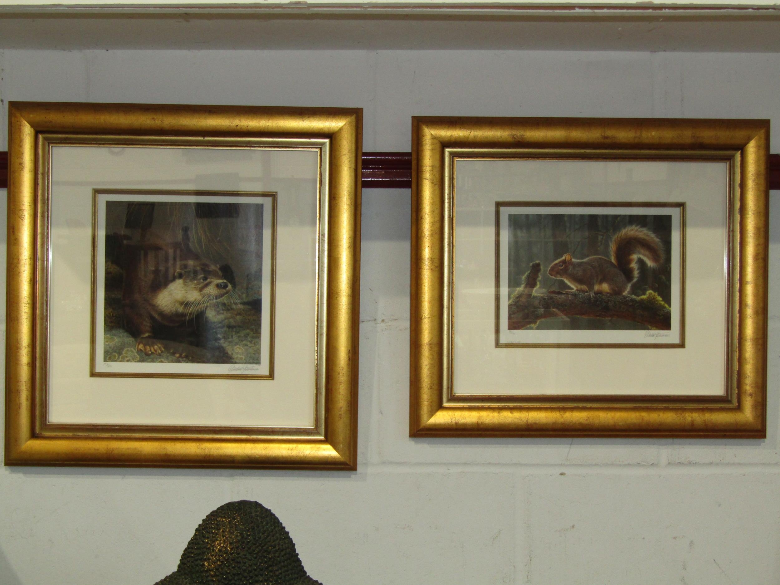 ANDREW HUTCHINSON (1961): Three limited edition prints, Otter 192/490, Rabbit 205/490 and Squirrel 84/490, framed and glazed, various sizes