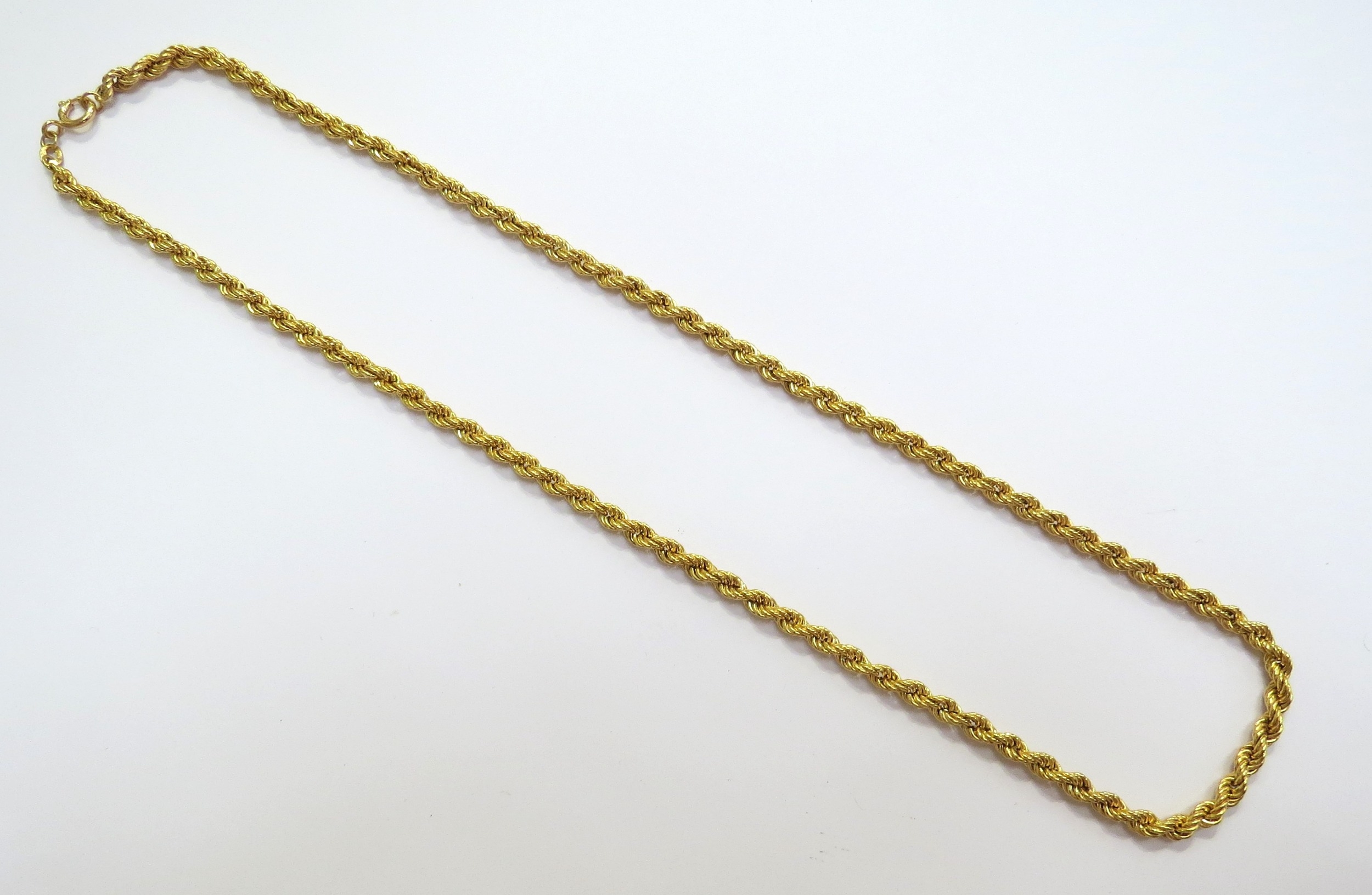 A 9ct gold rope twist necklace, 50cm long, 8g