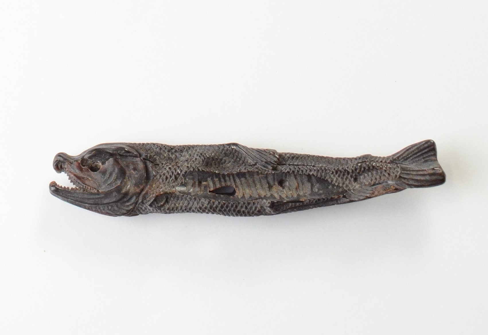 A Japanese himono (dessicated fish) netsuke9.4cm wide x 2cm deepProvenanceDorothy Ann Stevens no. 231Glendining & Co 14/10/53 lot 77LiteratureNetsuke Panorama no. 144 page 30