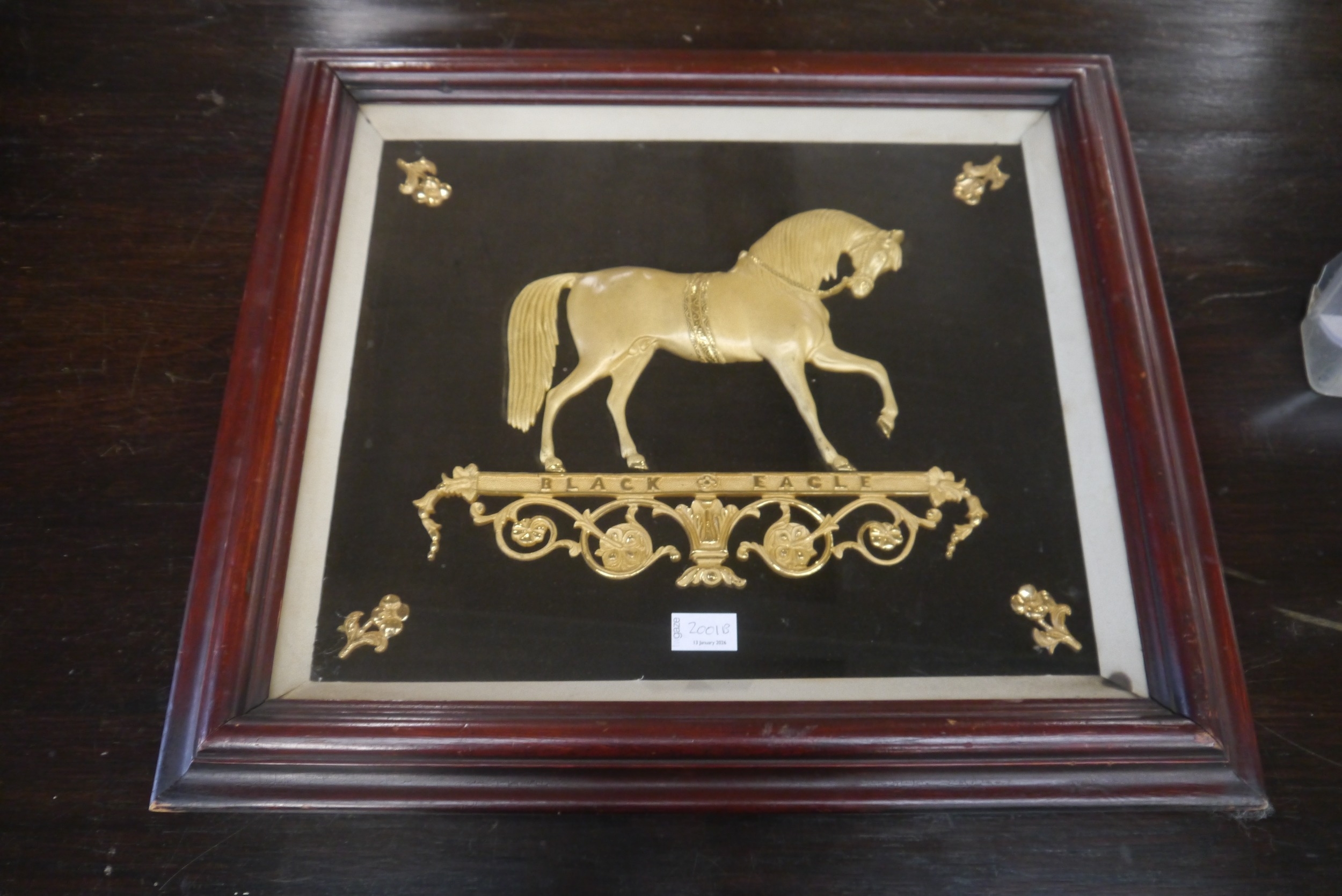 A 19th Century gilt brass relief of a Racing Horse "Black Eagle"
