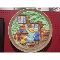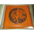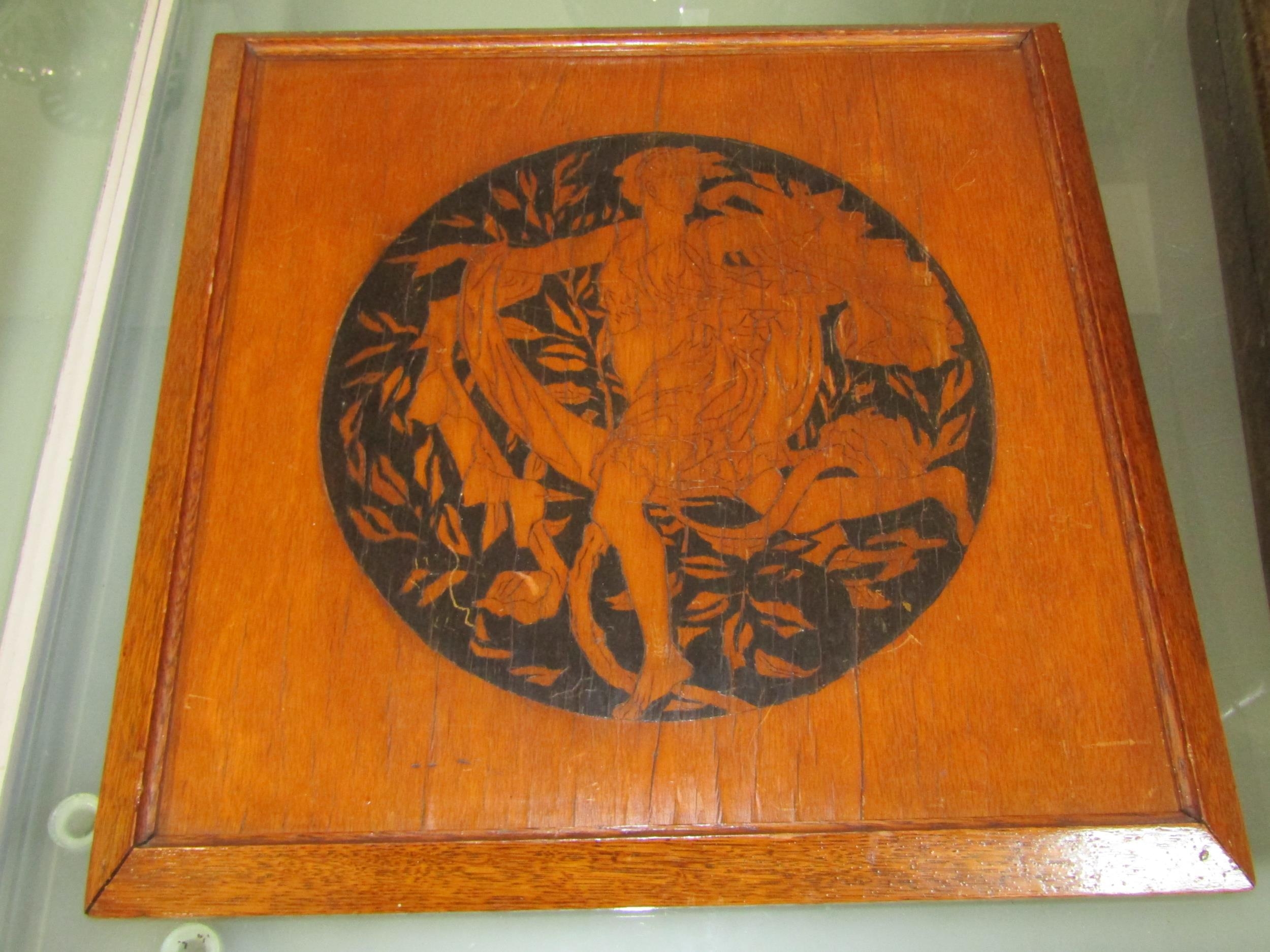 An Edwardian marquetry panel with classical figure, 31cm x 31cm total