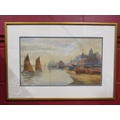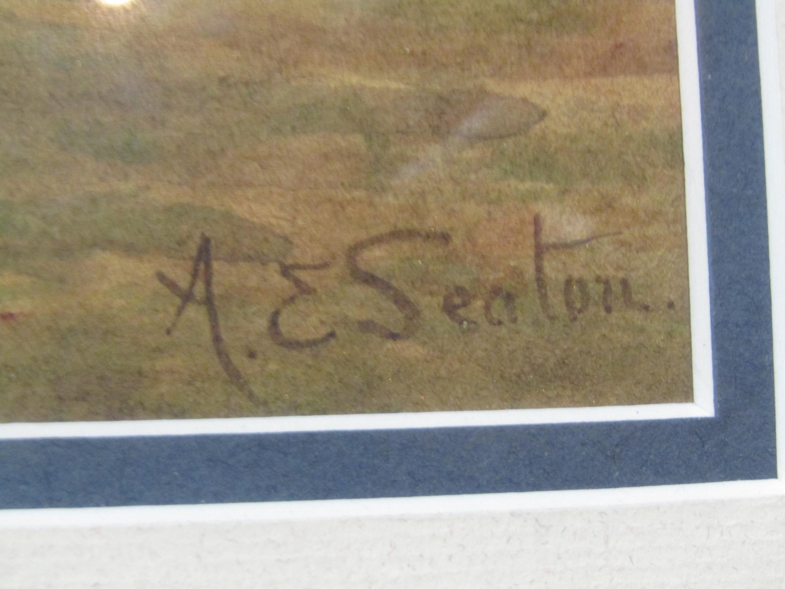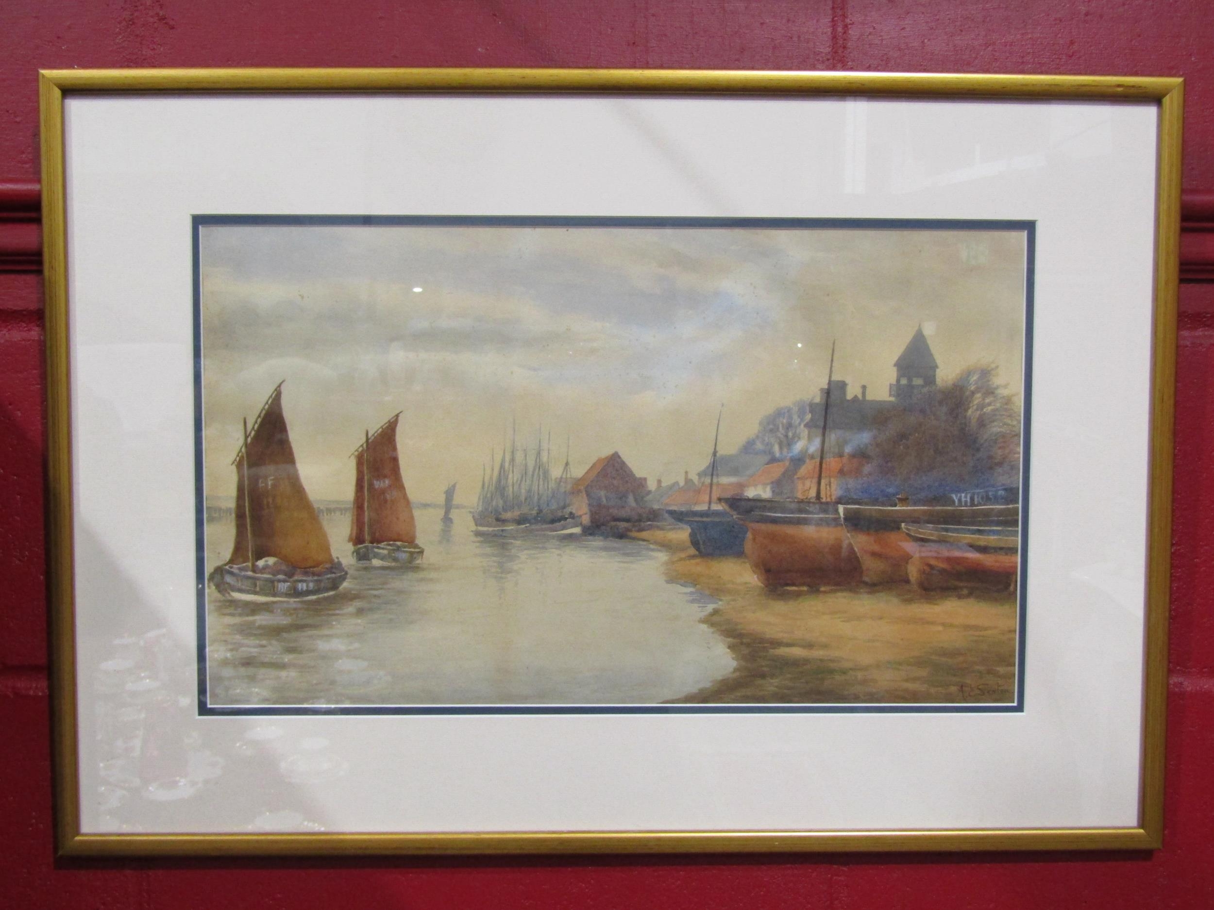 A.E. SEATON (XX-XXI): A watercolour ‘Darby’s Hard, Gorleston’, wherry boats in sail, signed lower-right, framed and glazed, 30cm x 51cm image size