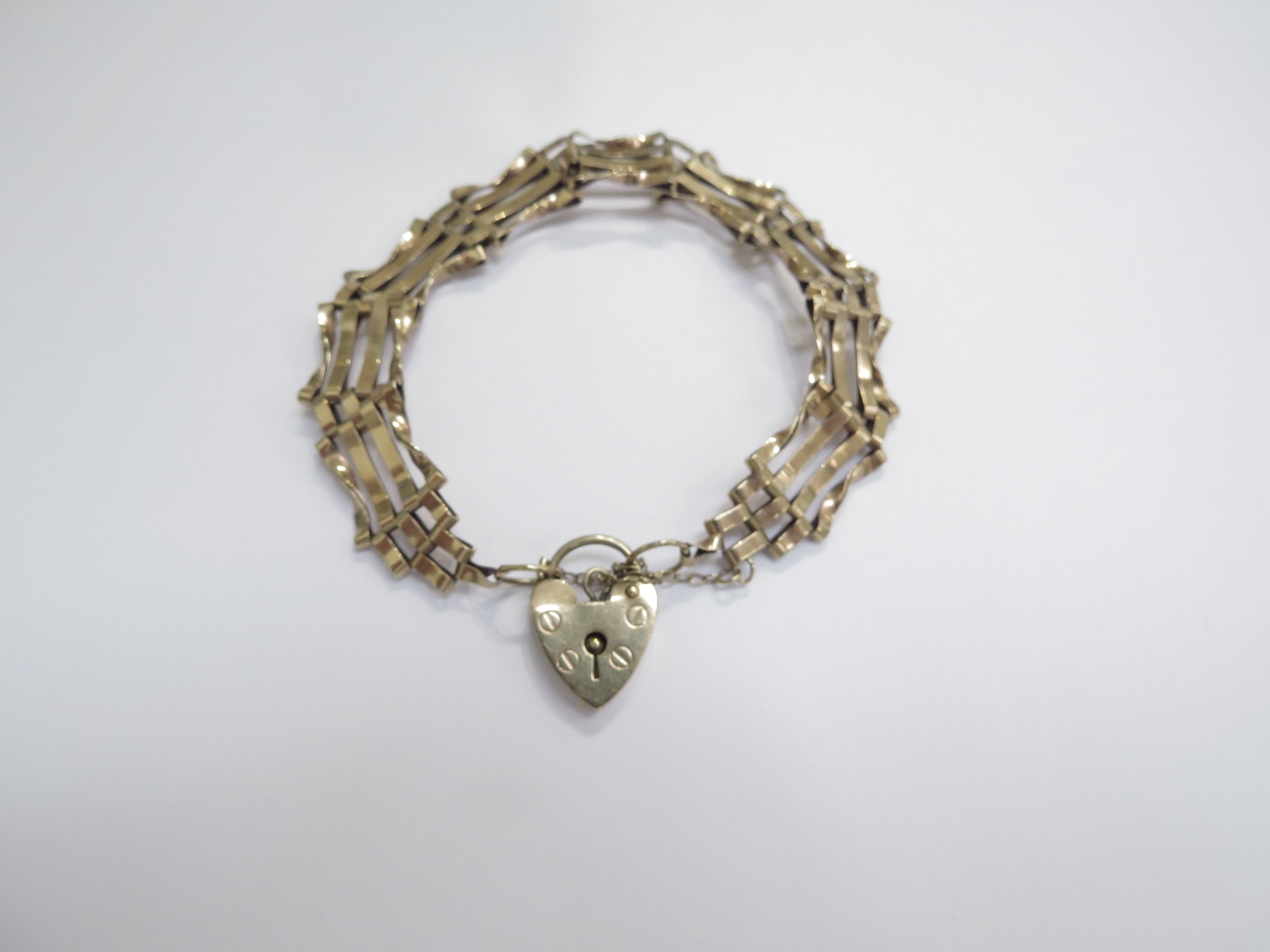 A 9ct gold gate bracelet with padlock clasp, 19cm long, 8.5g