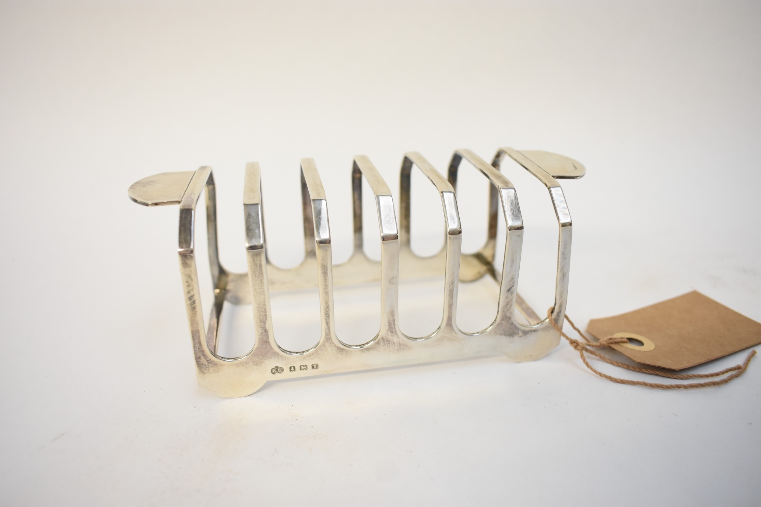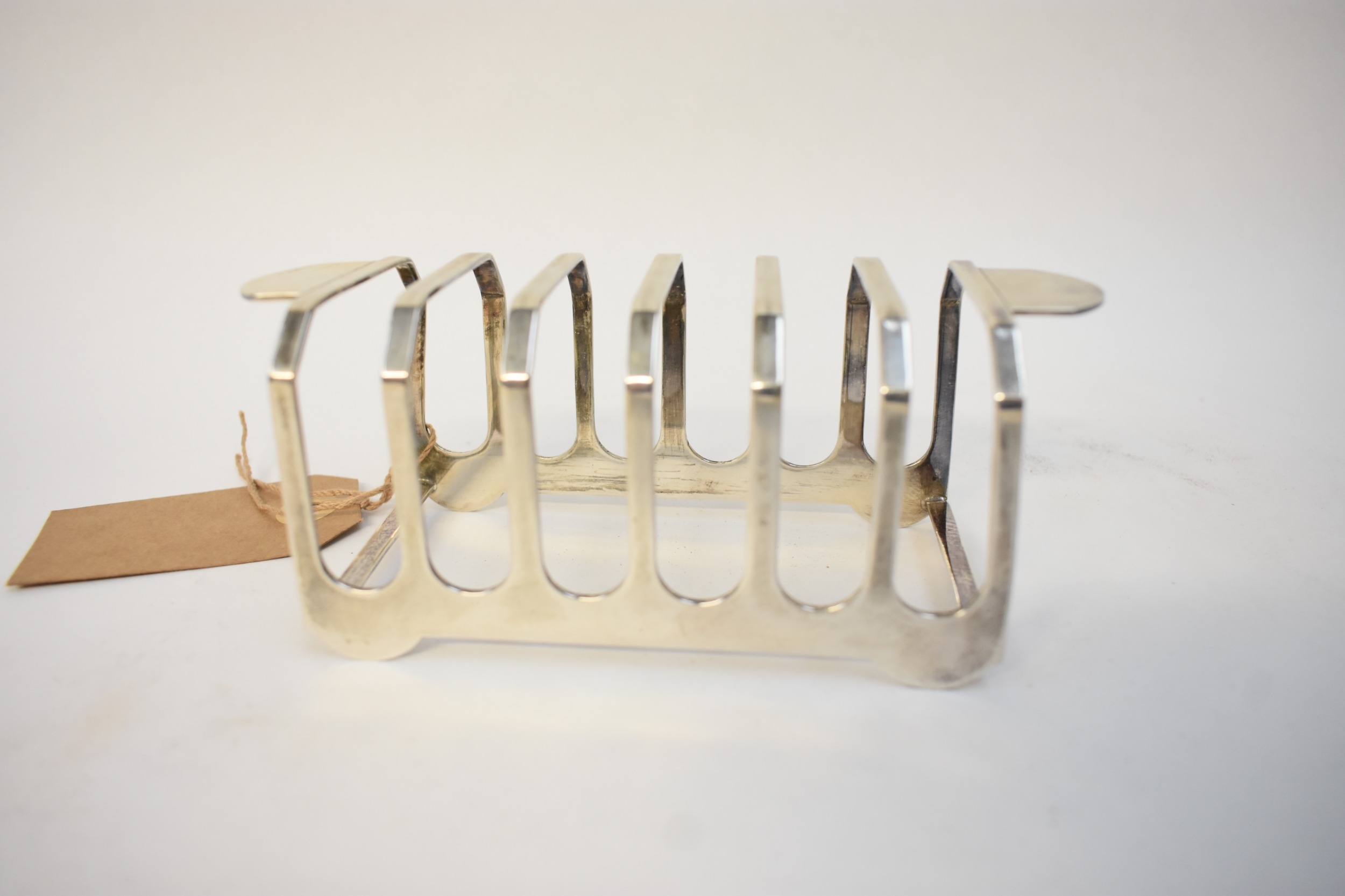 An Elkington & Co seven-bar silver toast rack, Birmingham 1948, 15cm long. 140g