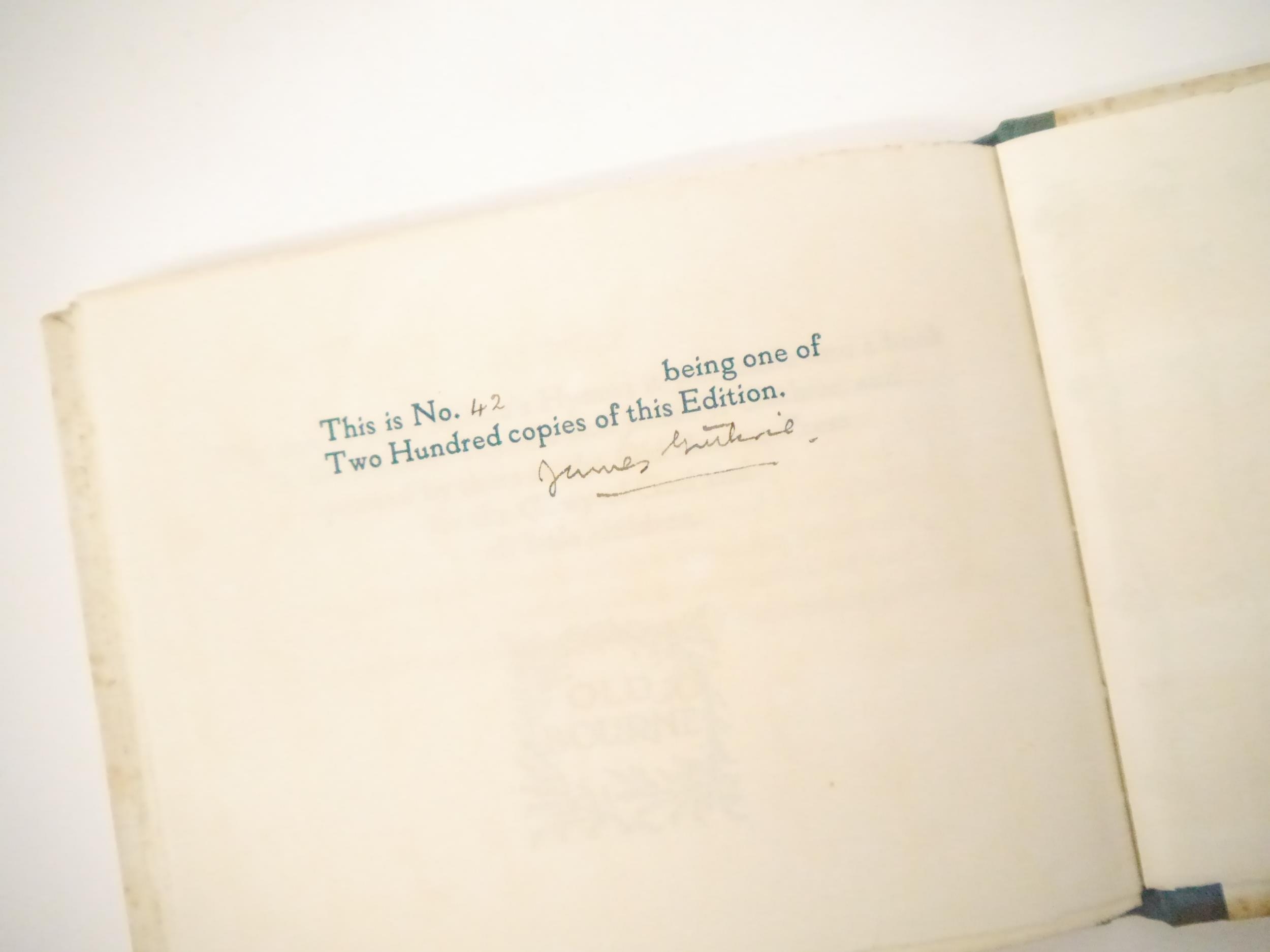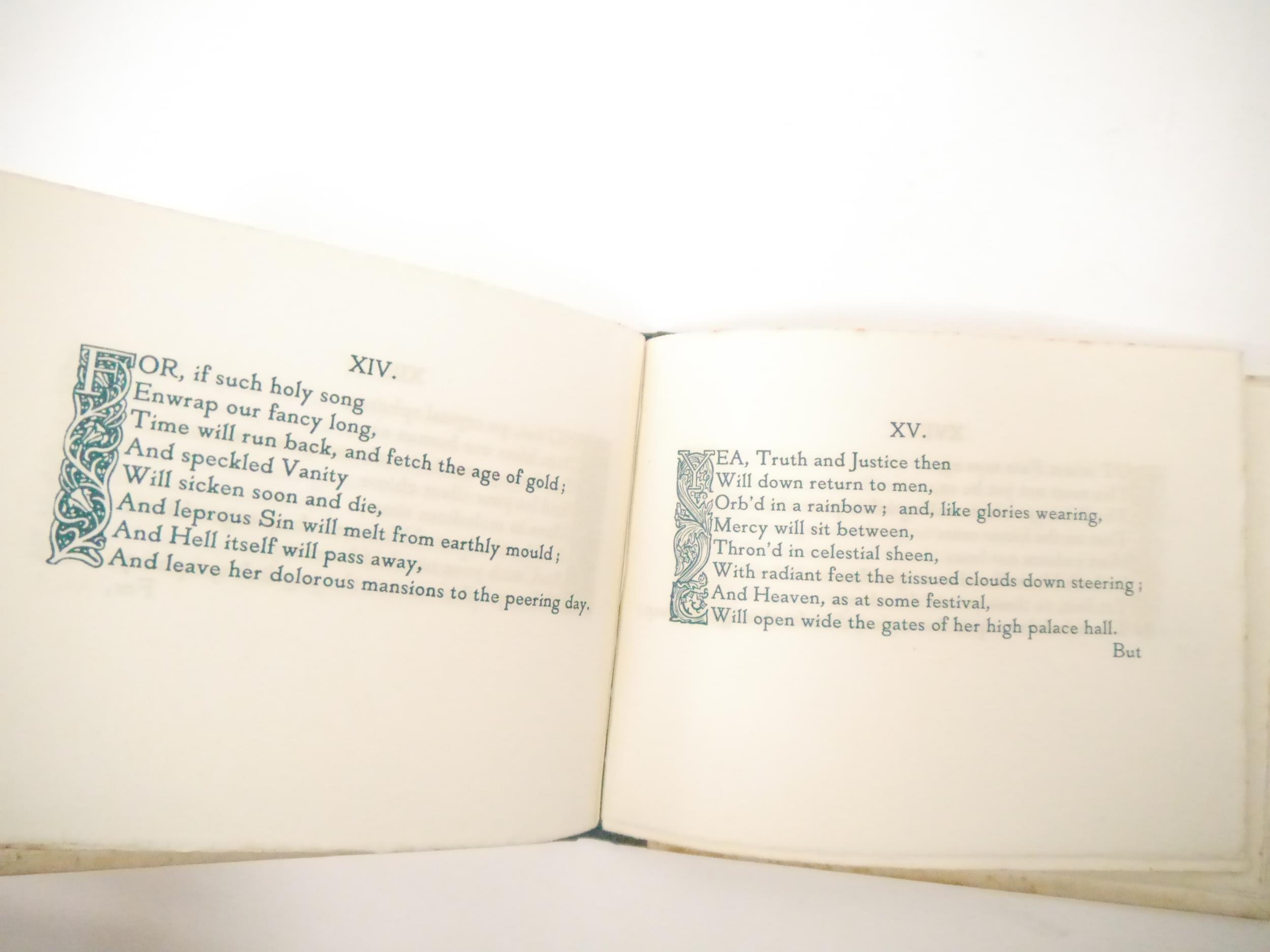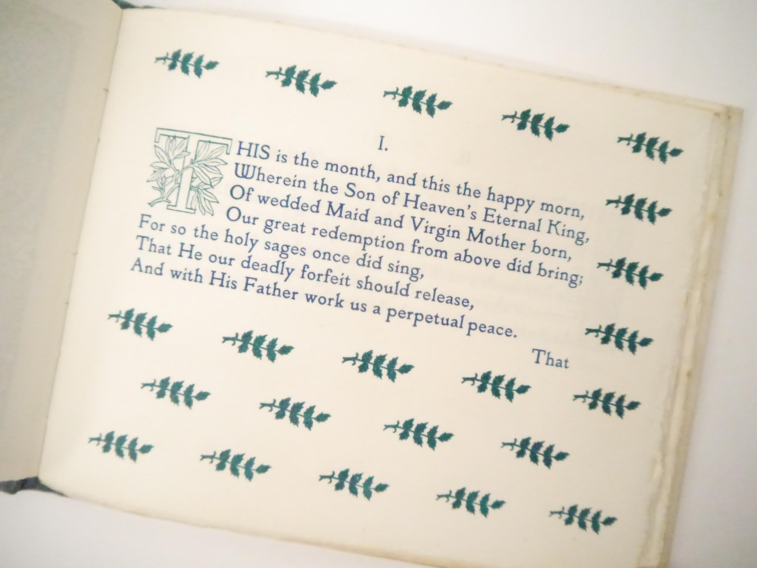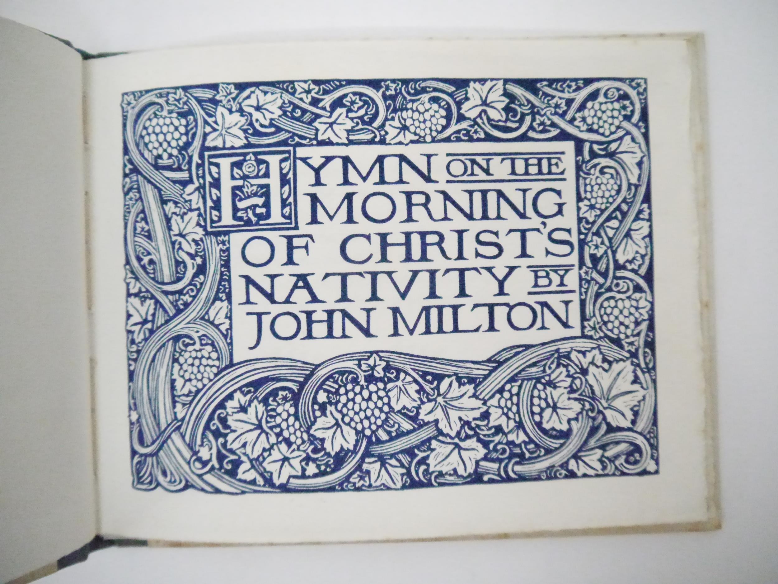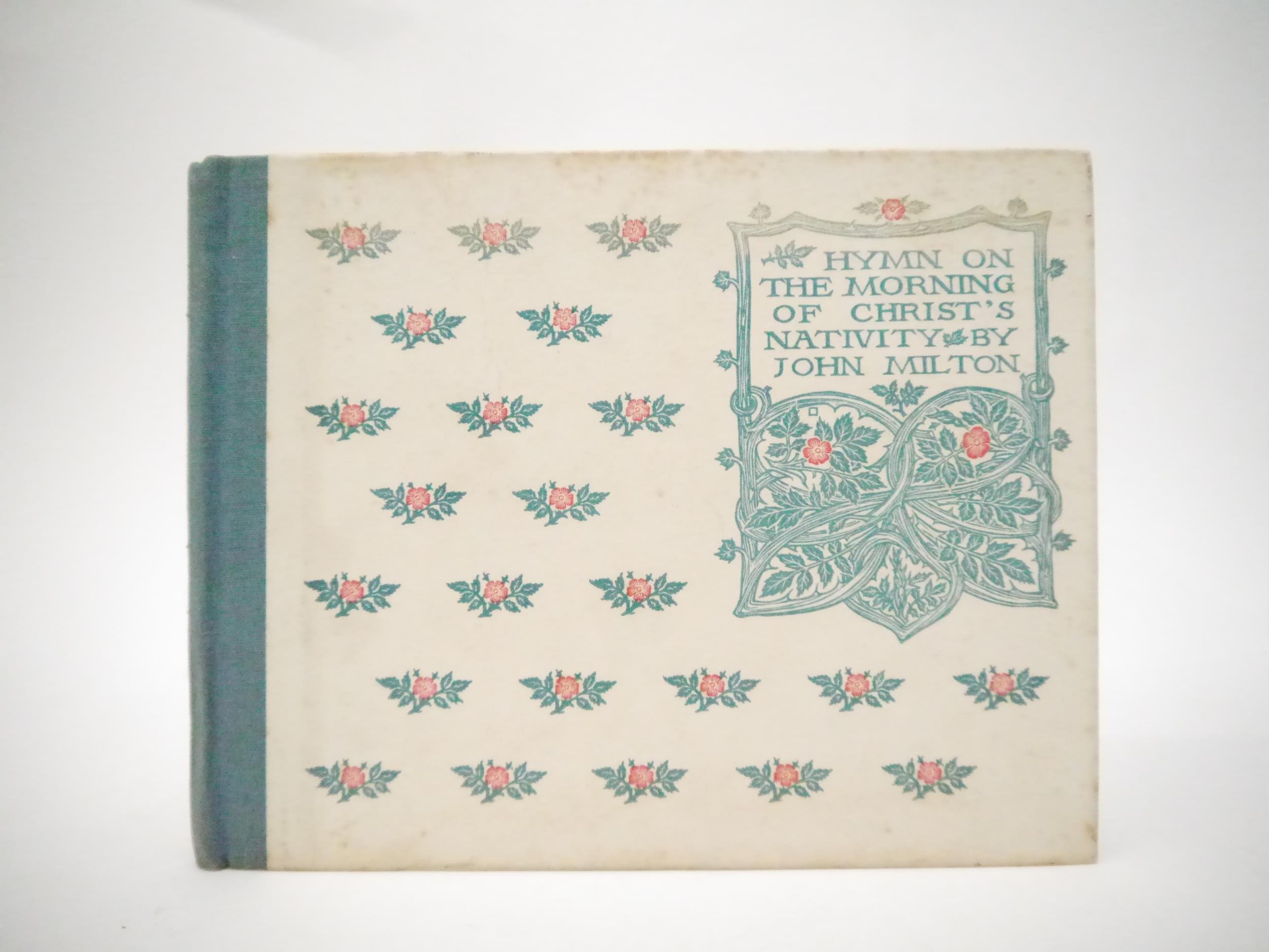 (Old Bourne Press.) James J. Guthrie; John Milton: 'Hymn on the Morning of Christ's Nativity.', London, Old Bourne Press, [1903], limited edition, number 42 of 200 copies only, signed by James Guthrie to limitation page, wood-engraved decorative title, borders, initials and endpapers designed by James Guthrie and engraved by Reginald B. Lodge and Clemence Housman, oblong 8vo (14.5 x 18cm), original quarter cloth over patterned paper covered boards. Washington Herbert Broome was a notable figure in the arts and crafts movement in the late 19th/early 20th Century. Broome worked with William Morris at the Kelmscott Press before establishing The Old Bourne Press with James Guthrie in 1902 at Holborn. In 1907 Broome built the Arts and Crafts house "Avalon" in Bushey, which is now a listed historic building. His daughter Myrtle Broome created painted panels and decorations throughout the house. She is also mentioned as being a designer and a craft worker, who designed for Liberty, and was an Egyptologist and artist