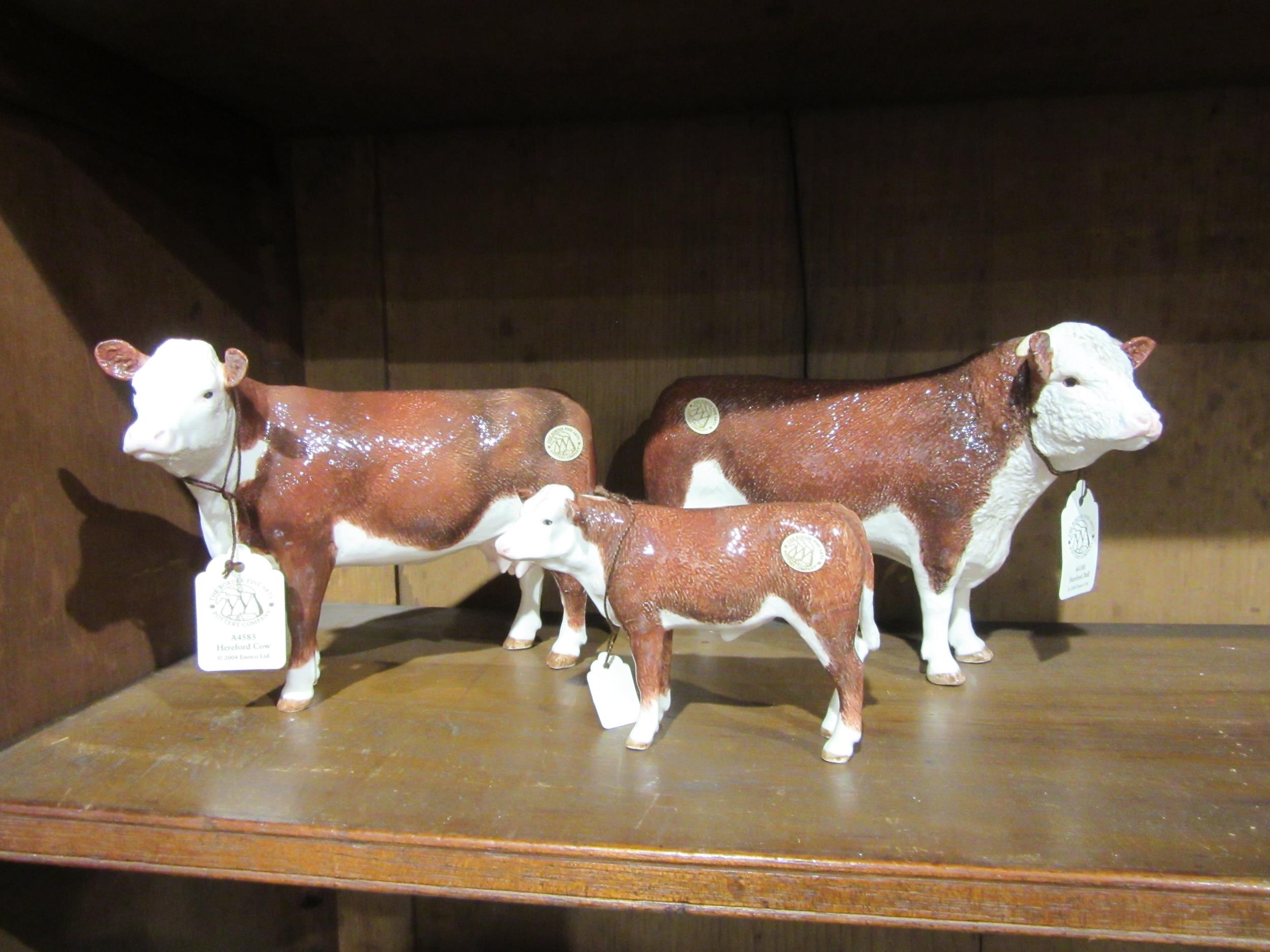 A Border Fine Arts Hereford Bull, Hereford Cow and Hereford ...