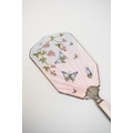 A Charles S. Green & Co Ltd silver Deco guilloche hand mirror with butterfly and flower decoration. Birmingham 1948. 31cm long. Some dirt build-up otherwise in good condition
