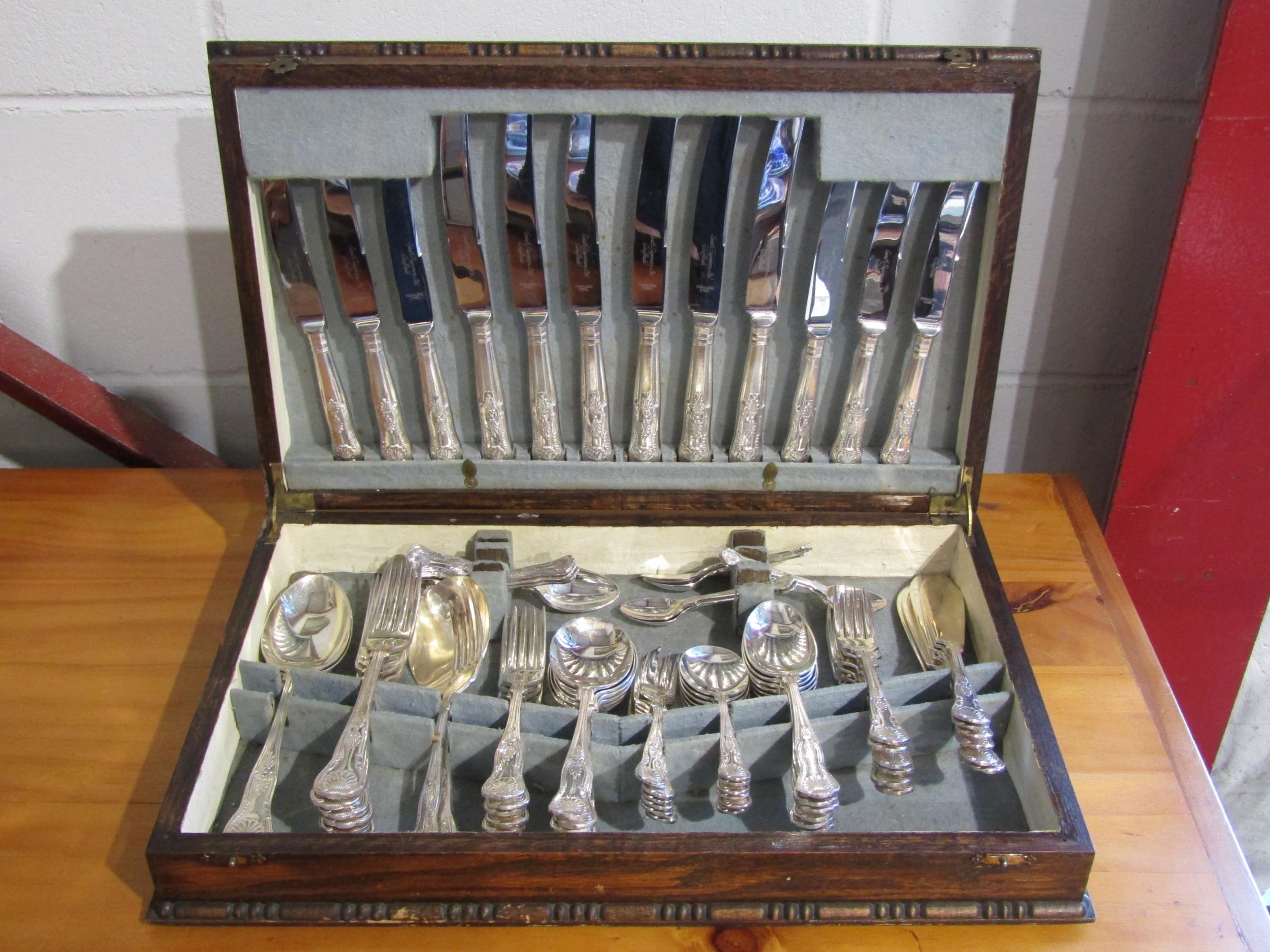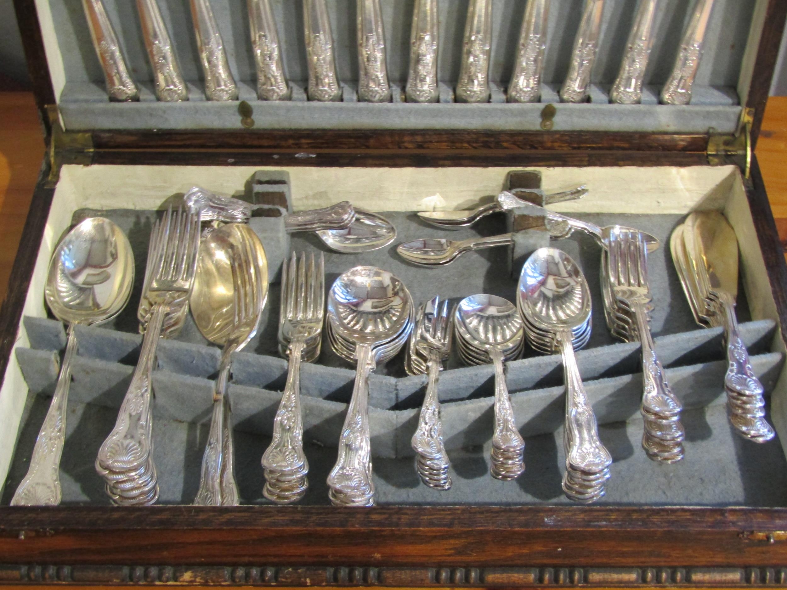 A canteen of Kings pattern silver plated cutlery with stainless steel blades, six place settings