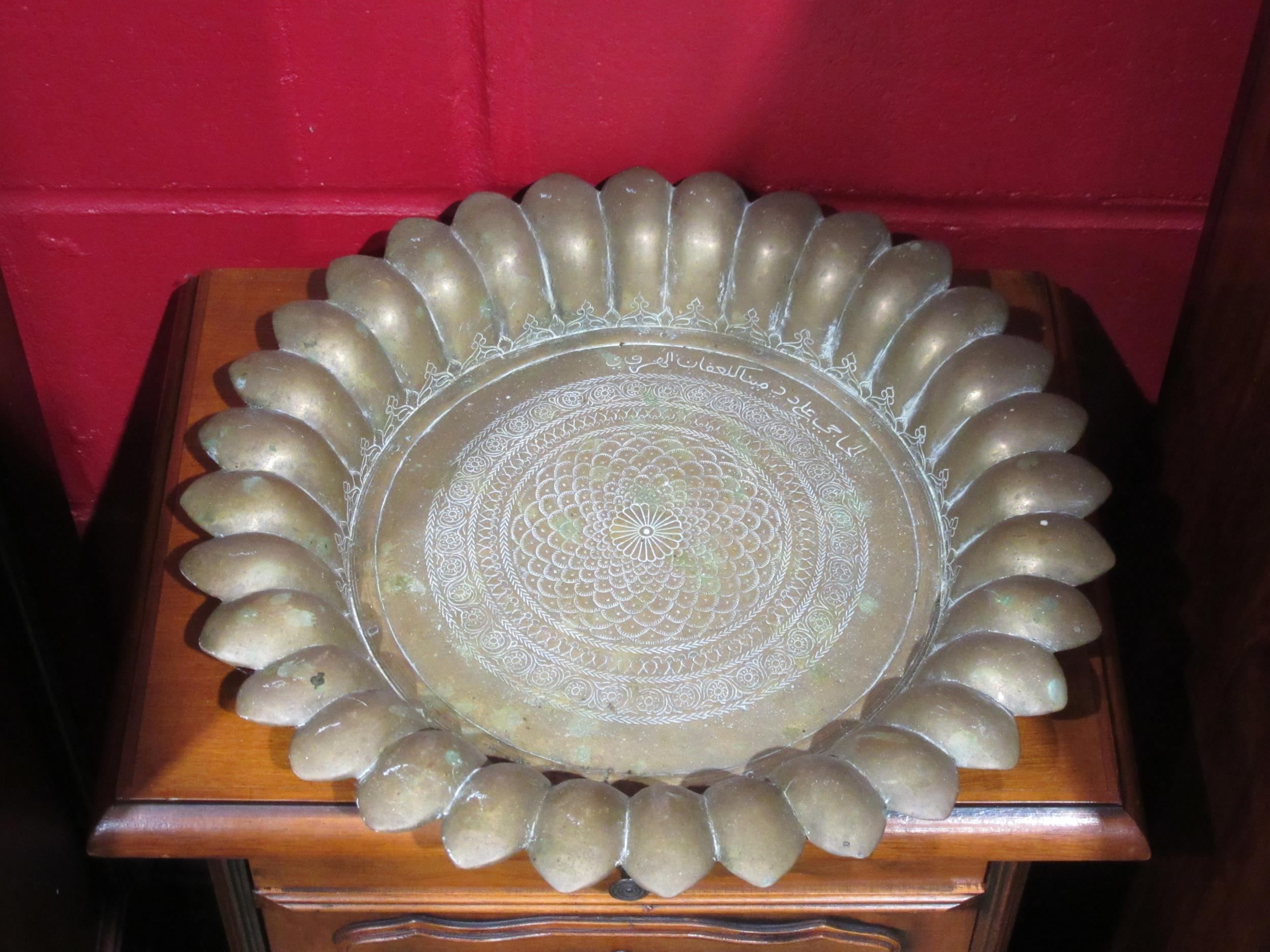 An Eastern brass bowl with fluted edge, 36cm diameter