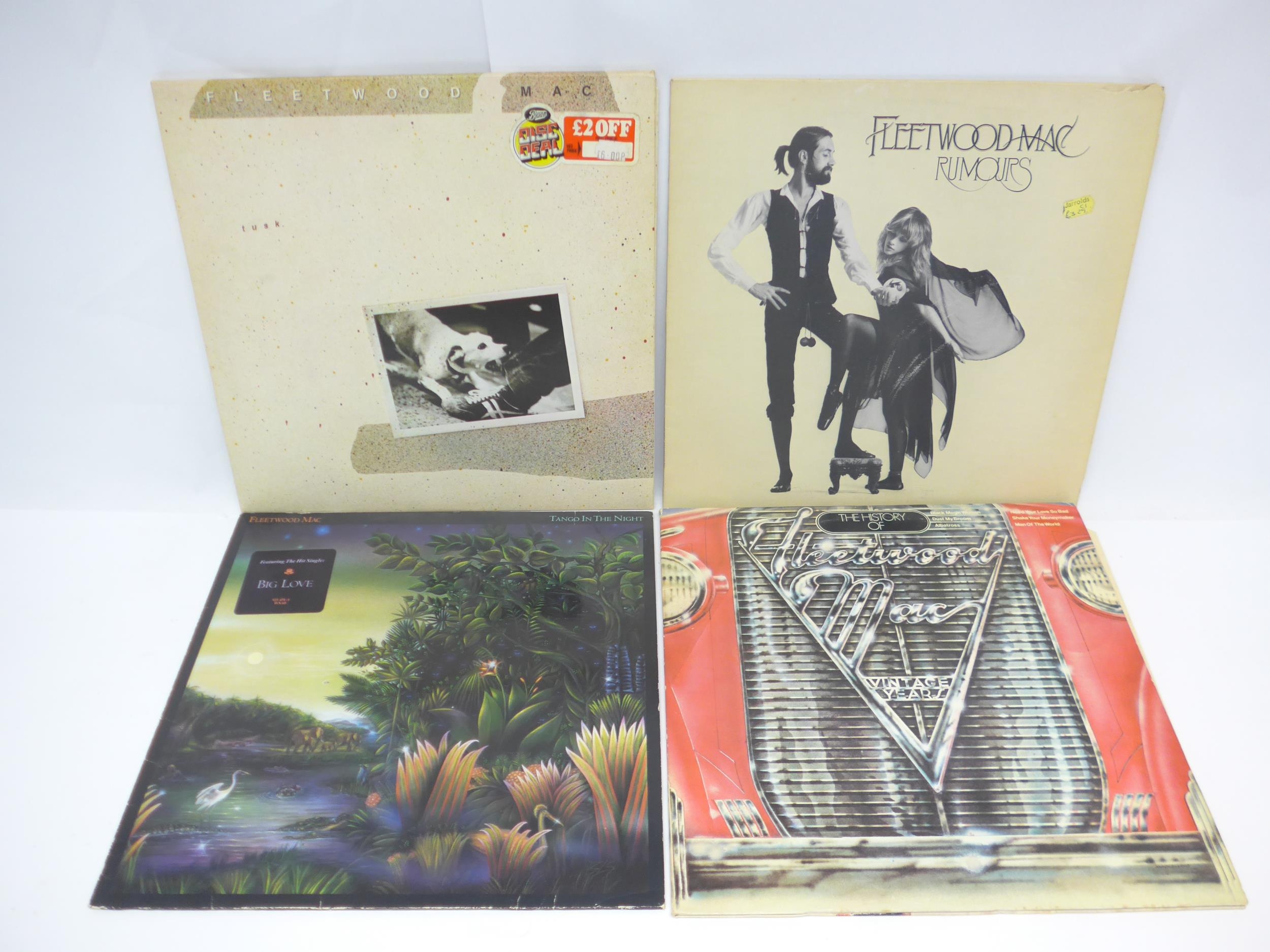 FLEETWOOD MAC: Four LPs to include 'Rumours' in textured gatefold sleeve with fold-out lyric insert (K56344, tear to top right cover), 'Tusk' with printed inners (K66088), 'Tango In The Night' (WX 65) and 'The History Of Fleetwood Mac - Vintage Years' (CBS 88227) (4, vinyl and sleeves VG-VG+)