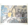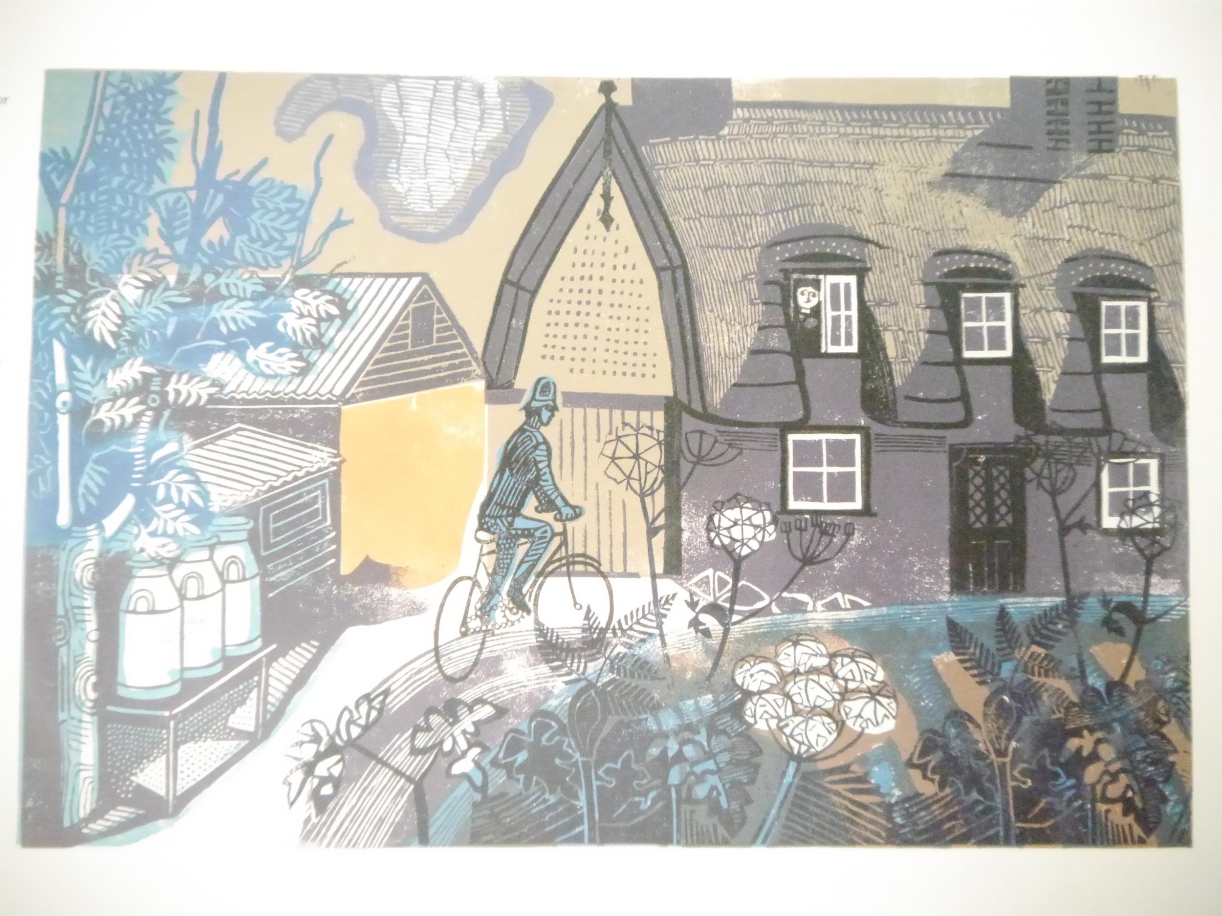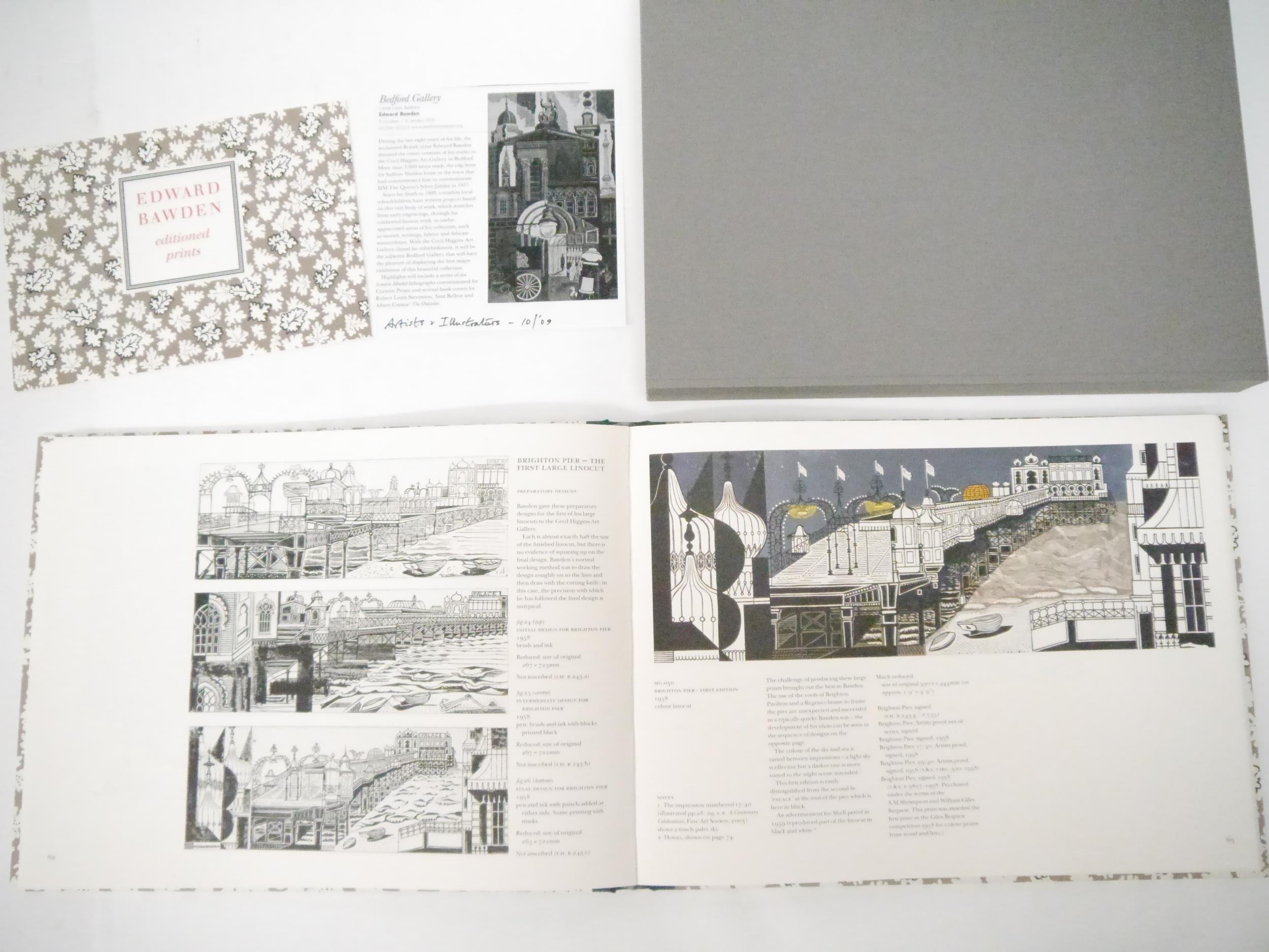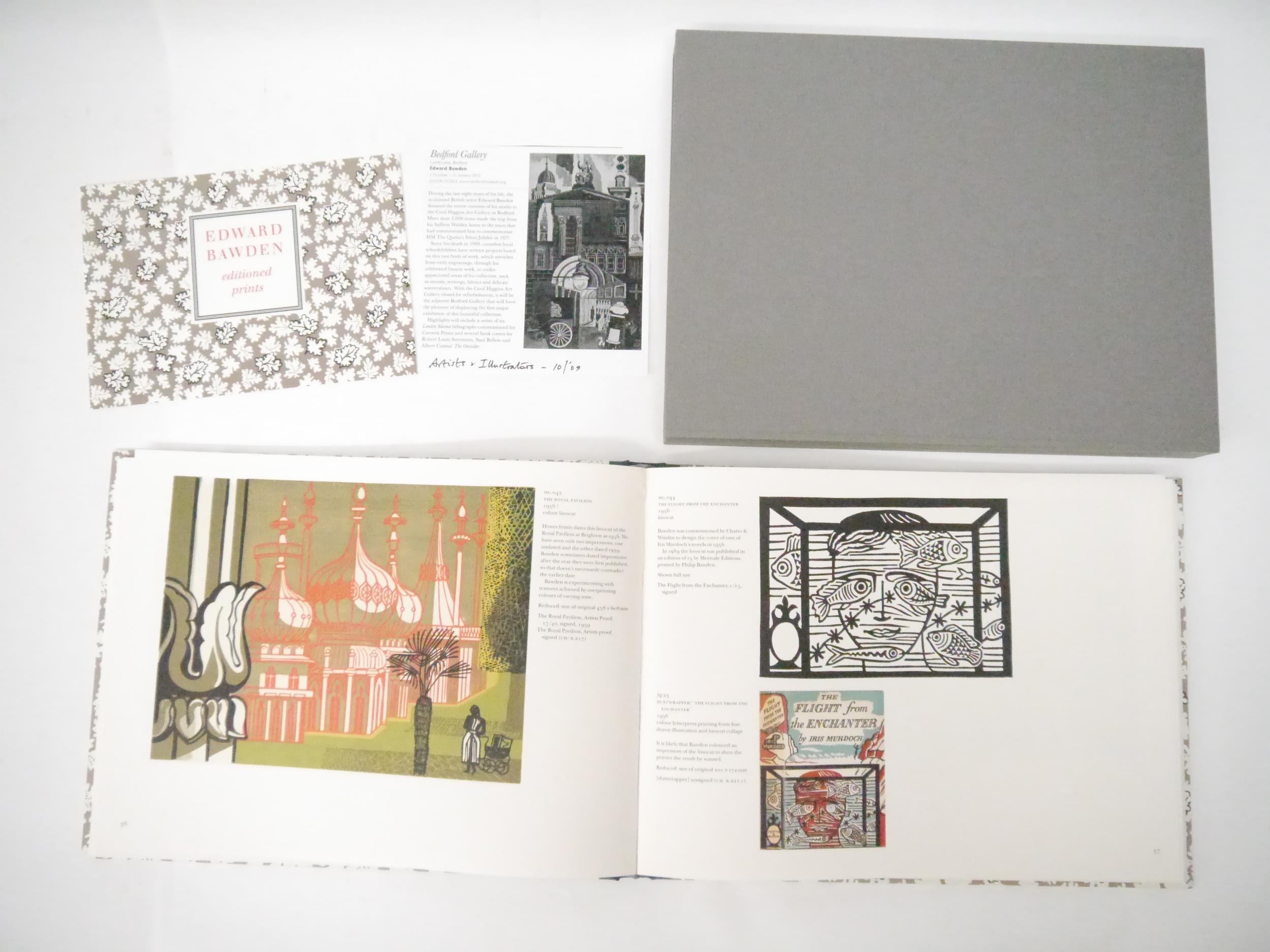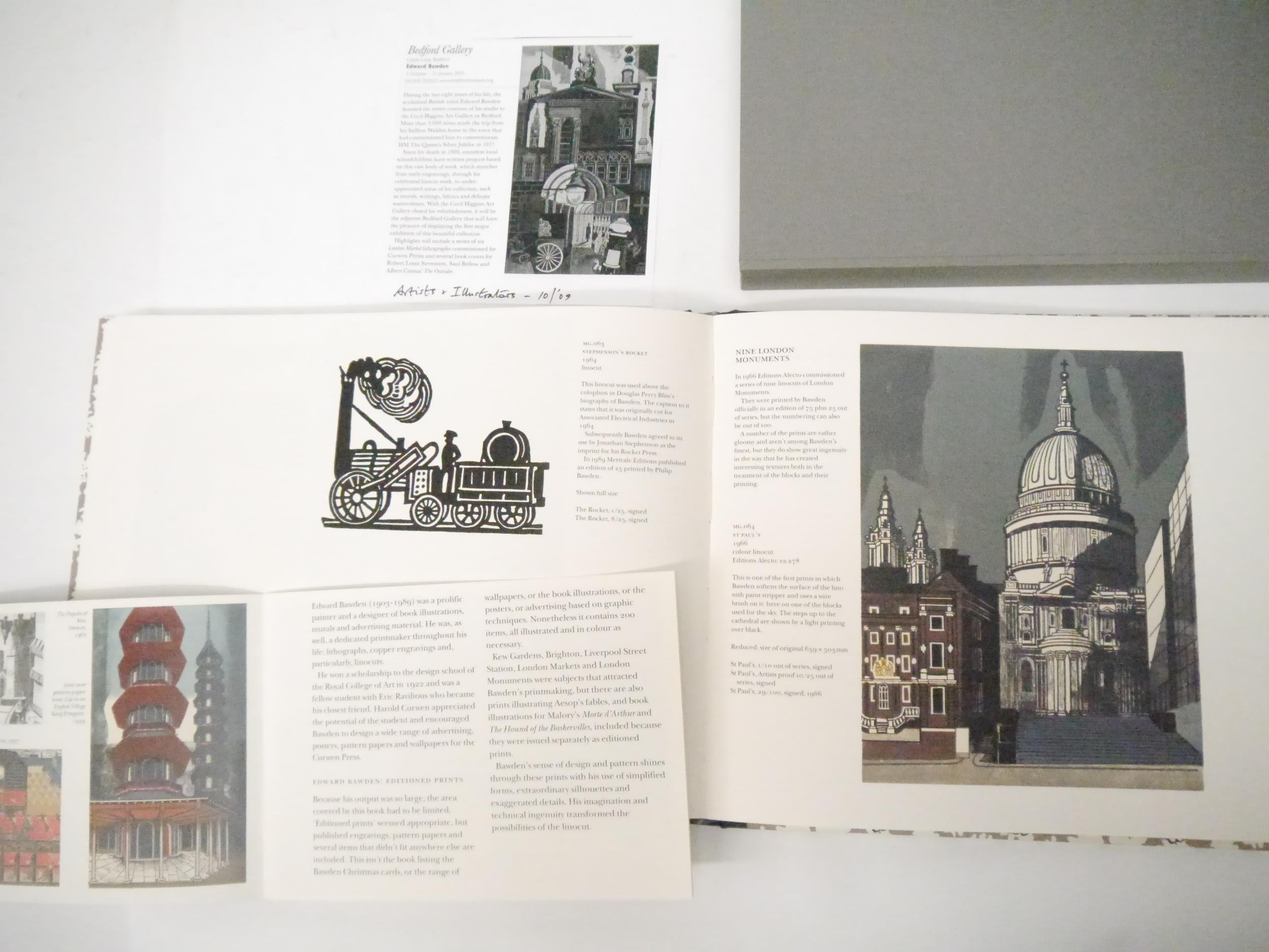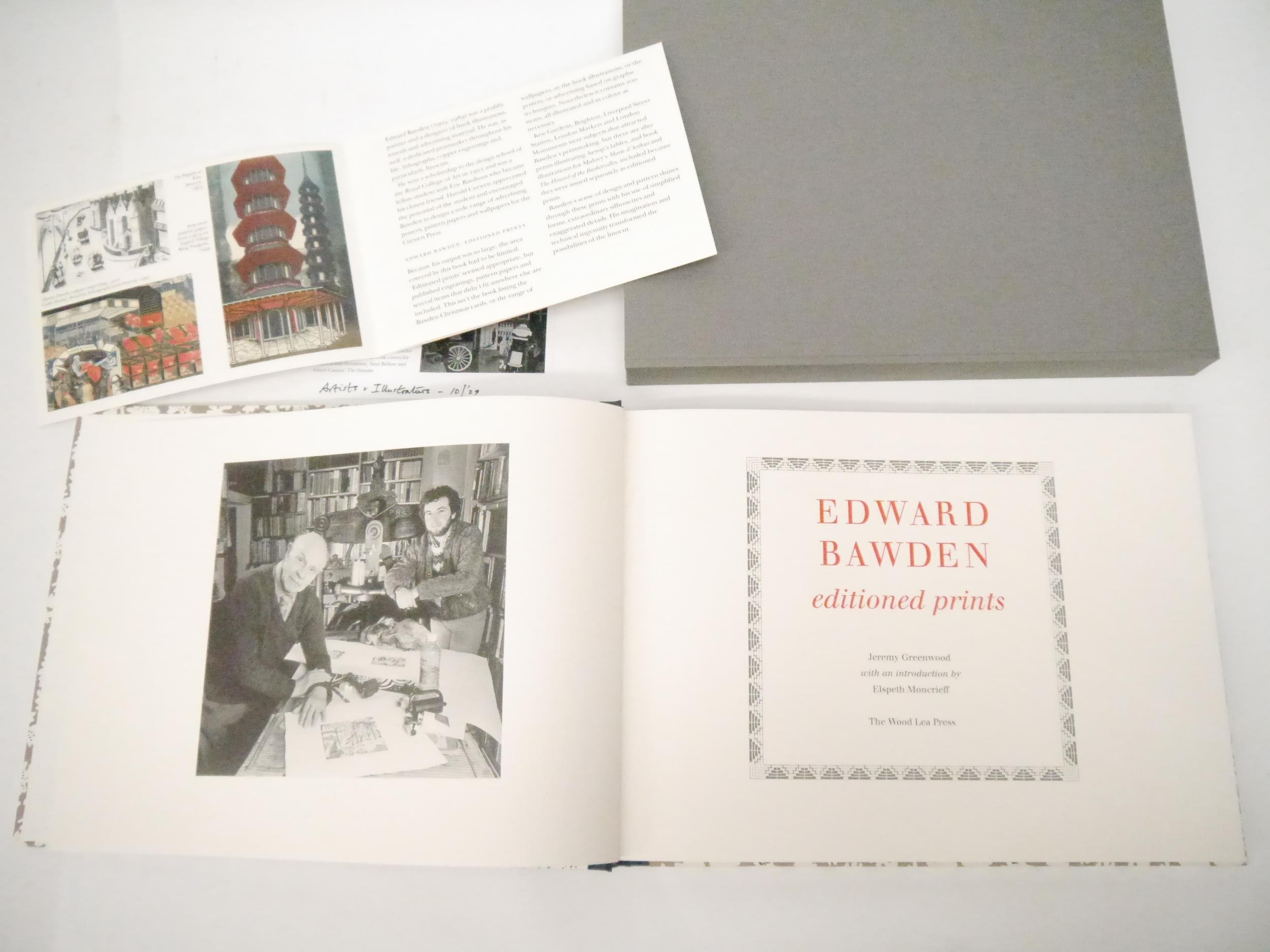 Edward Bawden. Jeremy Greenwood: 'Edward Bawden Editioned Prints’, Woodbridge, The Wood Lea Press, 2005, limited edition, one of 450 copies, profusely illustrated throughout in colour and black & white as called for, 134pp, landscape folio (24 x 33cm), original quarter cloth gilt over decorative paper covered, original slipcase, the cover paper based on a design by Bawden for the cover of 'Life in an English Village', 1949, King Penguin No.57, illustrated by Bawden. A fine copy in slipcase, with the original prospectus loosely inserted