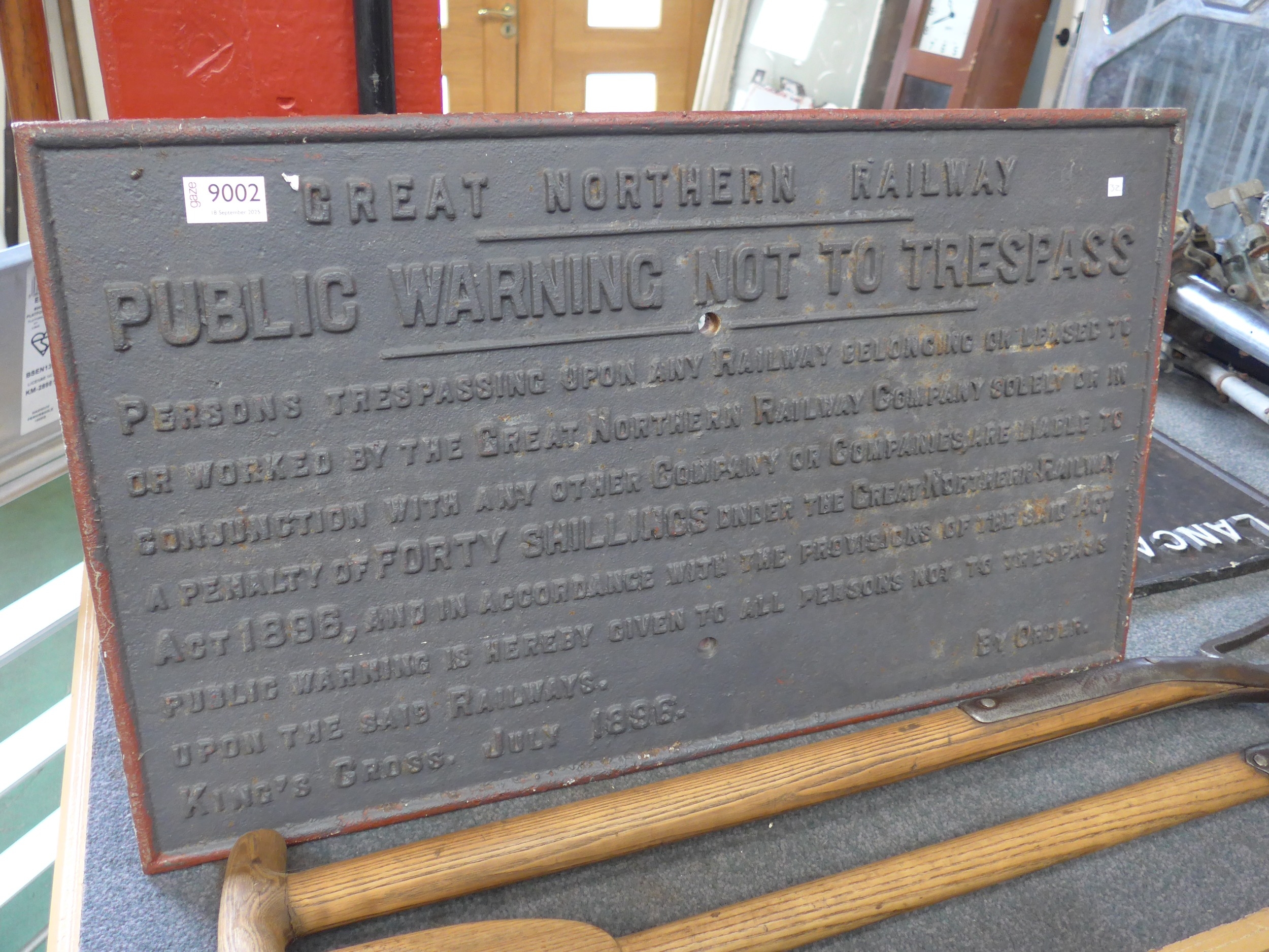 A cast iron Great Northern Railway sign - Public Warning not...